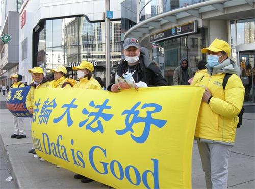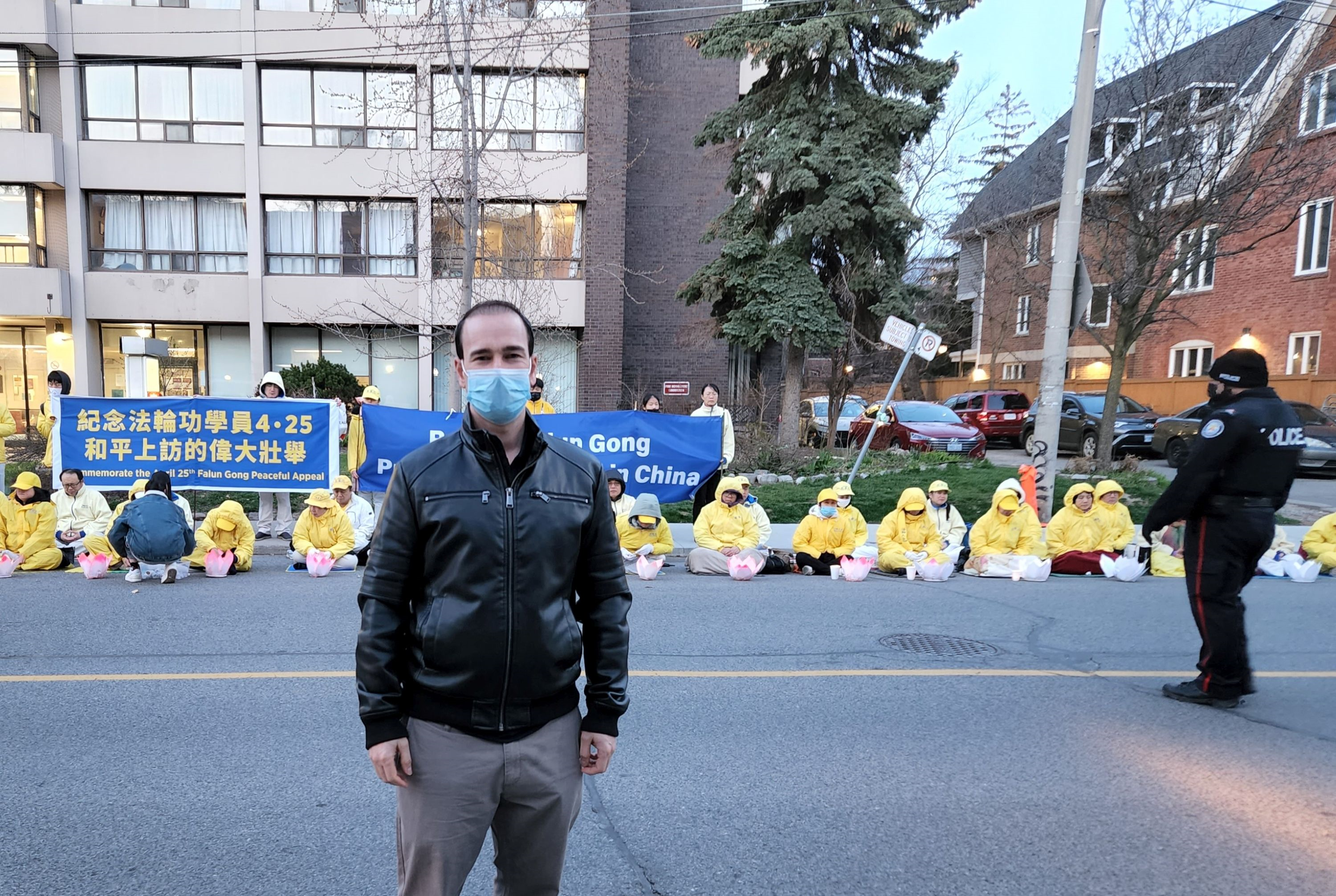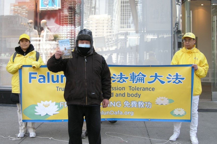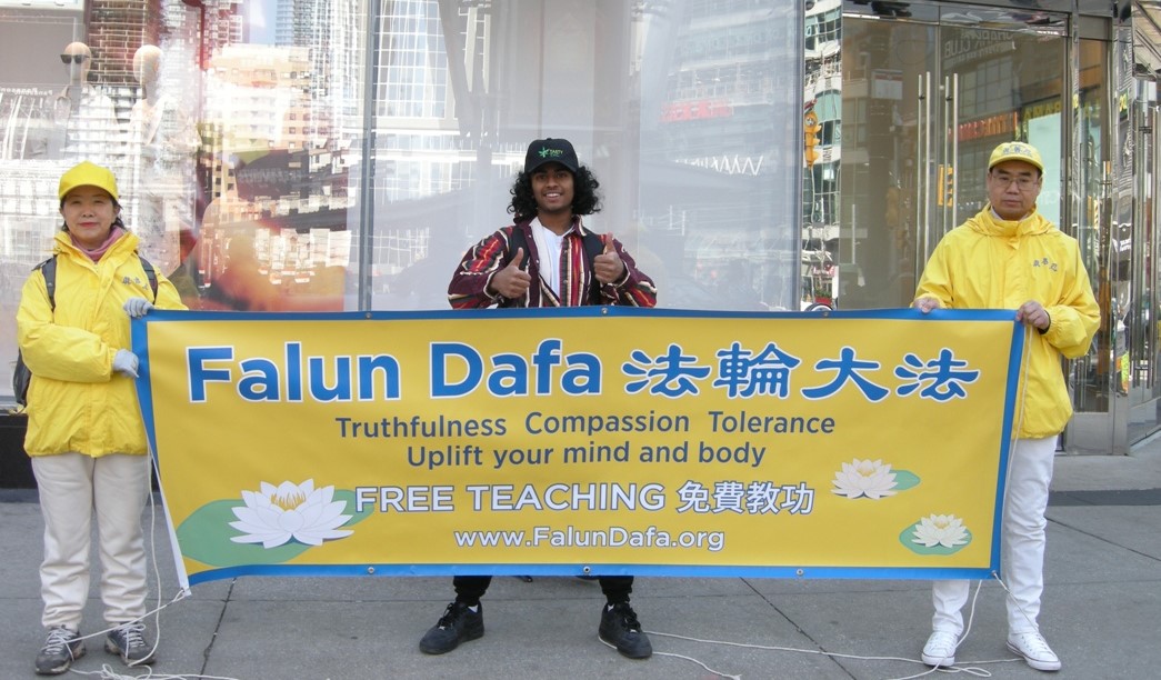 他还鼓励多伦多的法轮功学员能够持续地这样做下去,他说:“我希望你们能坚持下去,因为当我看到被中共迫害致死的学员的照片后,我感受到了巨大的能量。我希望这份能量能带给更多的人。”