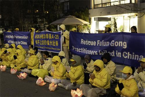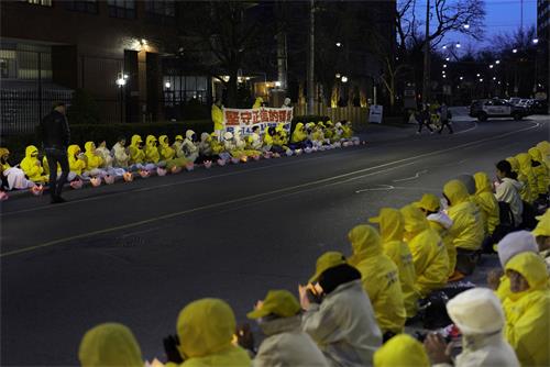 当晚的执勤警察了解到本次活动的意义后,把一半的马路进行了封锁,让静坐的学员直接坐在了马路上。