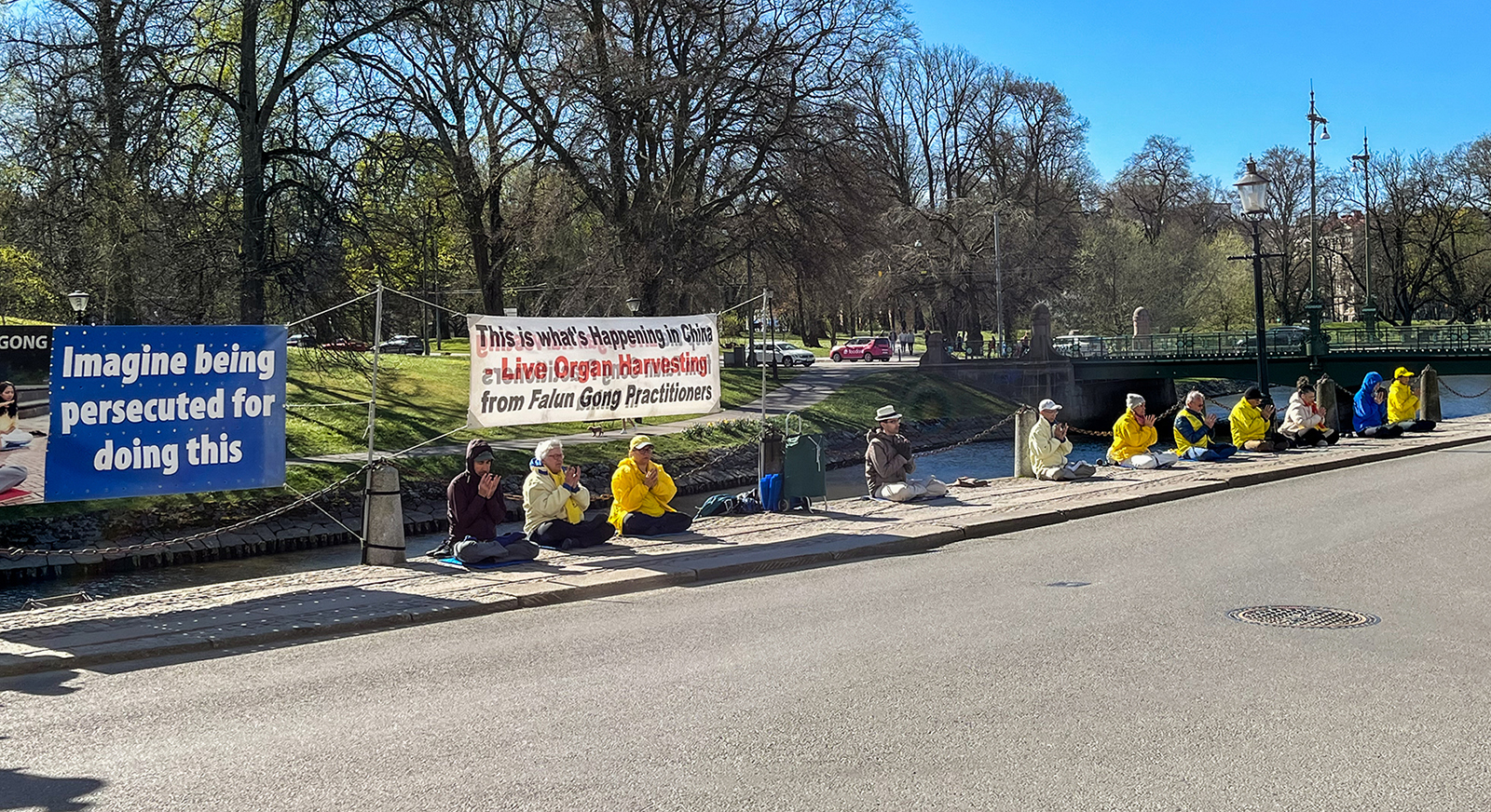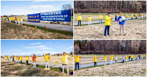 ![]() 图1:二零二二年四月二十三日上午九点,瑞典部分法轮功学员在斯德哥尔摩中使馆对面,举办“四·二五”和平上访二十三周年纪念活动,抗议中共迫害法轮功。 |