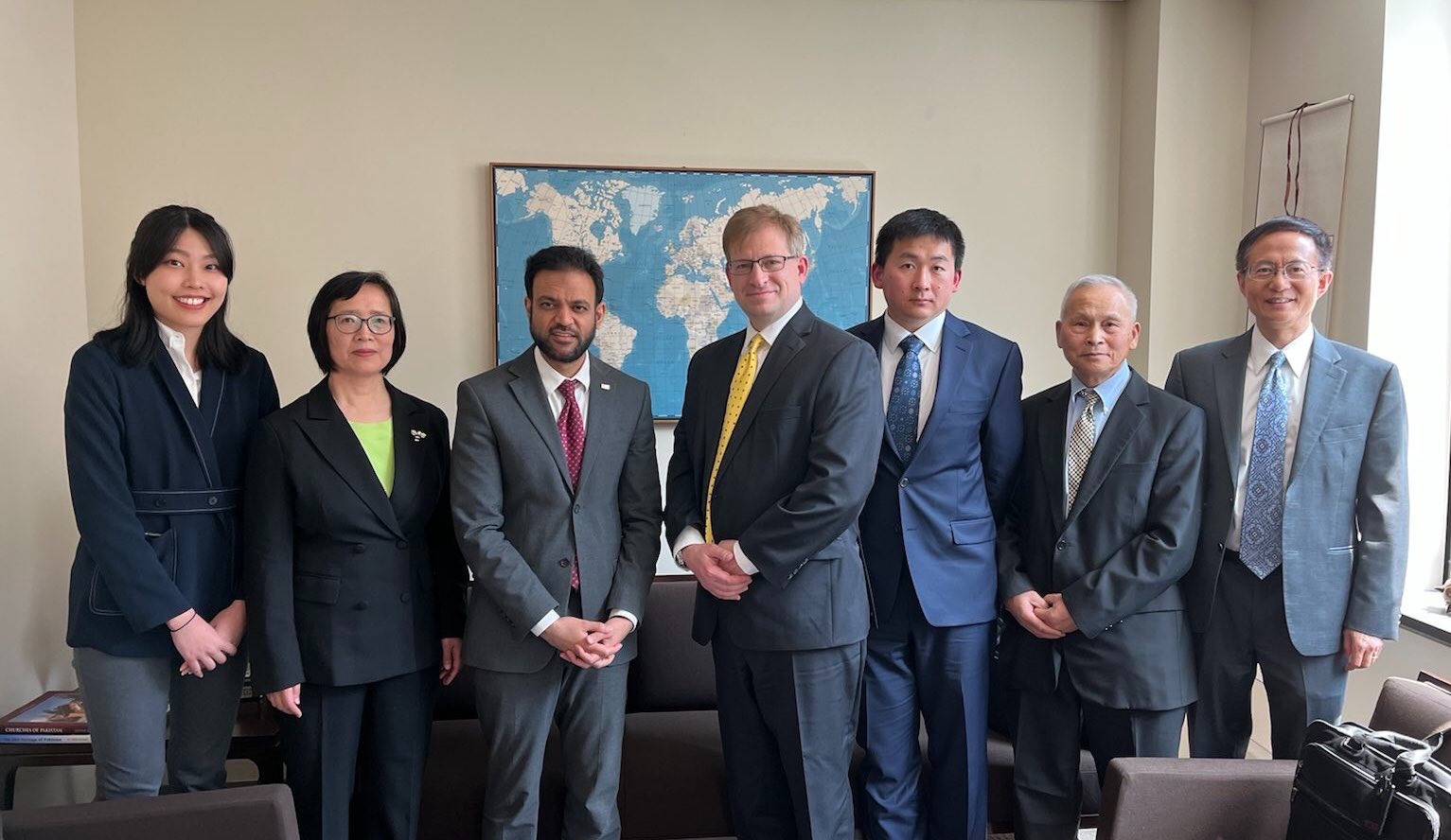 ![]() 图1:美国新任国际宗教自由大使拉沙德·侯赛因(Rashad Hussain,左三)与法轮功学员合影 |