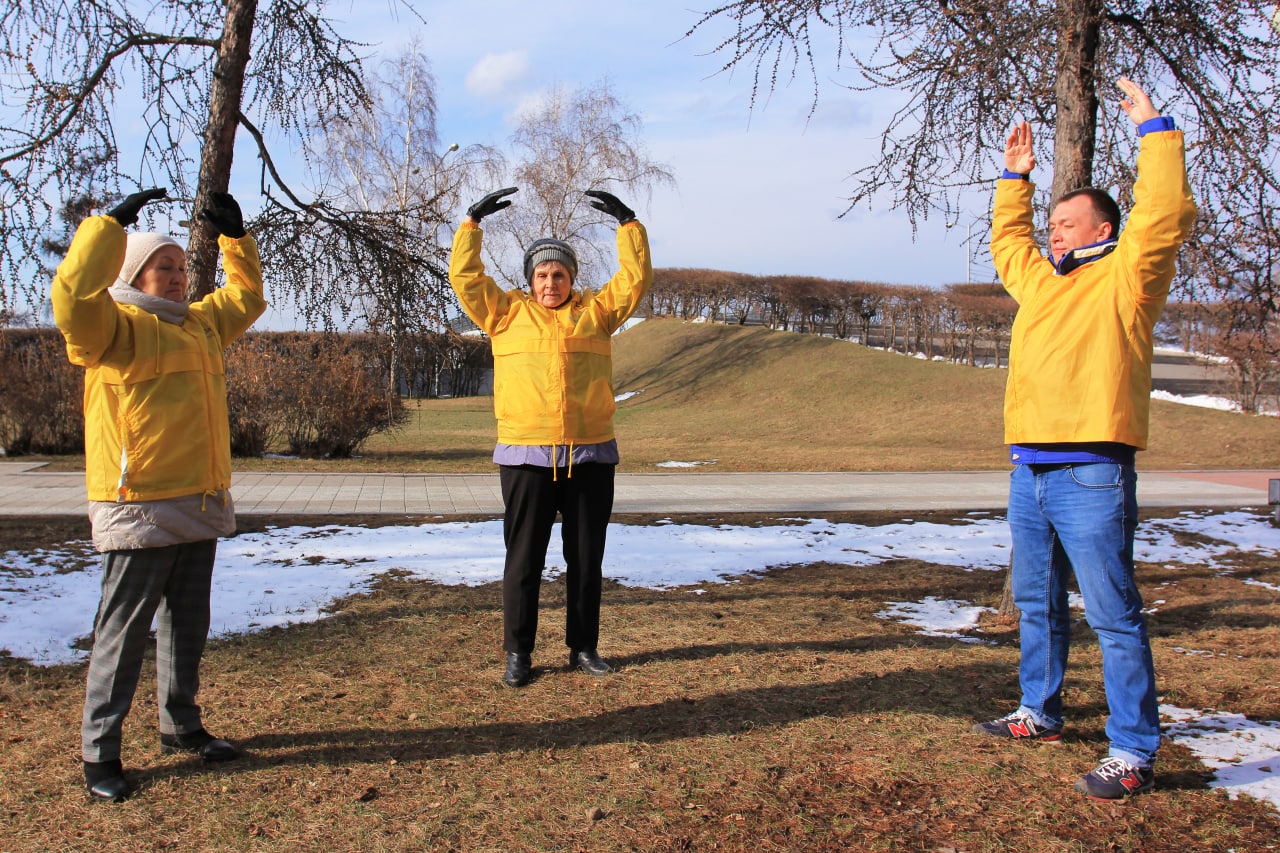 ![]() 图2:法轮功学员在伊尔库茨克沿岸街附近炼功,希望让更多人了解法轮功。 |