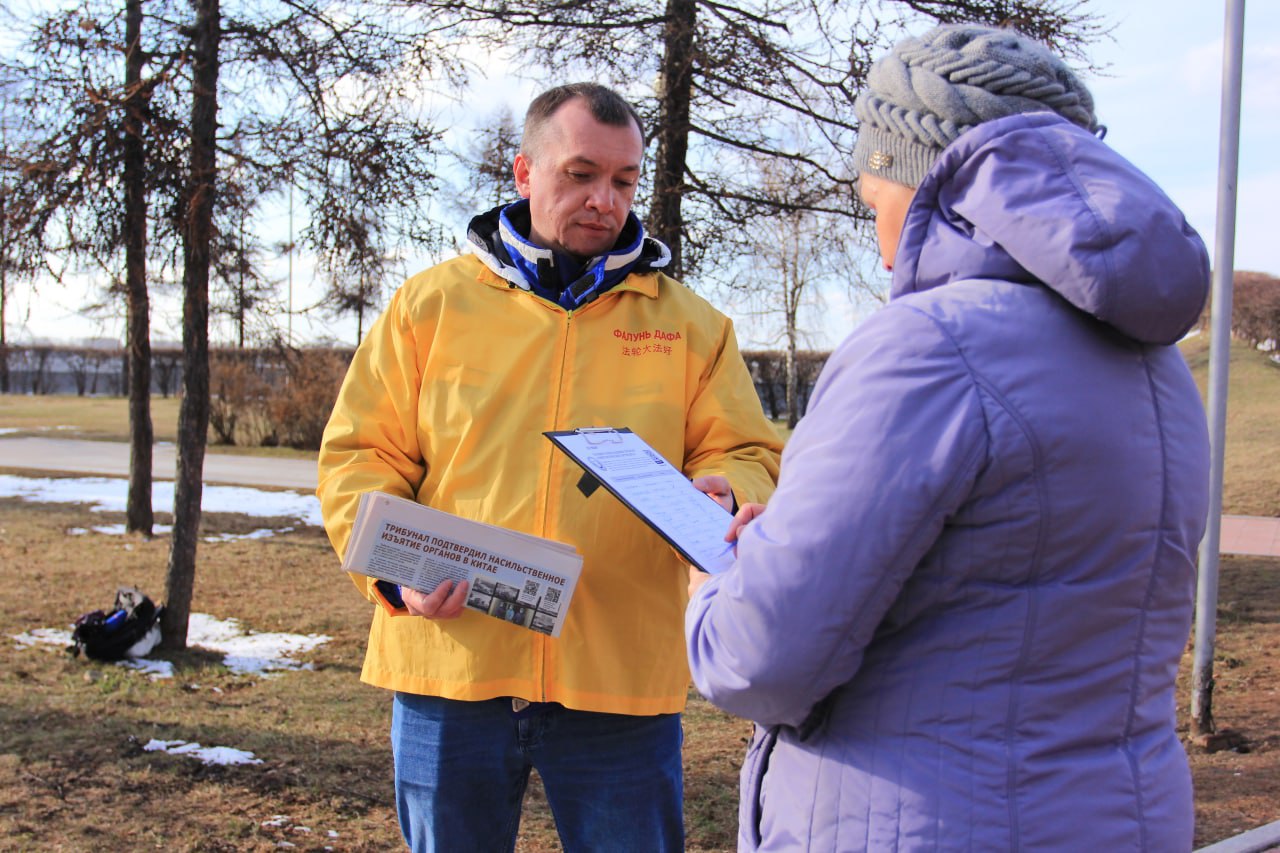 自迫害开始至今,海内外的法轮功学员一直坚持讲真相,呼吁停止迫害。其中也包括伊尔库茨克、安加尔斯克、布里亚特、克拉斯诺亚尔斯克以及莫斯科和圣彼得堡的法轮功学员。他们经常走上城市街头传播真相。很多人了解真相后,对学员表示感激。
