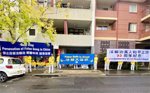 ![]() 图2:二零二二年四月二十五日,法轮功学员在悉尼中领馆对街和平抗议,呼吁澳洲各界关注和制止中共迫害法轮功。 |