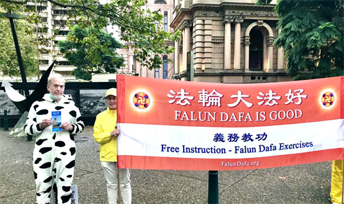 ![]() 图1:二零二二年四月二十二日,法轮功学员在悉尼市政厅(Town Hall)前集会,悉尼民众赞佩“四·二五”精神。 |