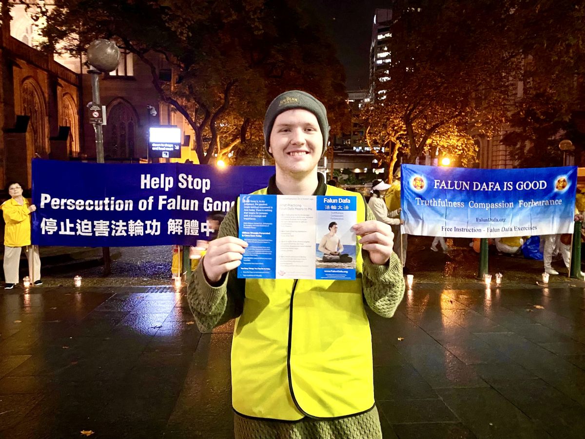 大学生瑞恩(Ryan)在看到大法弟子庄严而祥和的烛光纪念后表示:“我非常愿意多多了解法轮功。我认为真、善、忍是人类的普世价值,中共反对真、善、忍,用自私和强制的手段来奴役民众,实在是太邪恶了。我觉得有必要告诉更多的澳洲人,让更多的人来支持法轮功反迫害。”
