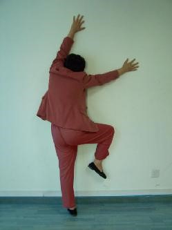 后来,我被送到了北京市新安劳教所迫害。一到劳教所就逼迫我写保证不炼功、检举别人等东西。因为我不写就强迫我白天黑夜都站着,我还是不写,就强迫我蹲着,蹲几天之后又强迫我白天黑夜做“壁虎爬墙”姿势(两臂上举,两手扶在墙上,右腿弯曲脚离地,膝盖顶在墙上),我不做那个姿势恶警李守芬就指使吸毒犯们对我拳打脚踢,接着又让我飞着(头朝向地面两臂上翻,手贴在墙上),我的手没贴着墙,就被恶警指使的吸毒犯们一群人用红塑料底鞋的鞋底狠命的抽打我的手、脸等处。