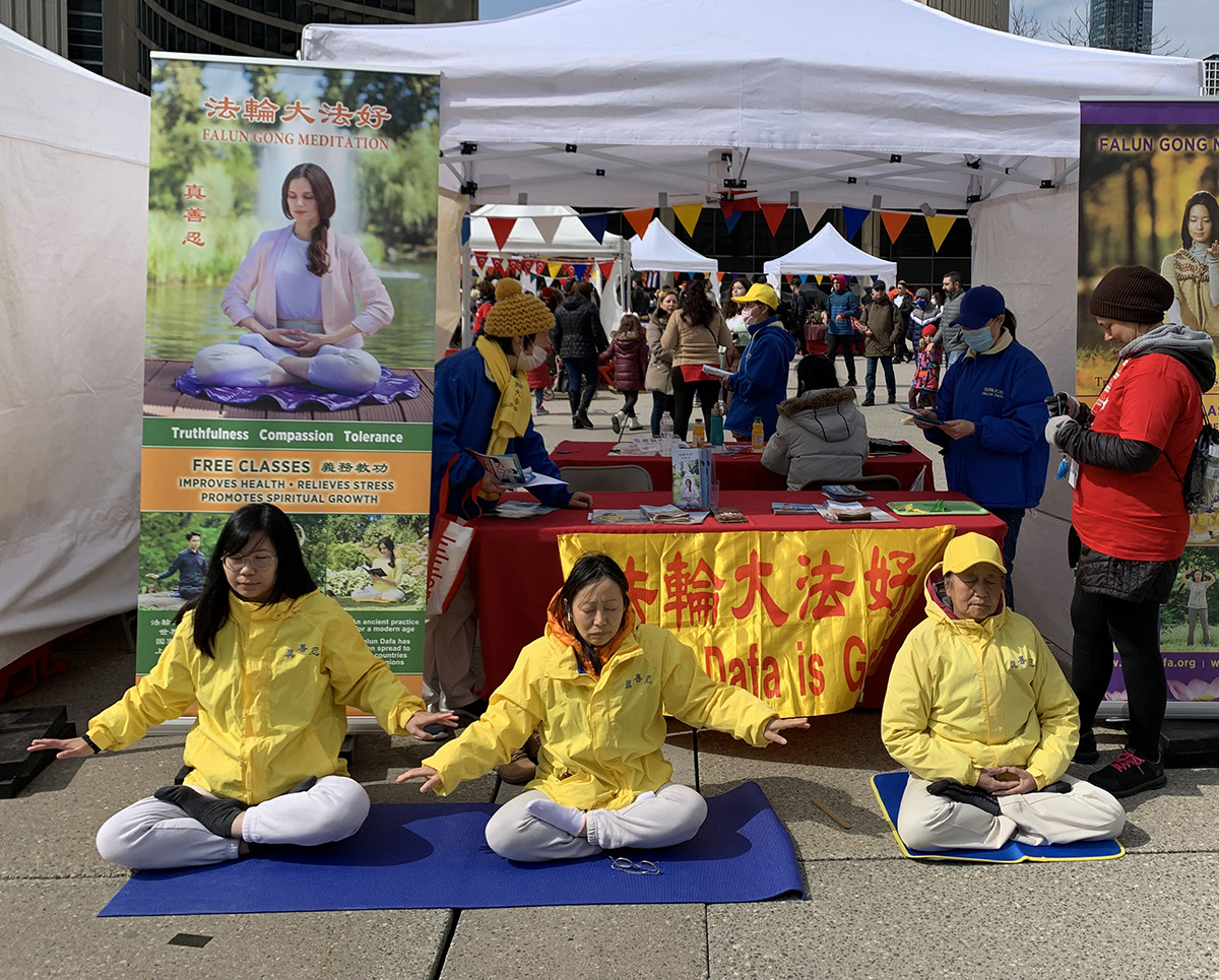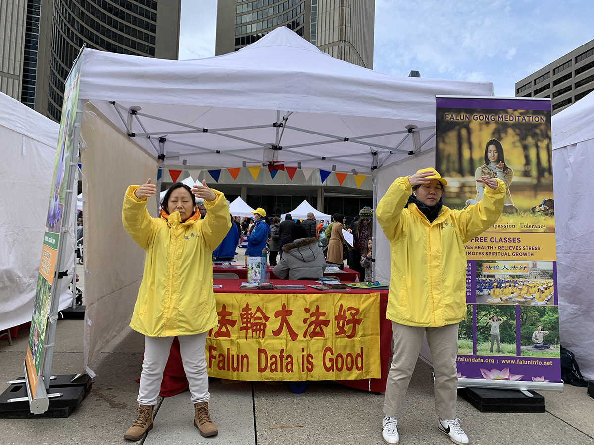法轮大法的展位也吸引了很多人前来咨询、学炼功法。有的表示回去后要进一步了解法轮功,并且会访问免费学功及大法网站,学炼法轮功。同时,人们在听到中共对法轮功学员的迫害后,表示难以置信会有这样的人间惨剧存在,一定会支持反迫害。