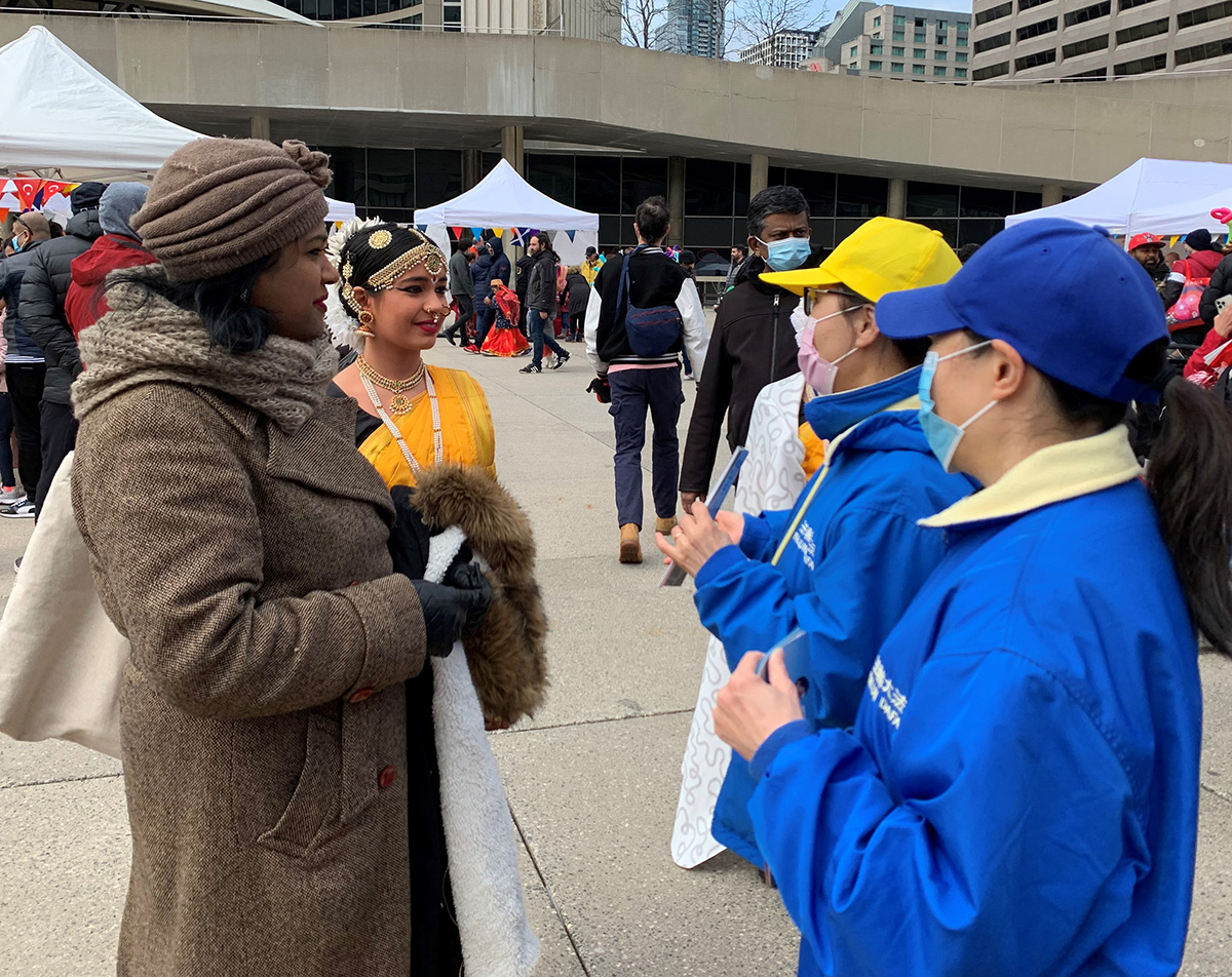来自印度的普里亚(Priya),现在多伦多社区中心工作,在听完法轮功学员对功法的介绍,以及看到学员们的功法演示后,她说:“因为我在社区中心工作,我会借助免费网上教功网站,把这个功法推荐给更多老年人。我认为修炼是非常重要的,因为现在社会上的人,每天都会有很多的压力,法轮功的五套功法非常安静、祥和,能够帮助人们舒缓身心,减轻压力。而且适合于各个年龄层的人去学炼。”