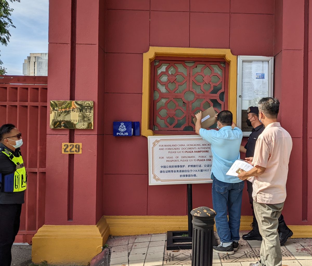 最后,法轮功学员代表到中共驻马大使馆递交了抗议信。