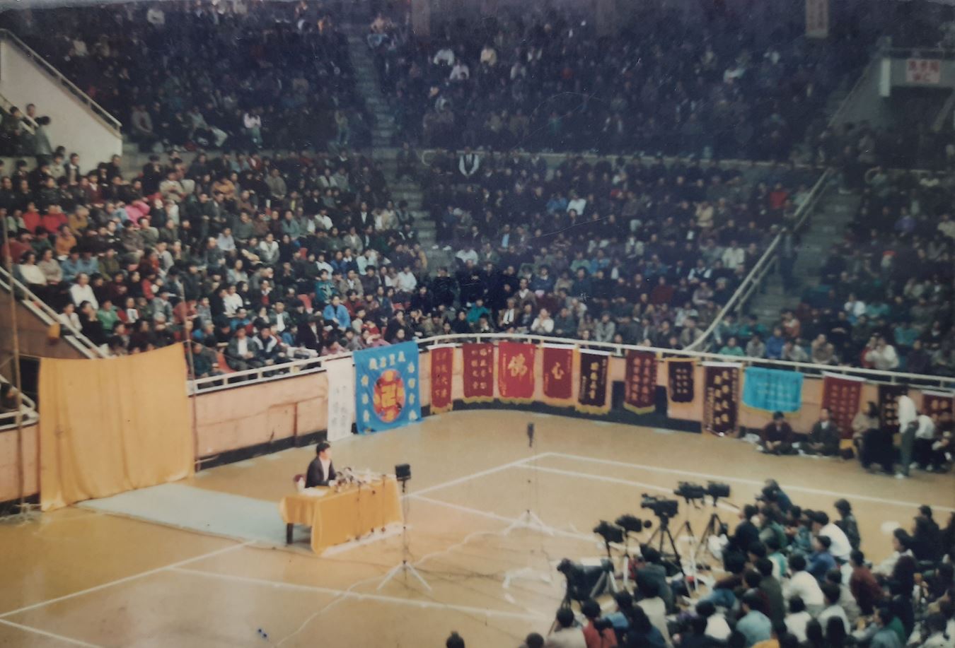 一九九四年暑假前,经朋友介绍,我和一位同学得知有一个功法叫法轮功,而且创始人将在暑假期间亲临广州讲法。暑假时,我们到了广州,在广东省气功科学研究会报了名,我记得当时七天班十堂课的学费只有四十元,远比其它功法低。由于报名人数不断增加,法轮功广州第四期学习班准备讲课的地址更改了三次,由原来能容纳一千左右人的礼堂提升到能容纳两千多人的大礼堂。