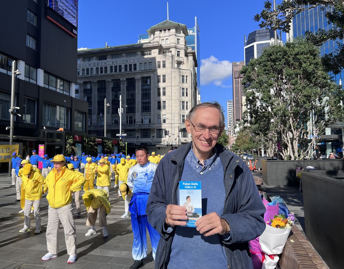 理查兹赞法轮功学员:“我们新西兰有像他们这样的人真是太好了,他们是一群修身养性的好人,他们就像金黄色的太阳花,永远面对阳光绽放。”