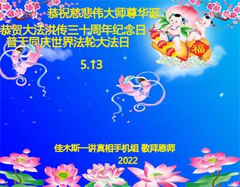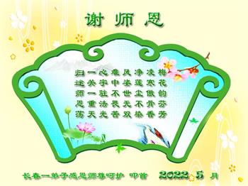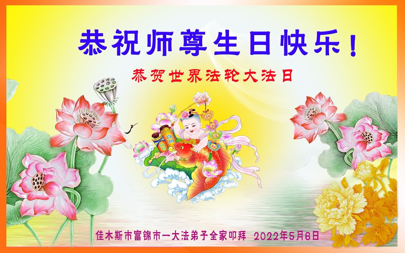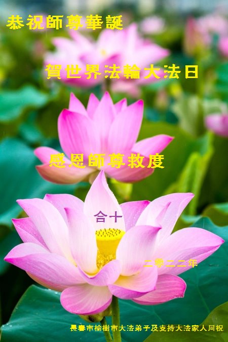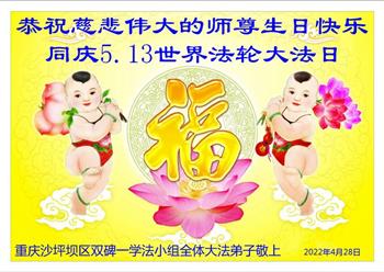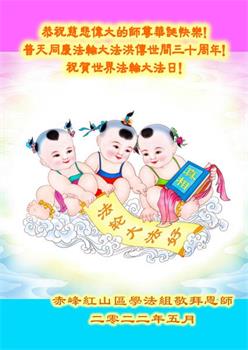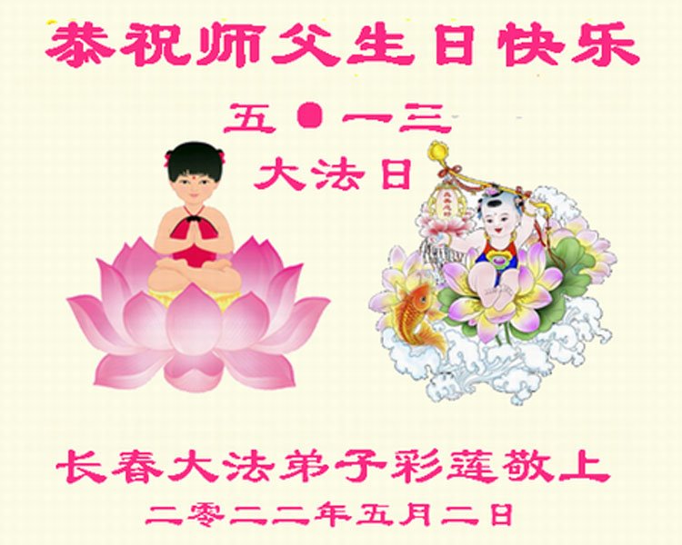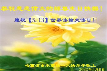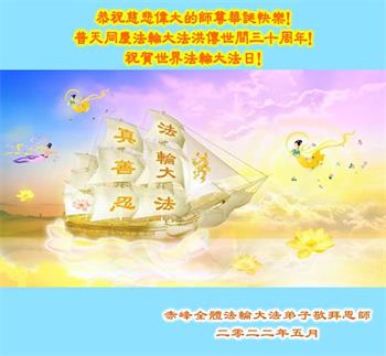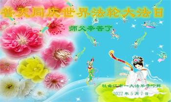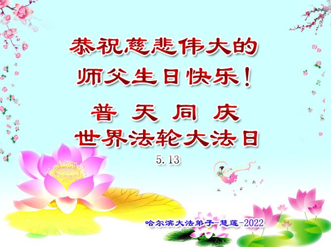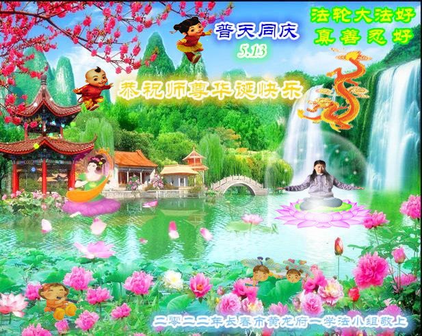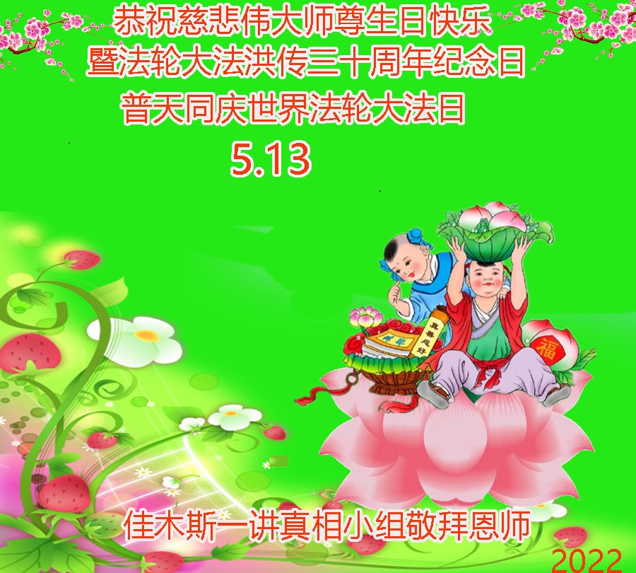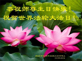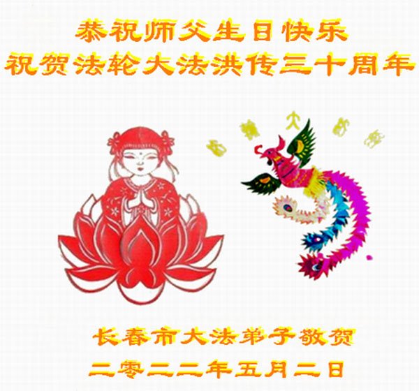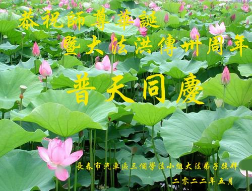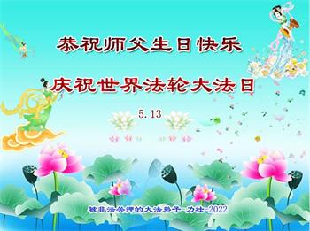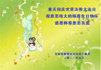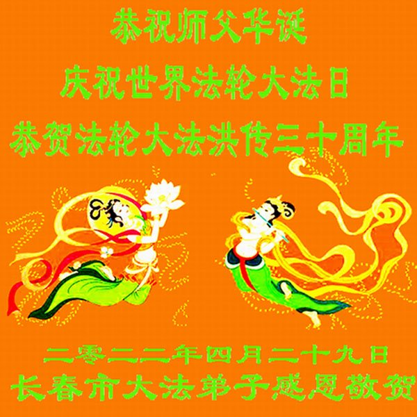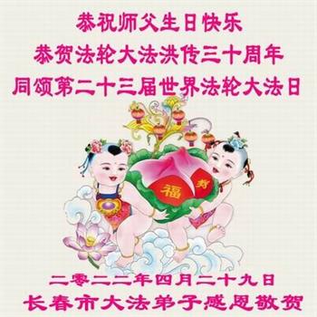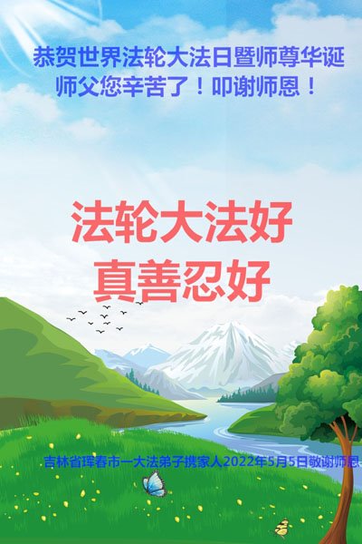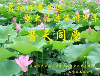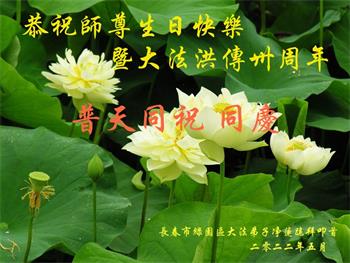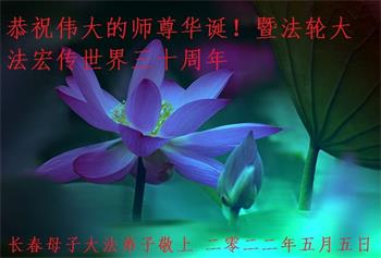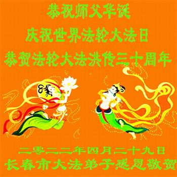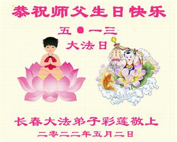 <英文版: http://en.d2s3ombhnov3zf.cloudfront.net/html/articles/2022/5/12/200518.html>长春大法弟子恭贺世界法轮大法日暨师尊华诞(22条)