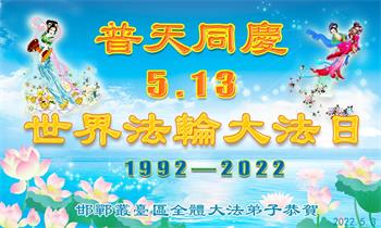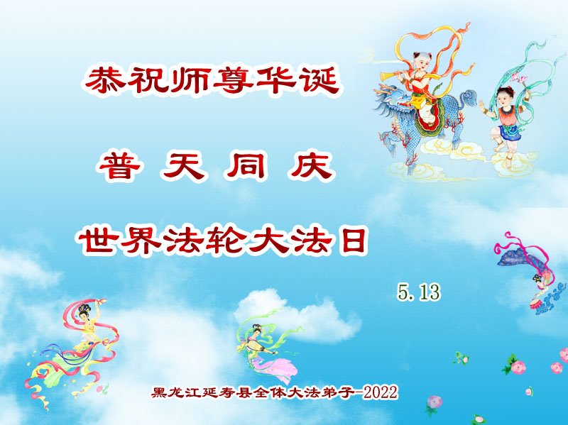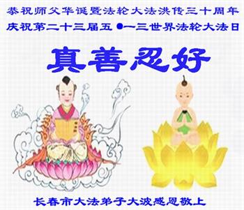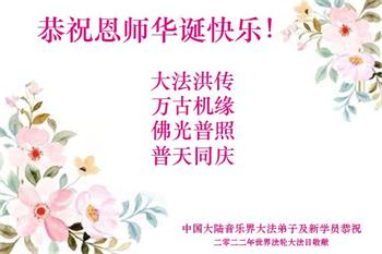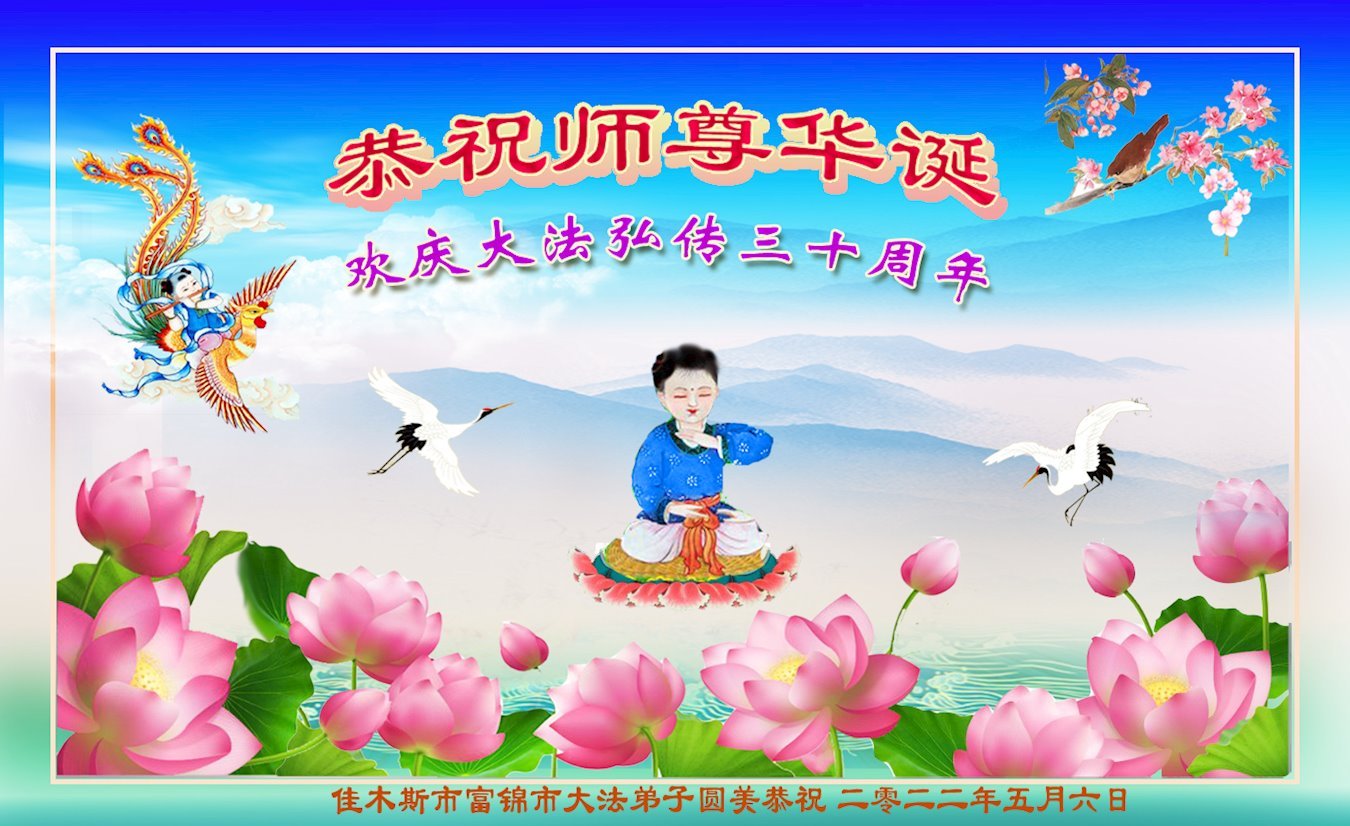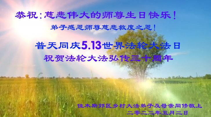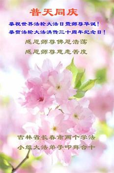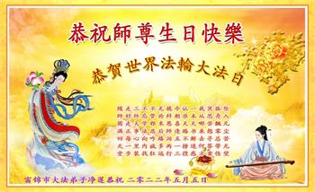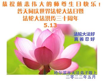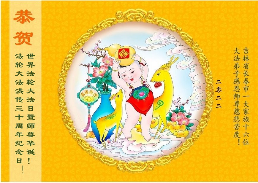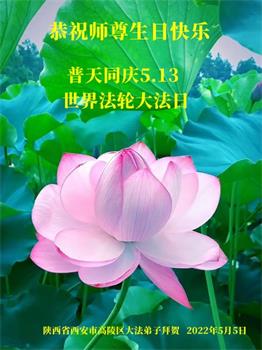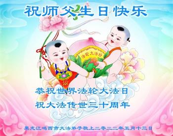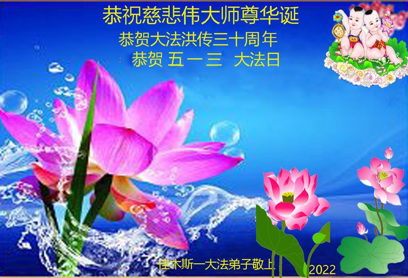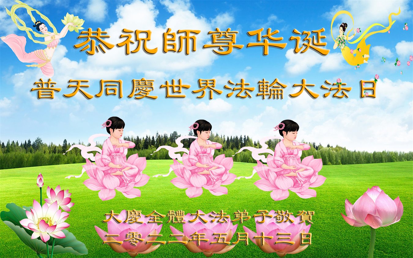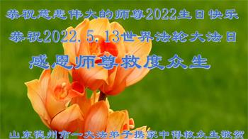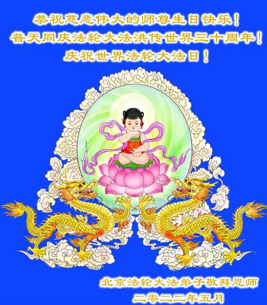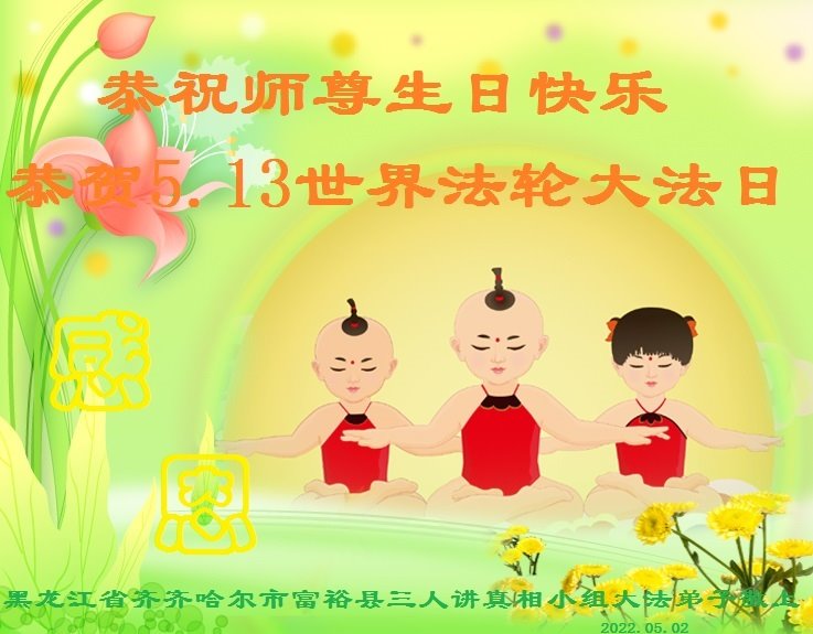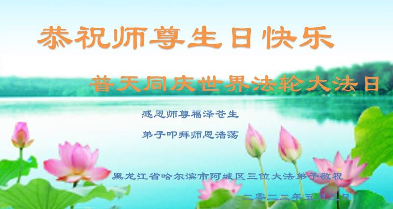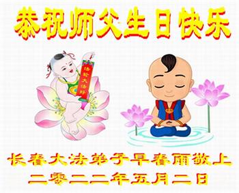 <英文版: http://en.d2s3ombhnov3zf.cloudfront.net/html/articles/2022/5/12/200518.html>长春大法弟子恭贺世界法轮大法日暨师尊华诞(22条)
