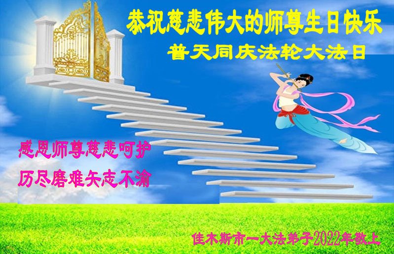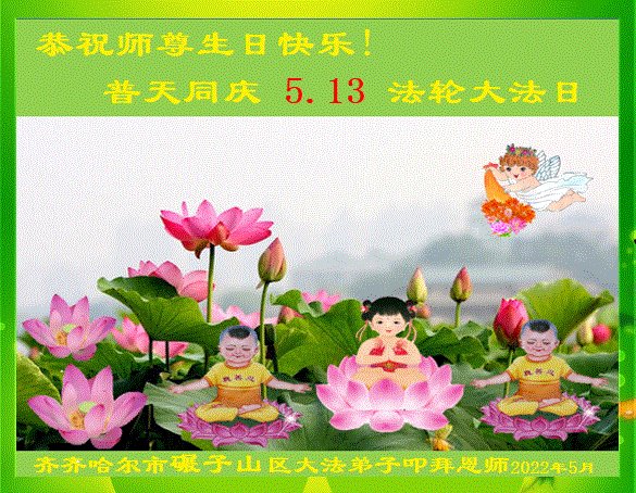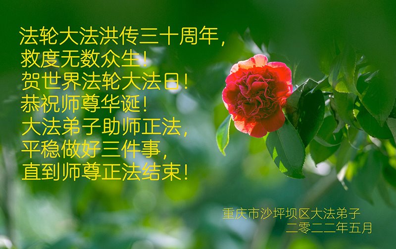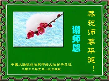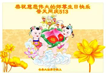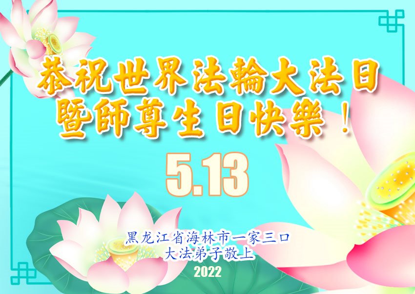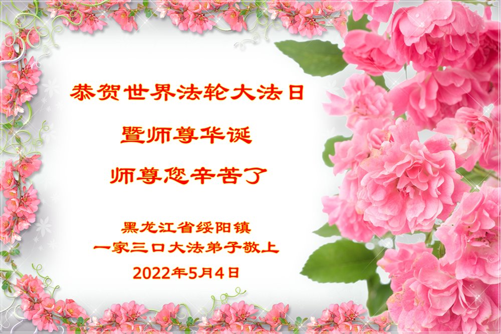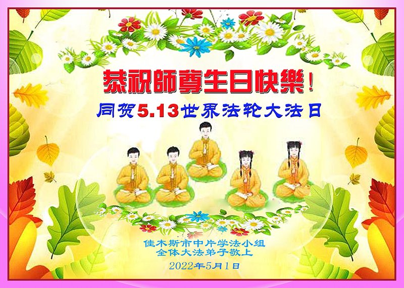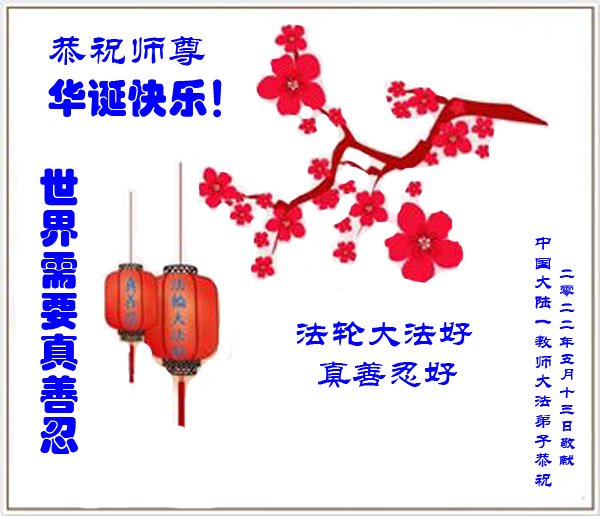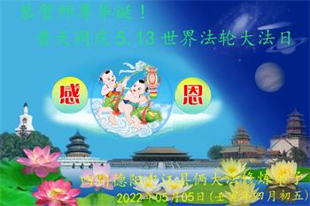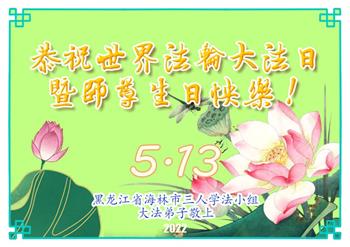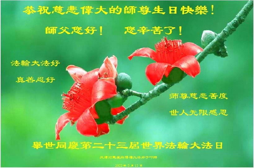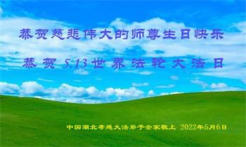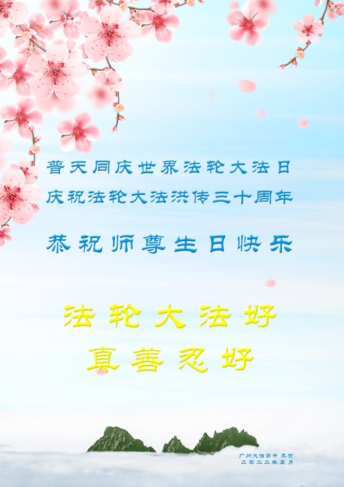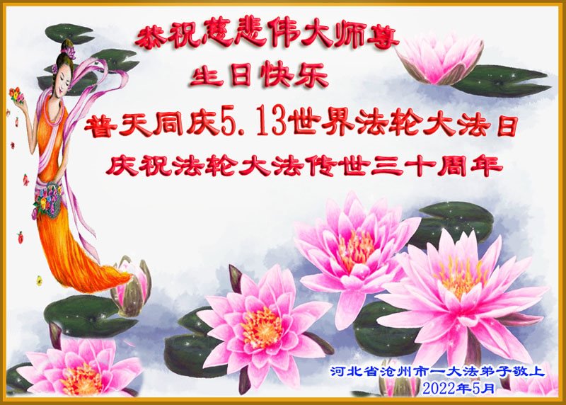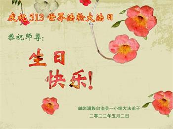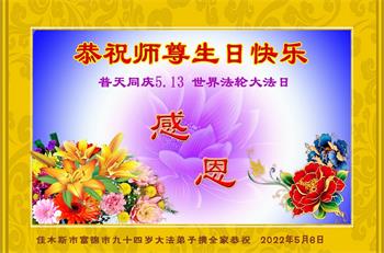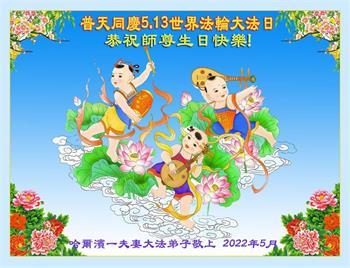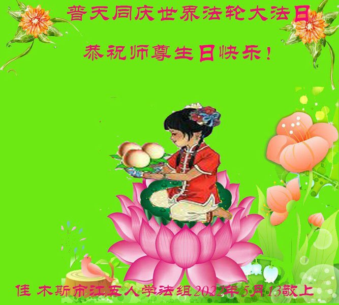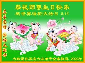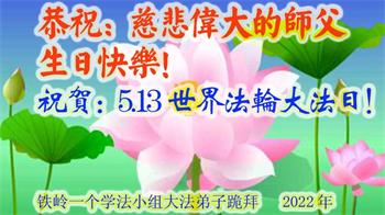 <英文版: http://en.d2s3ombhnov3zf.cloudfront.net/html/articles/2022/5/12/200518.html>长春大法弟子恭贺世界法轮大法日暨师尊华诞(22条)