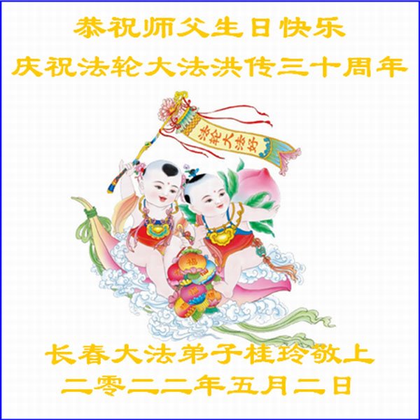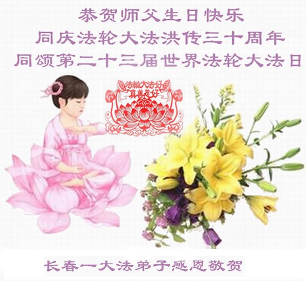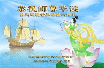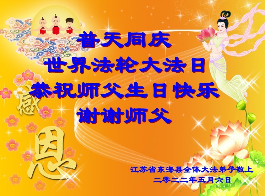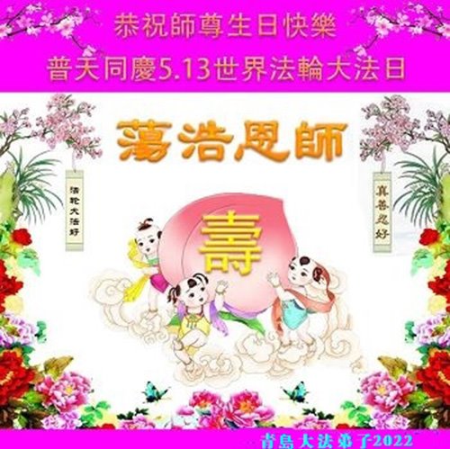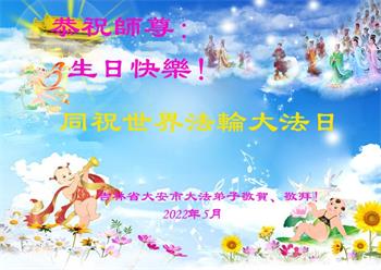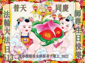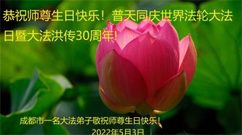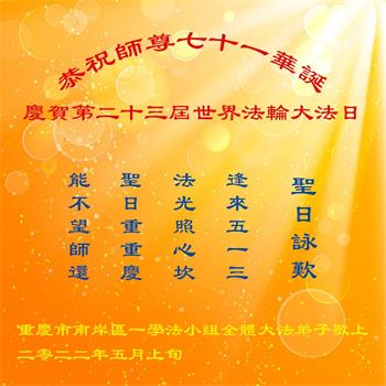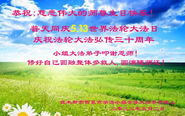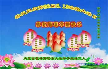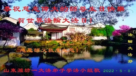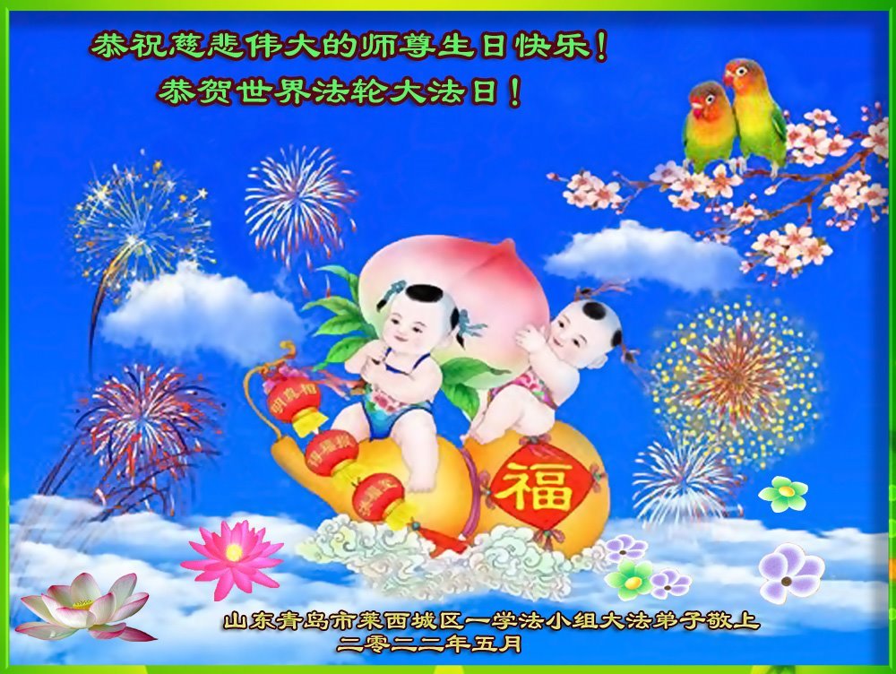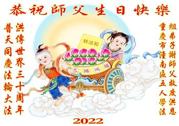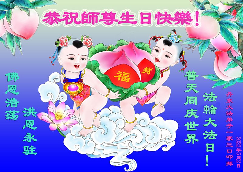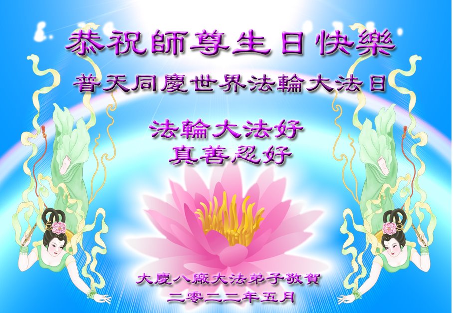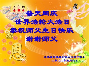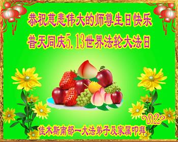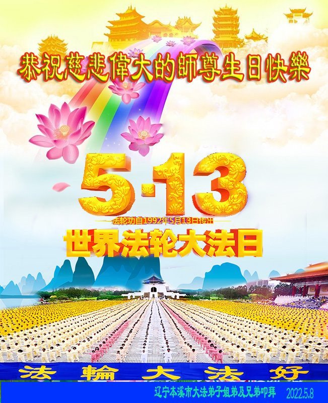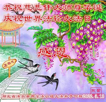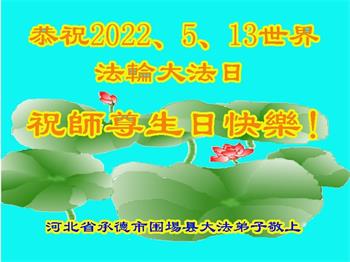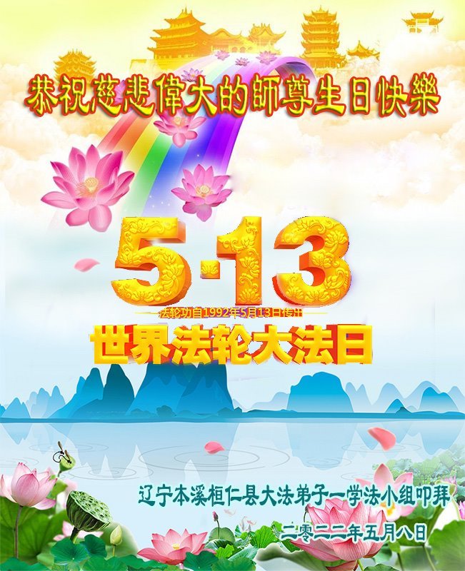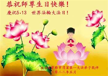 <英文版: http://en.d2s3ombhnov3zf.cloudfront.net/html/articles/2022/5/12/200518.html>长春大法弟子恭贺世界法轮大法日暨师尊华诞(22条)