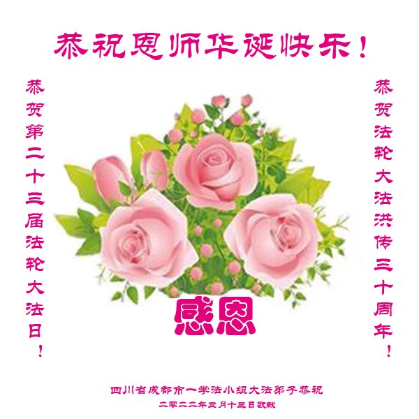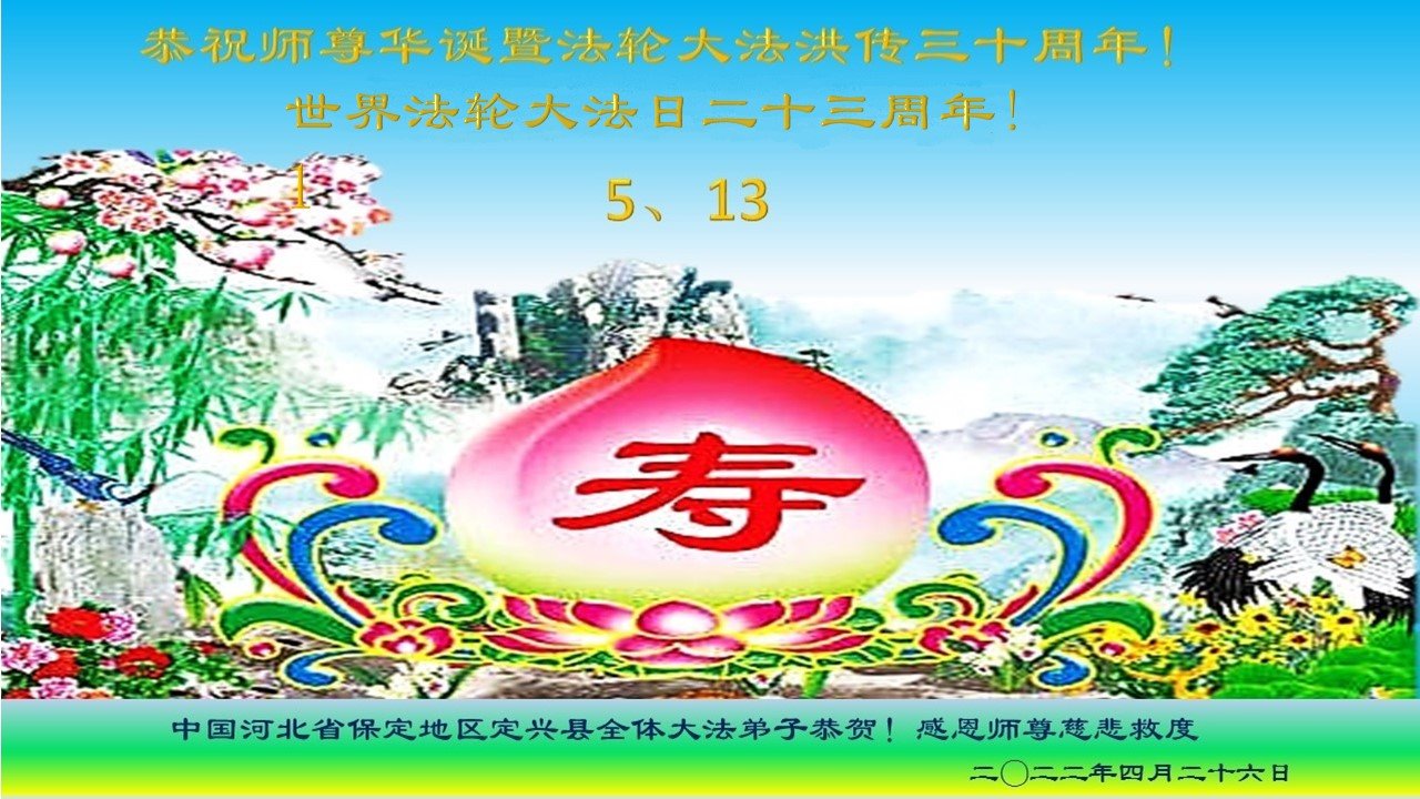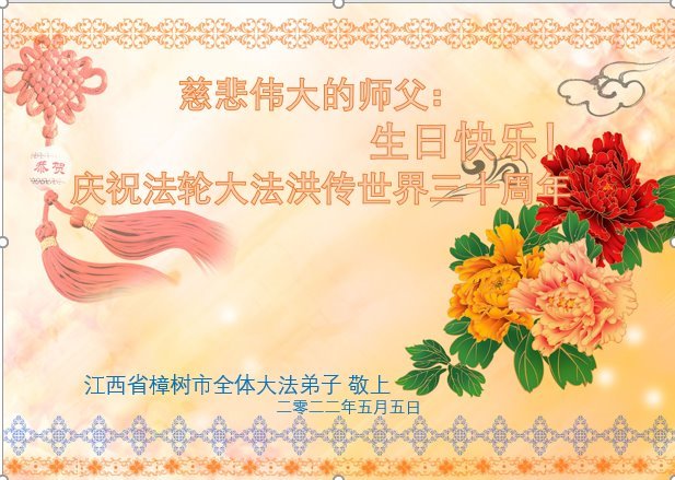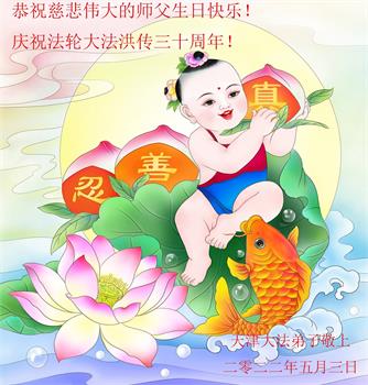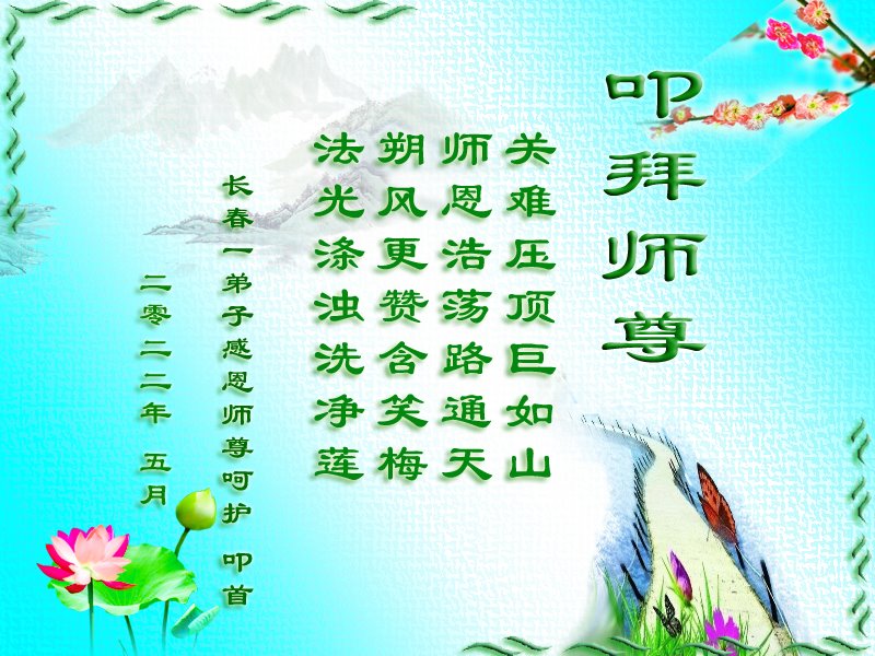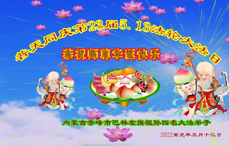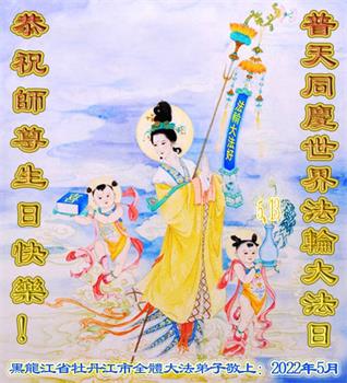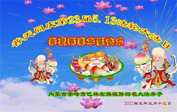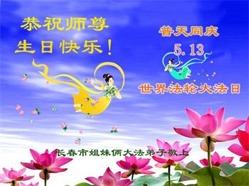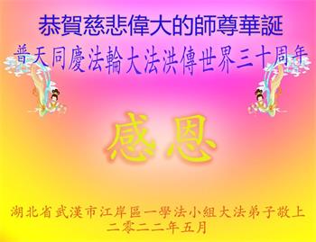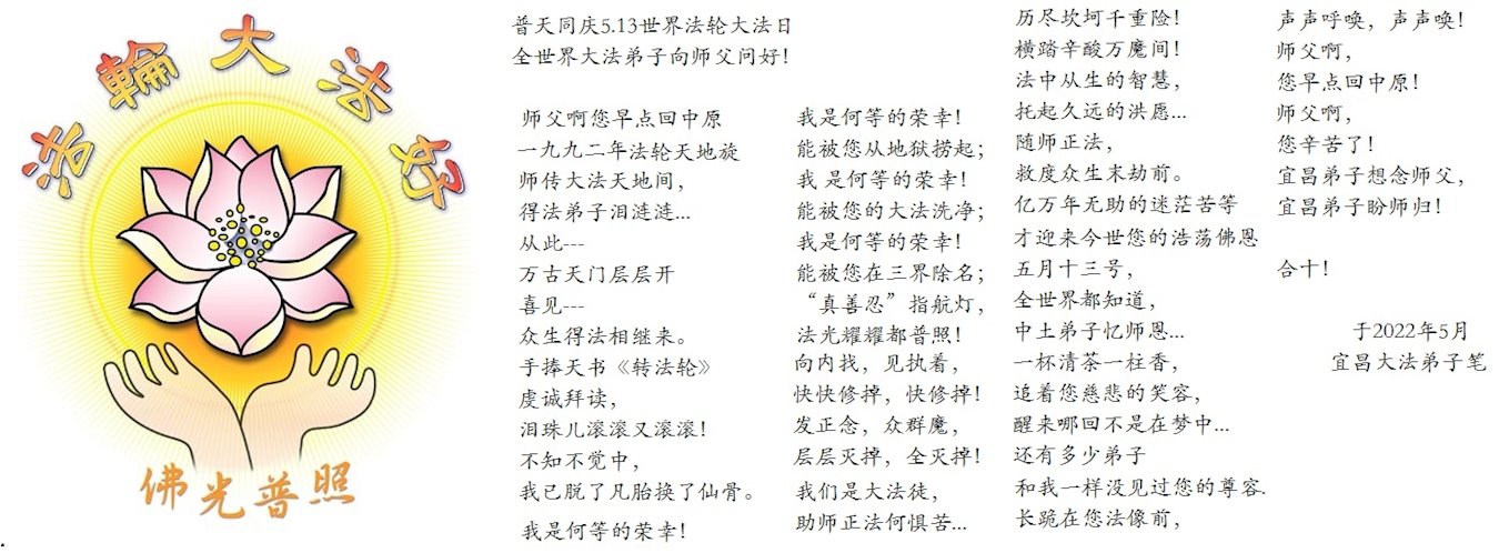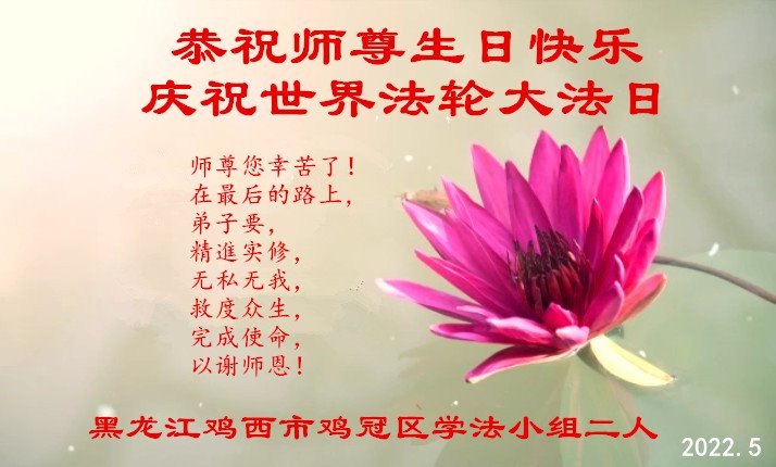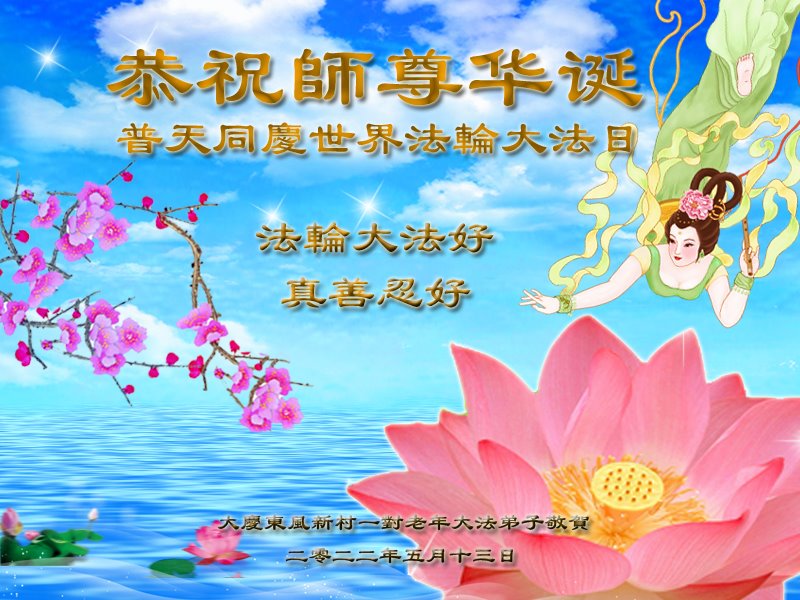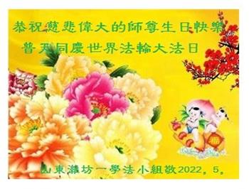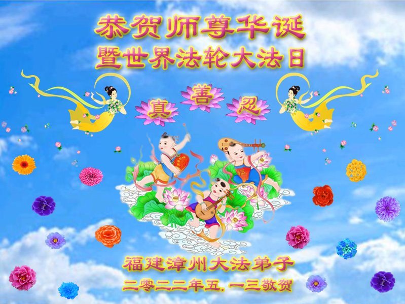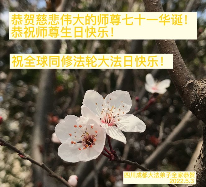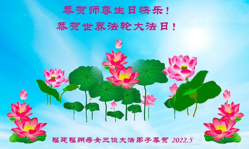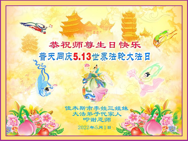 <英文版: http://en.d2s3ombhnov3zf.cloudfront.net/html/articles/2022/5/12/200518.html>长春大法弟子恭贺世界法轮大法日暨师尊华诞(22条)