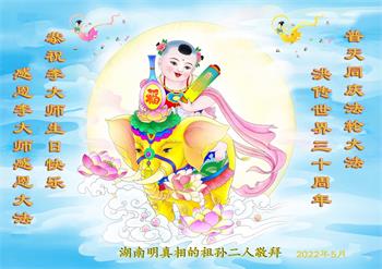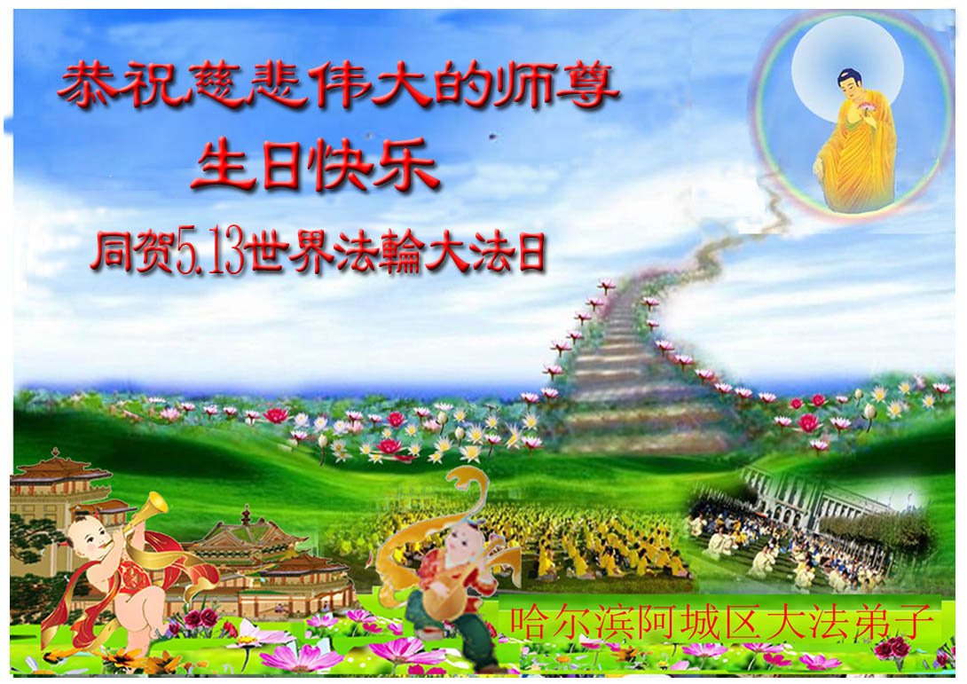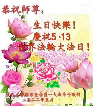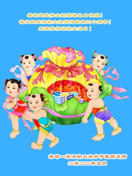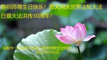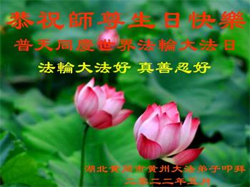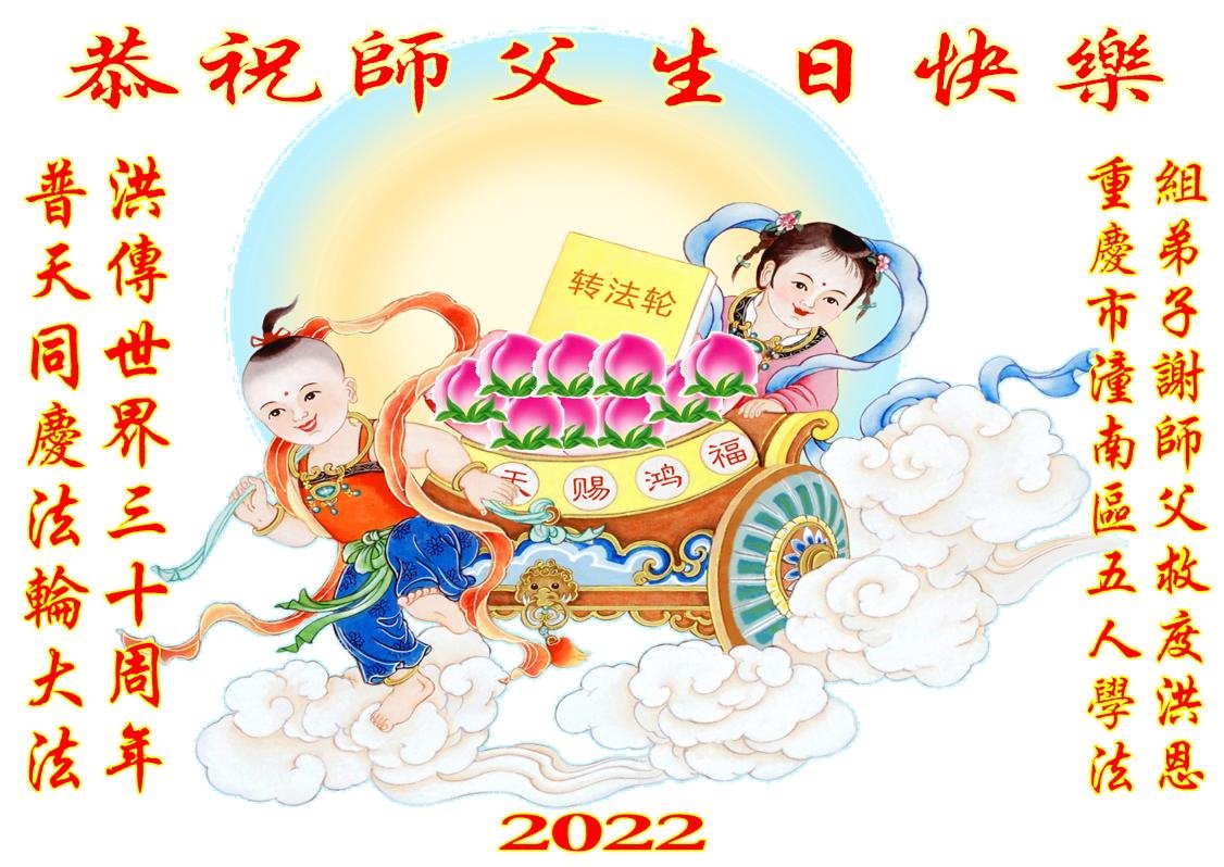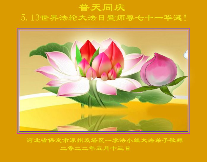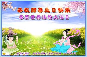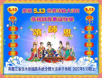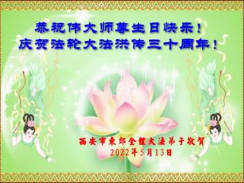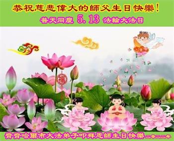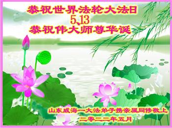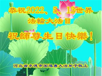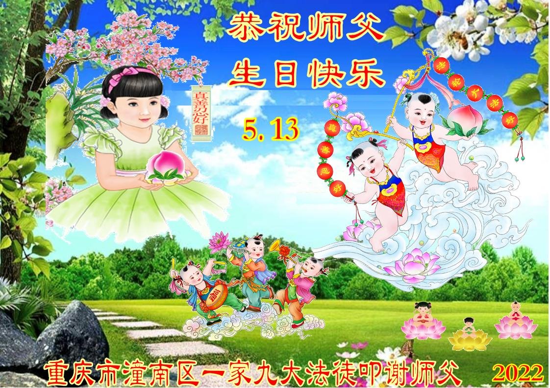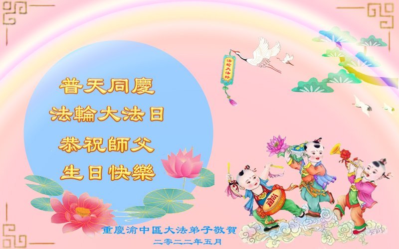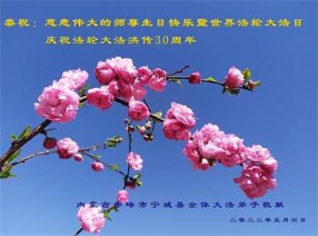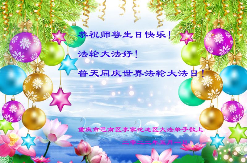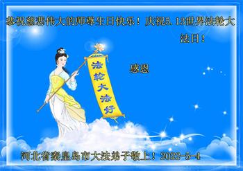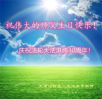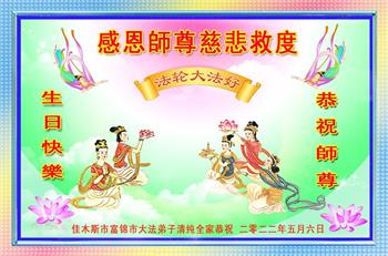 <英文版: http://en.d2s3ombhnov3zf.cloudfront.net/html/articles/2022/5/12/200518.html>长春大法弟子恭贺世界法轮大法日暨师尊华诞(22条)