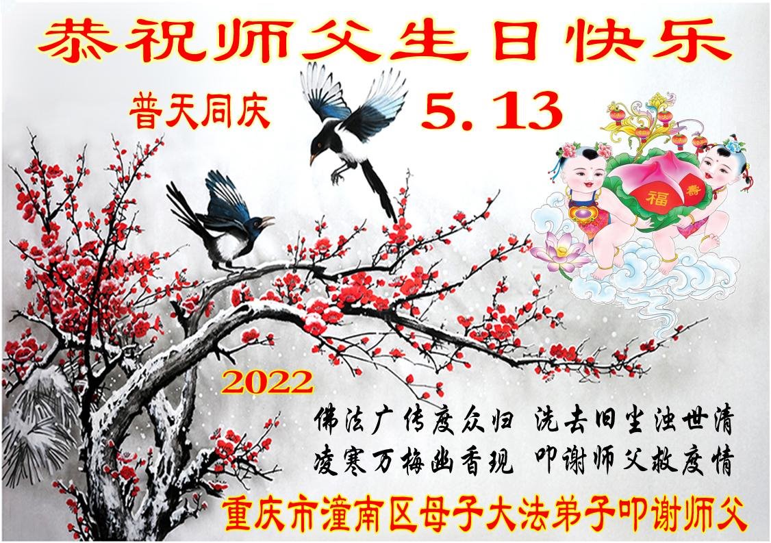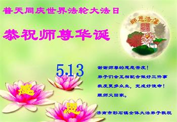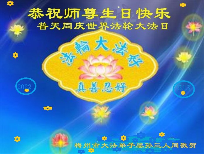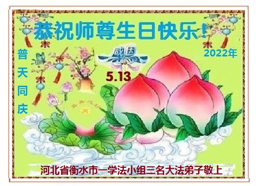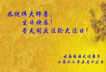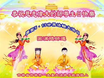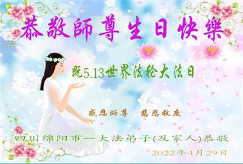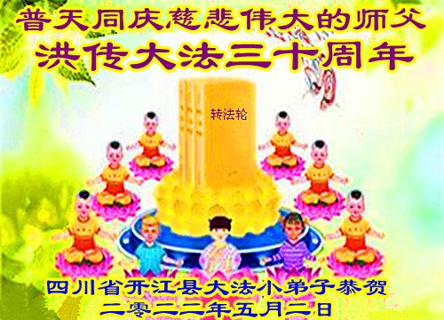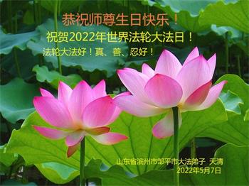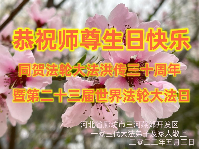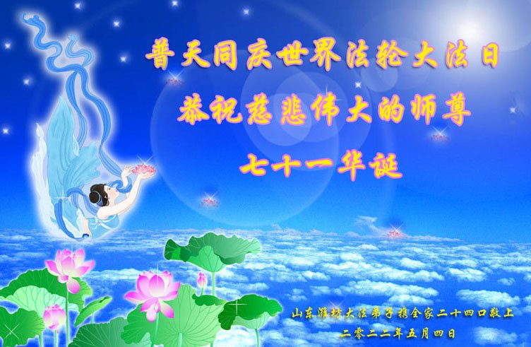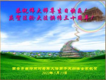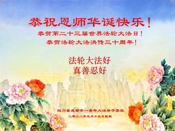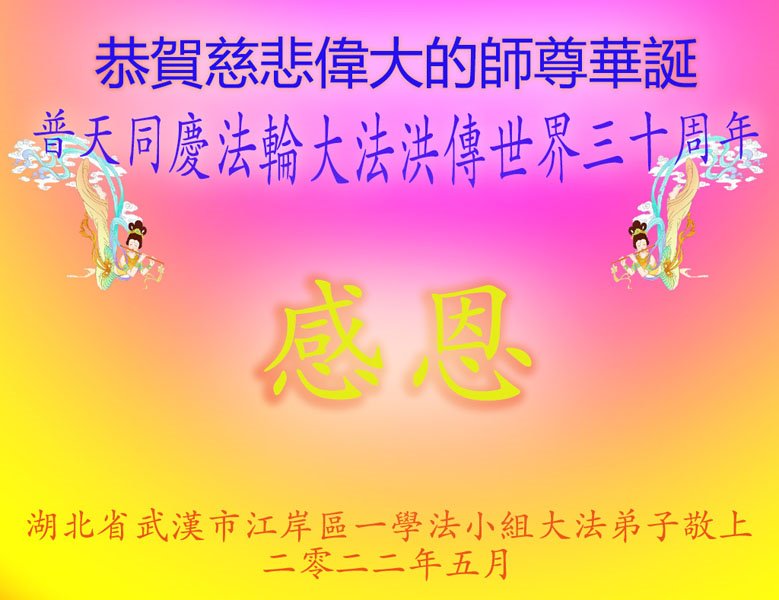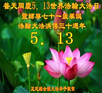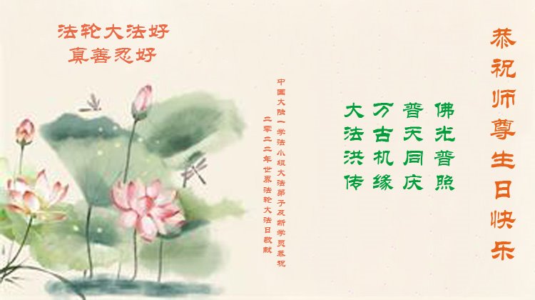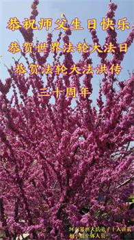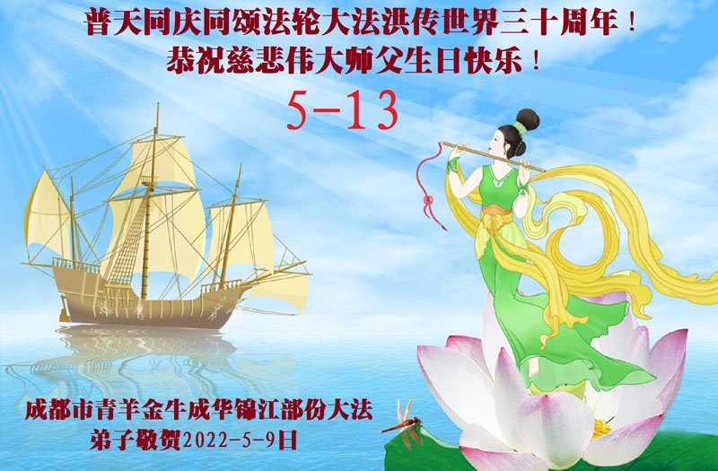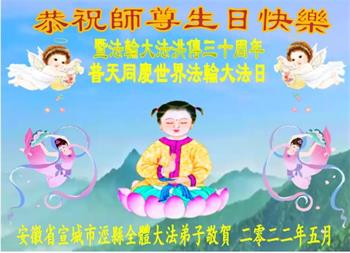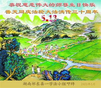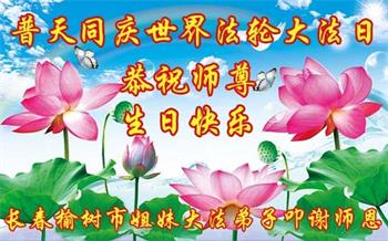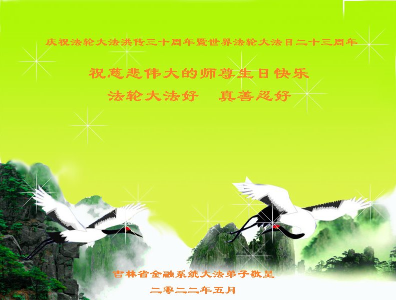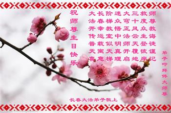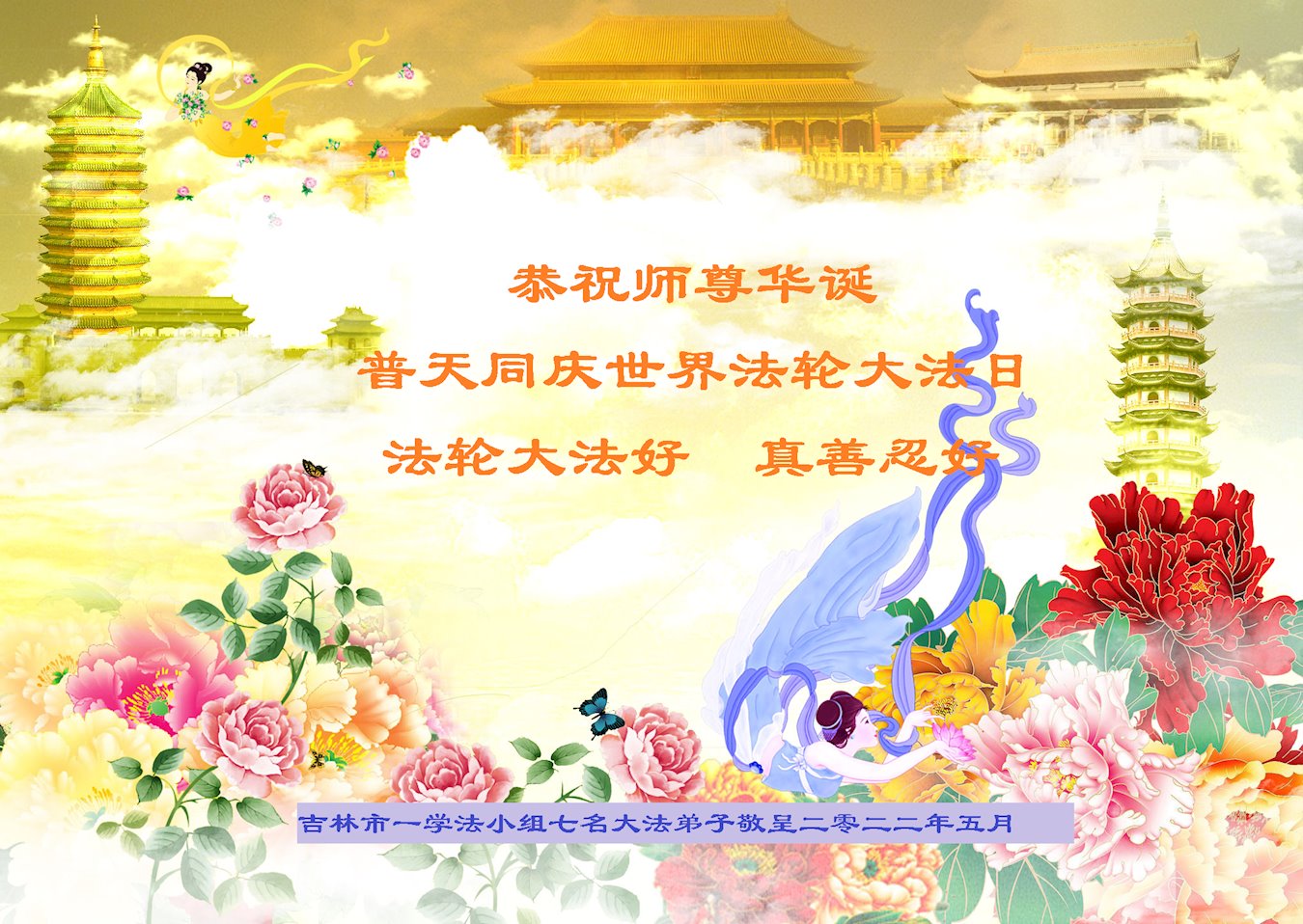 <英文版: http://en.d2s3ombhnov3zf.cloudfront.net/html/articles/2022/5/12/200518.html>长春大法弟子恭贺世界法轮大法日暨师尊华诞(22条)