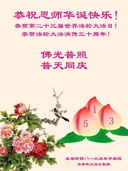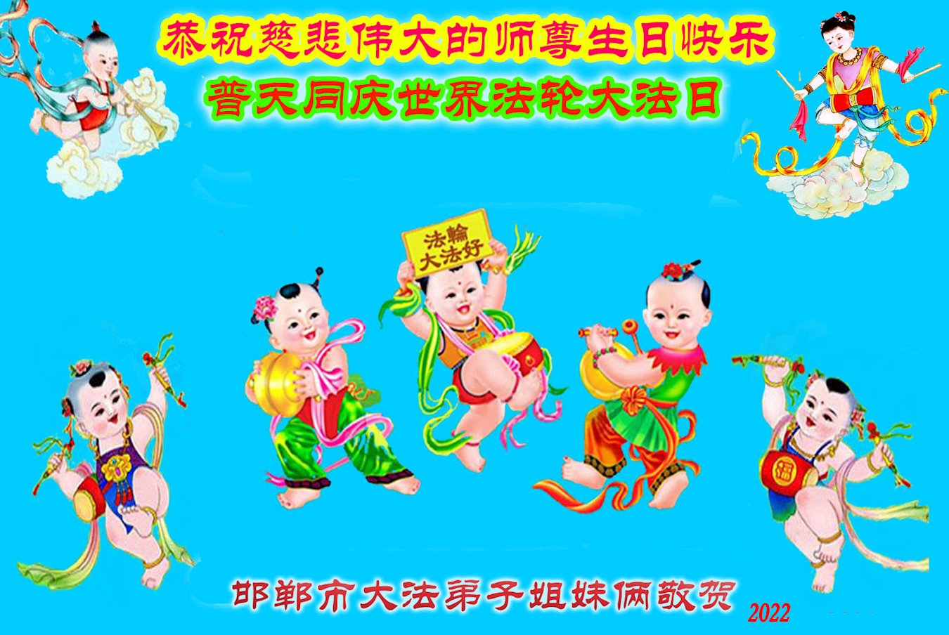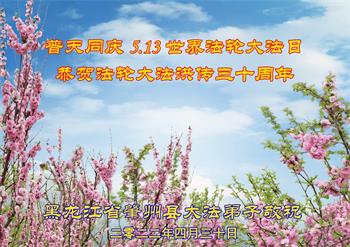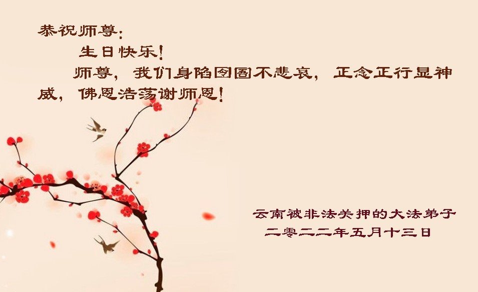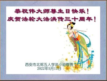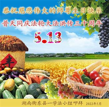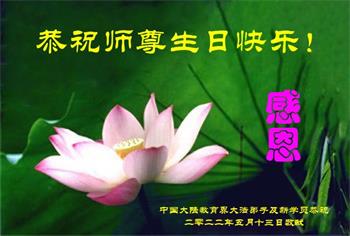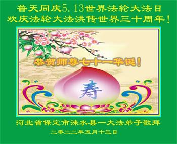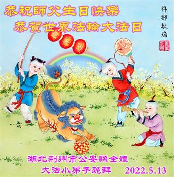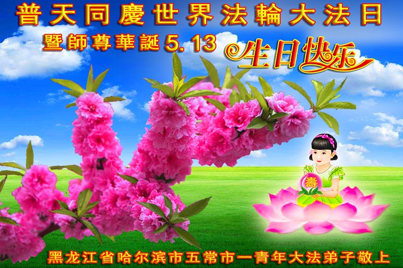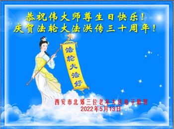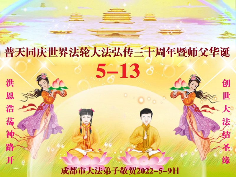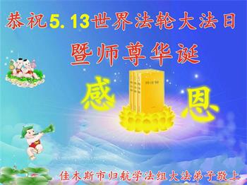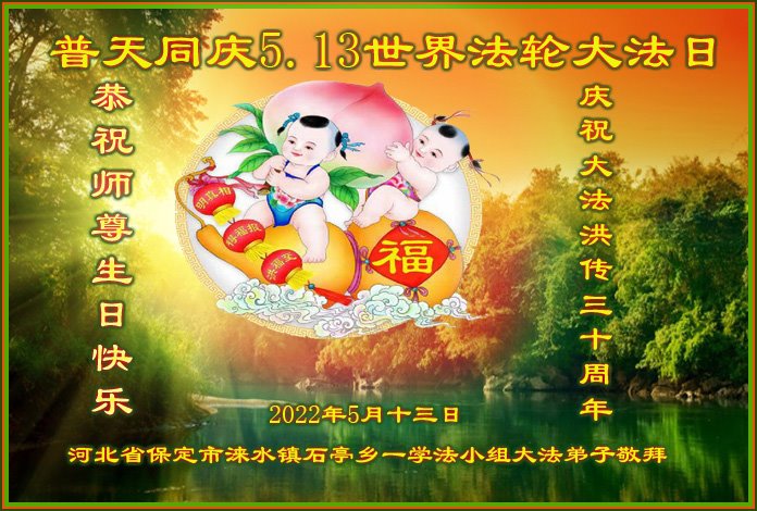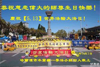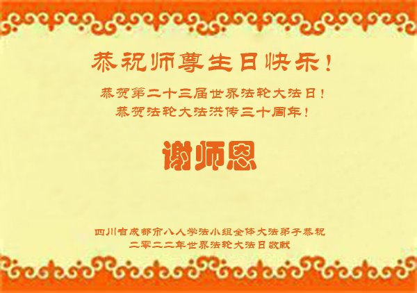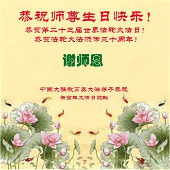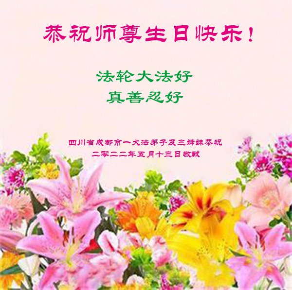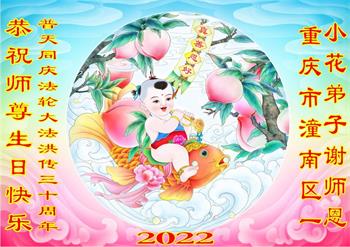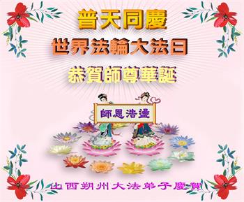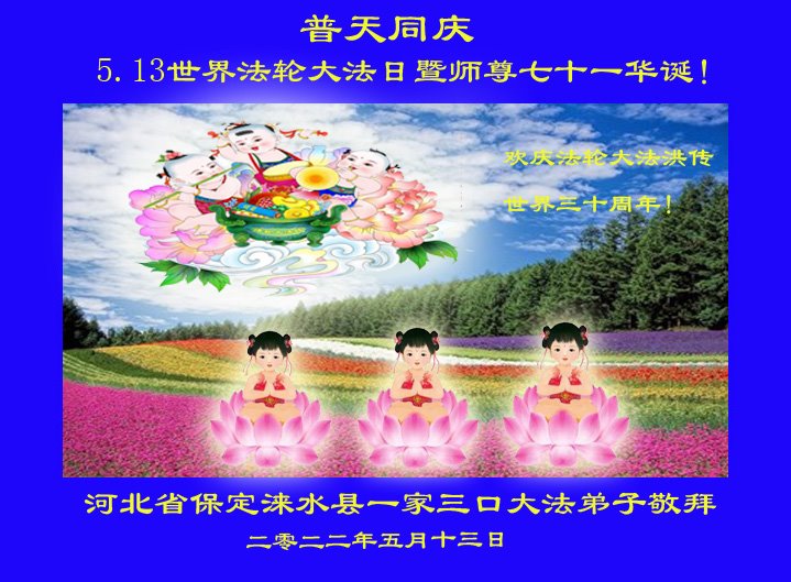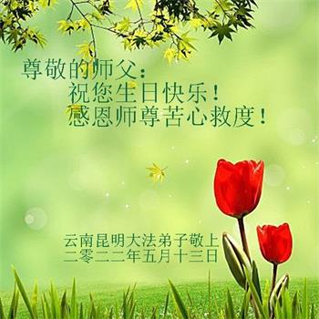 <英文版: http://en.d2s3ombhnov3zf.cloudfront.net/html/articles/2022/5/12/200518.html>长春大法弟子恭贺世界法轮大法日暨师尊华诞(22条)