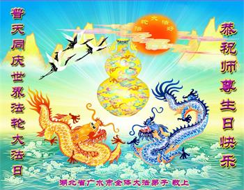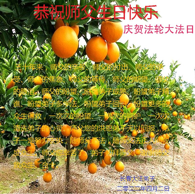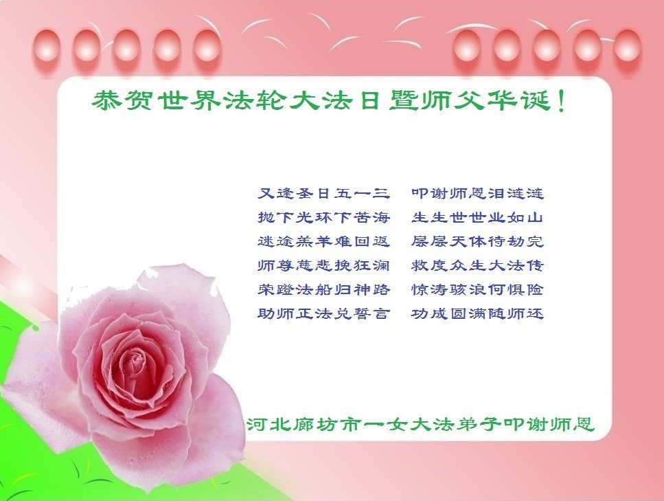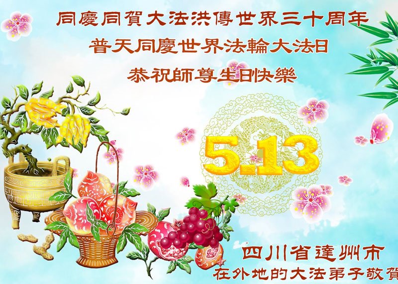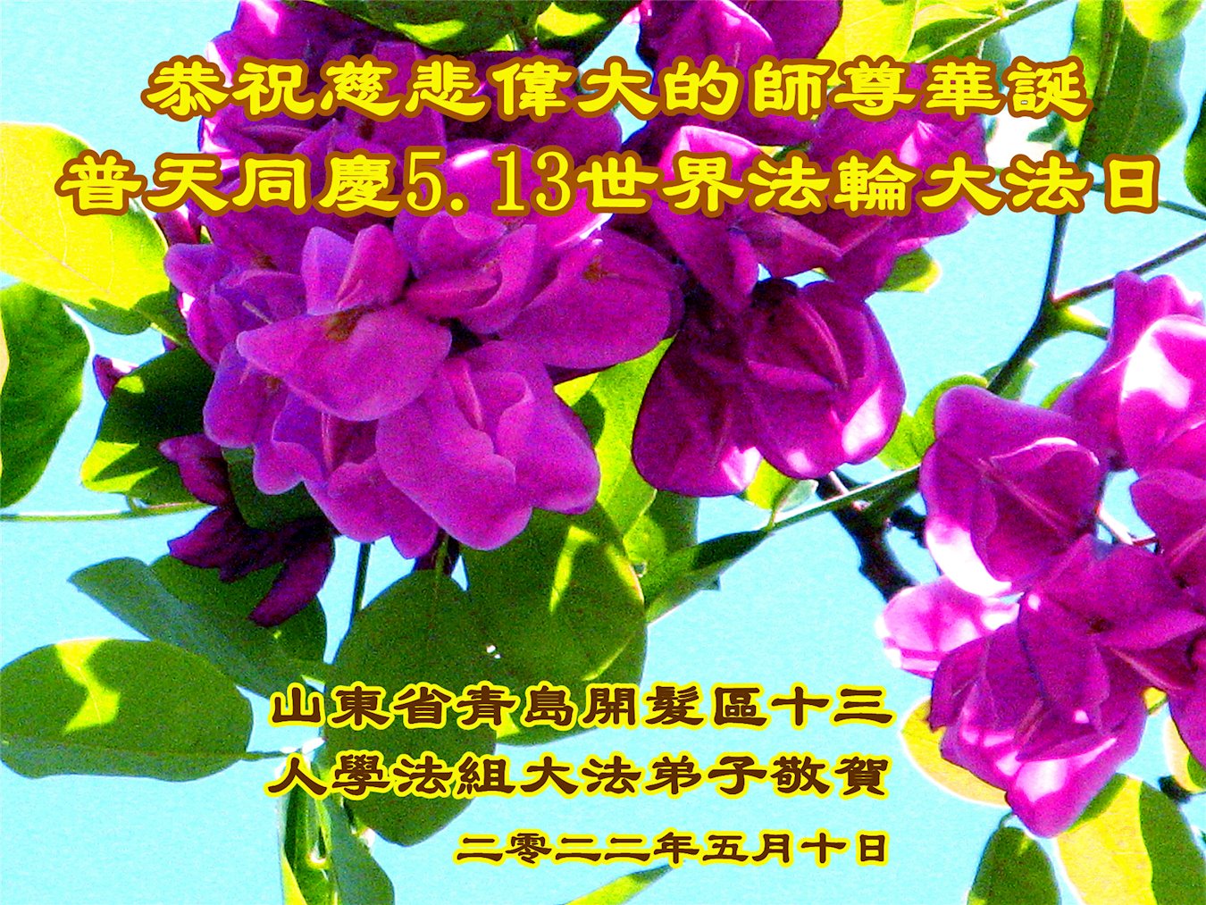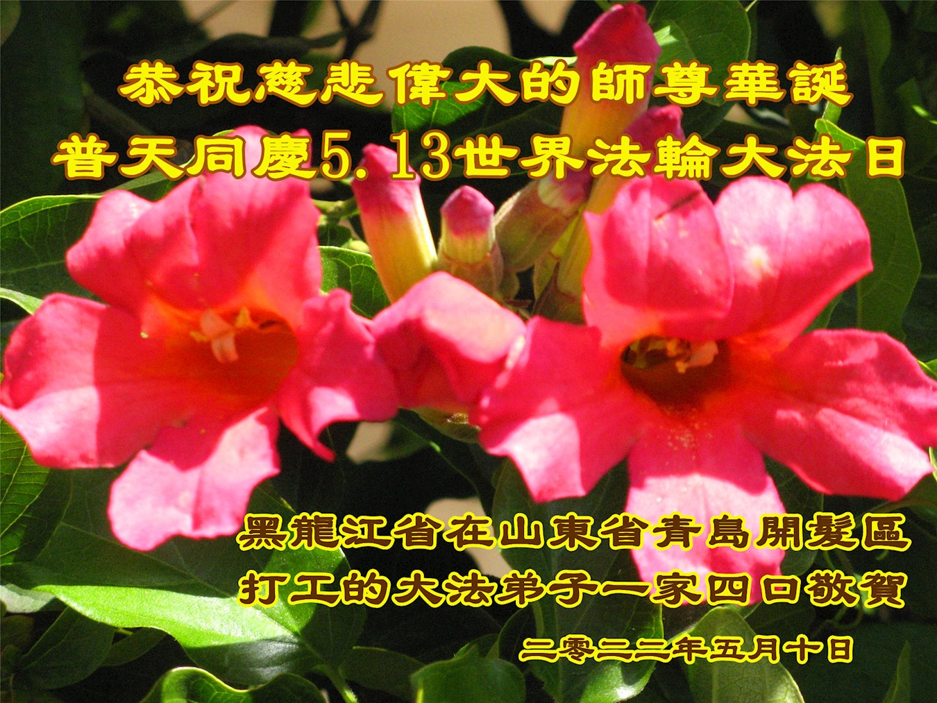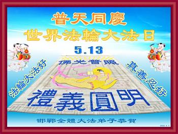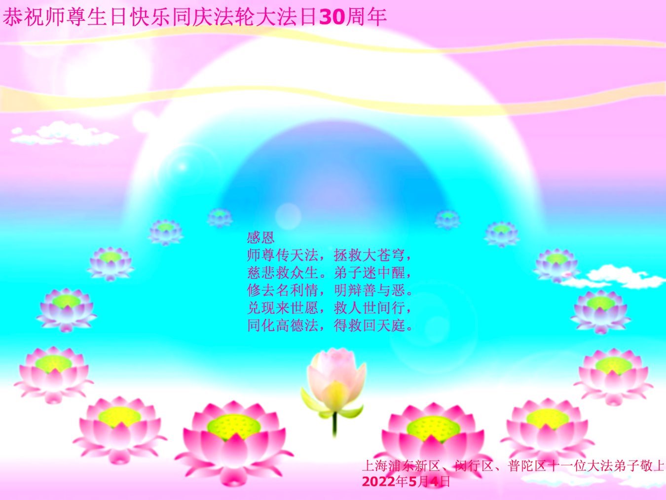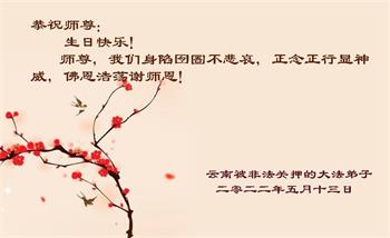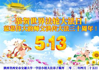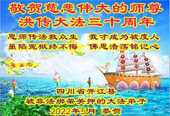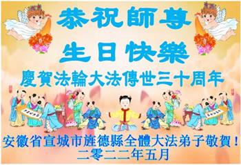 <英文版: http://en.d2s3ombhnov3zf.cloudfront.net/html/articles/2022/5/12/200518.html>长春大法弟子恭贺世界法轮大法日暨师尊华诞(22条)