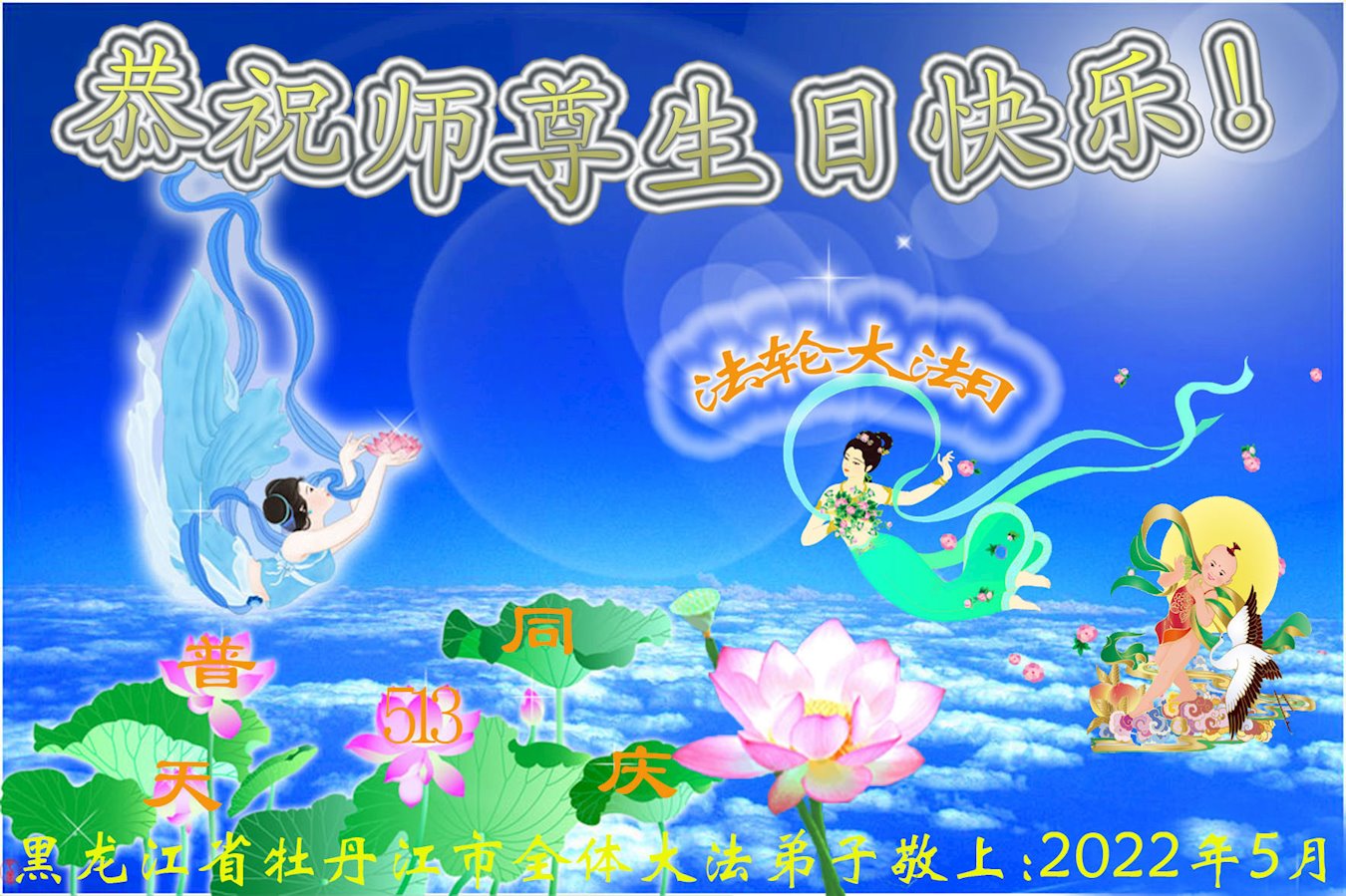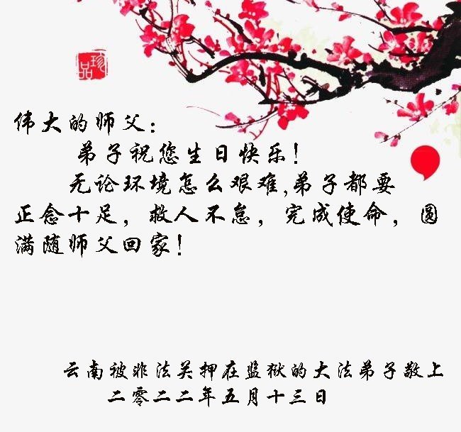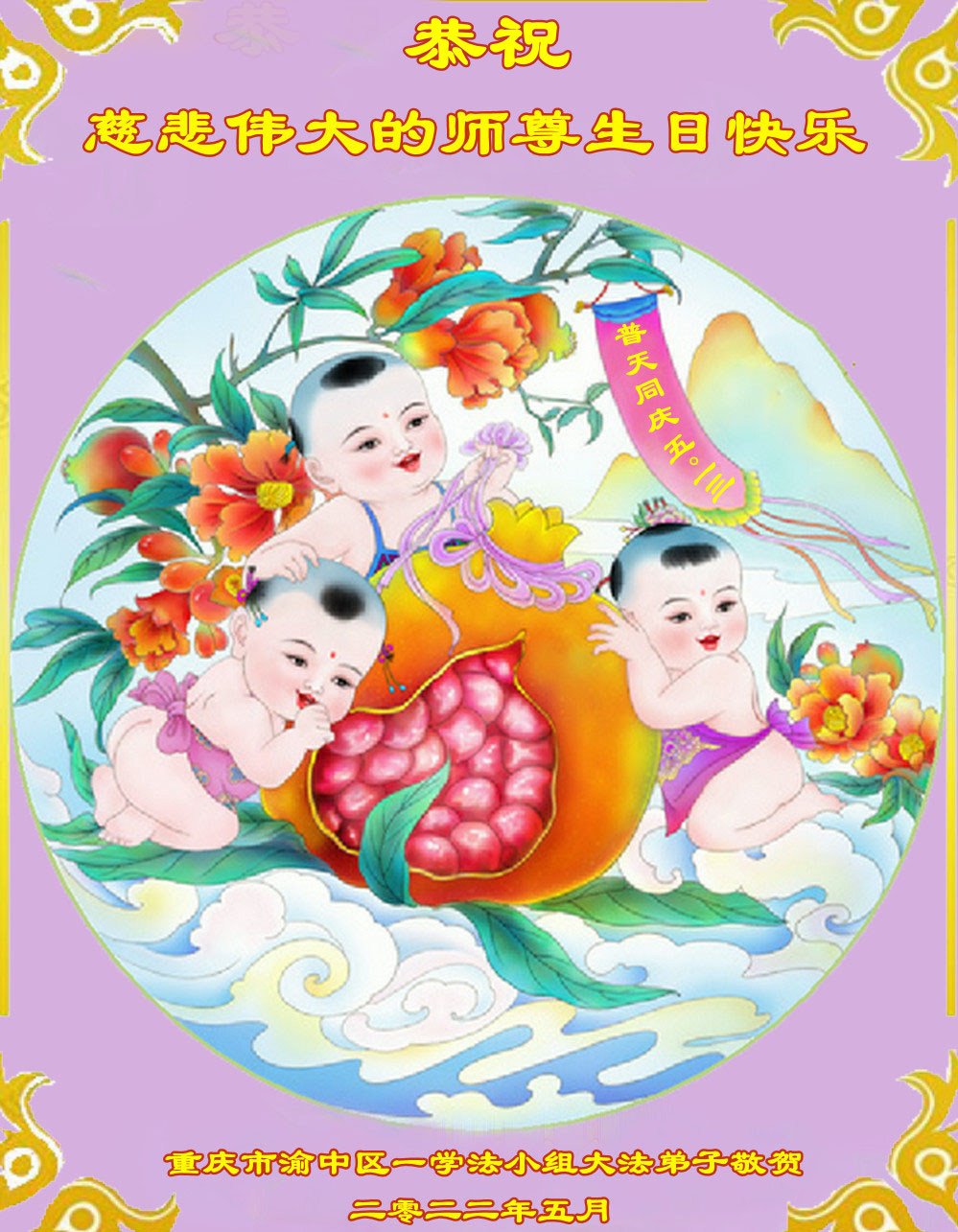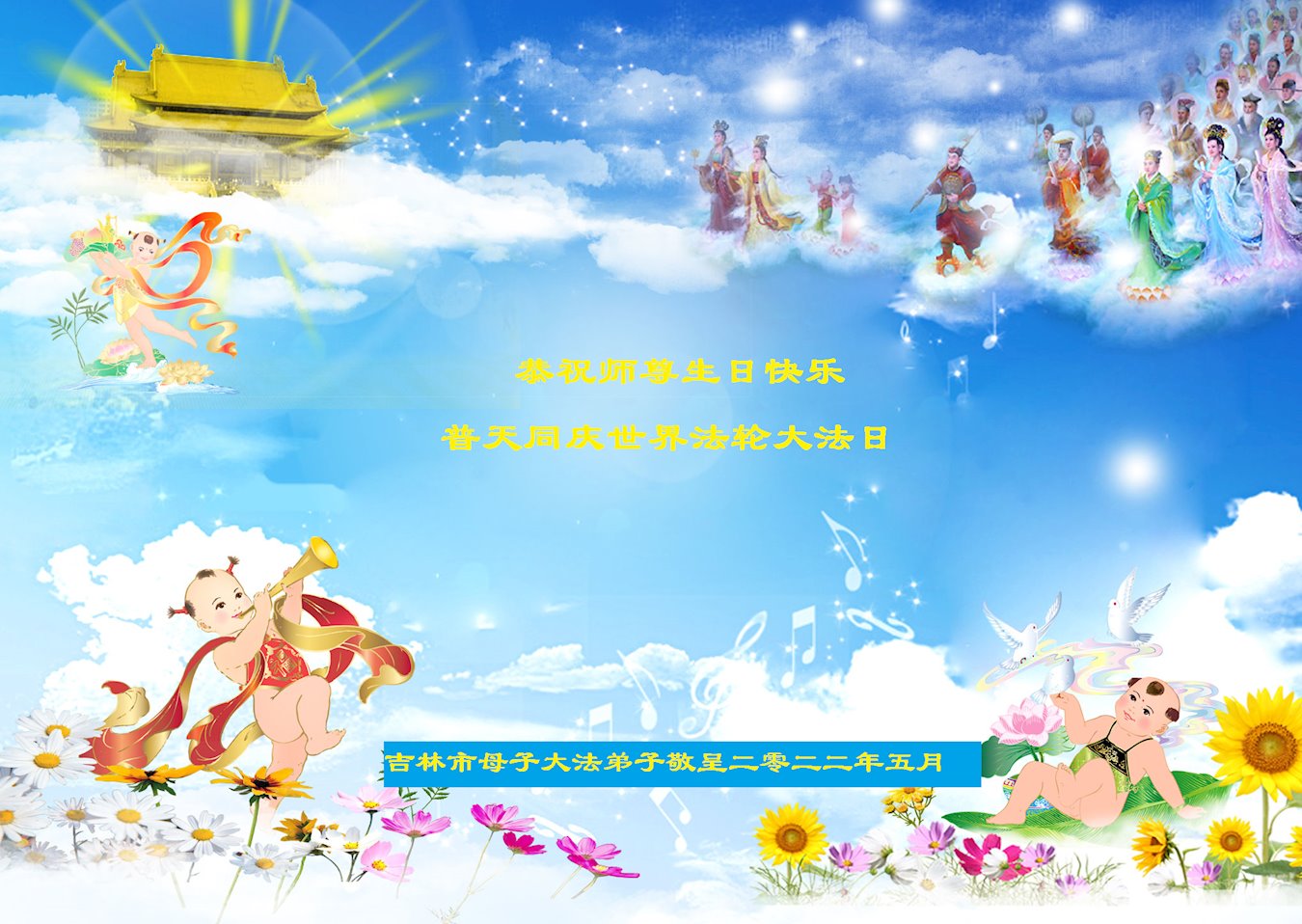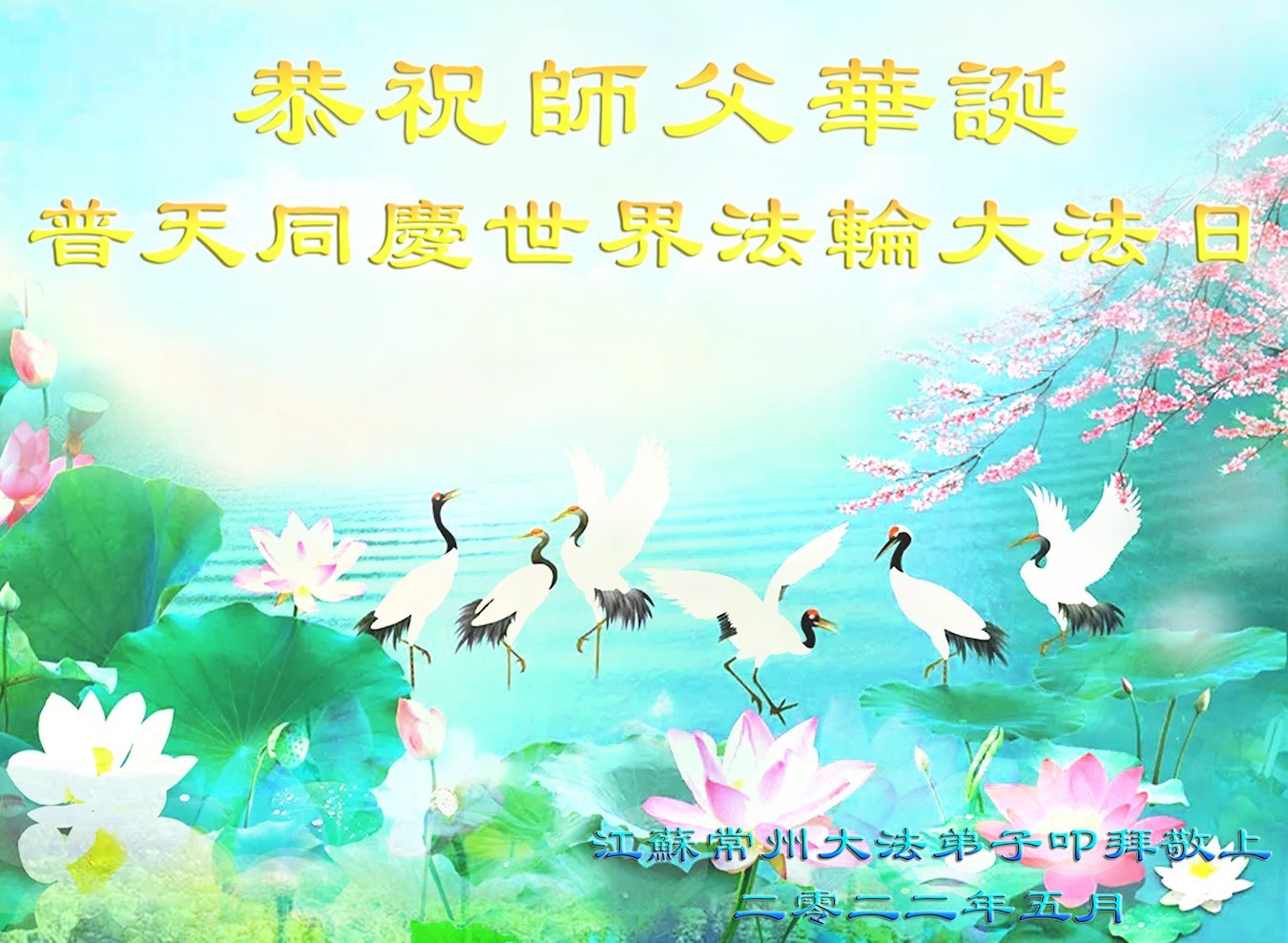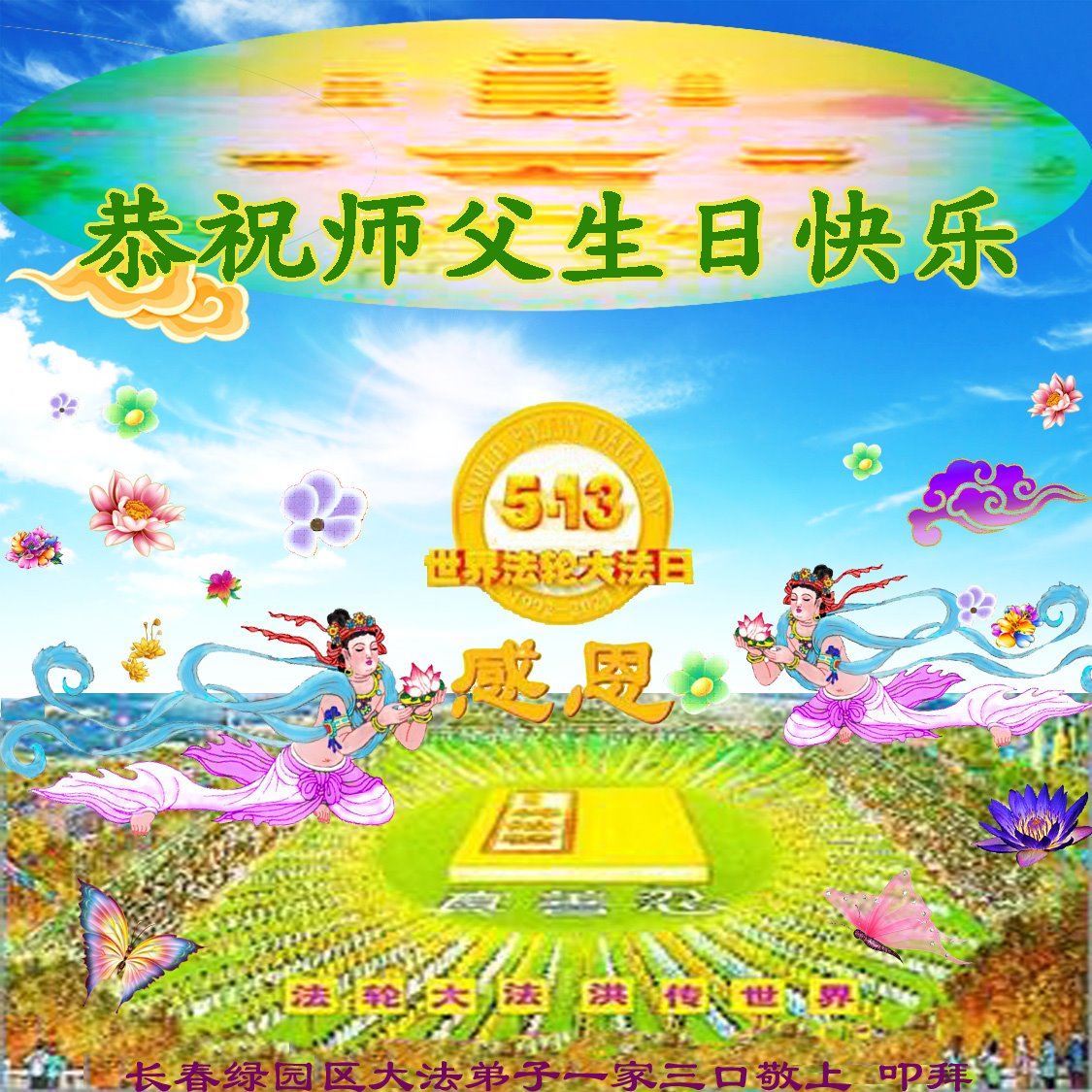 <英文版: http://en.d2s3ombhnov3zf.cloudfront.net/html/articles/2022/5/12/200518.html>长春大法弟子恭贺世界法轮大法日暨师尊华诞(22条)