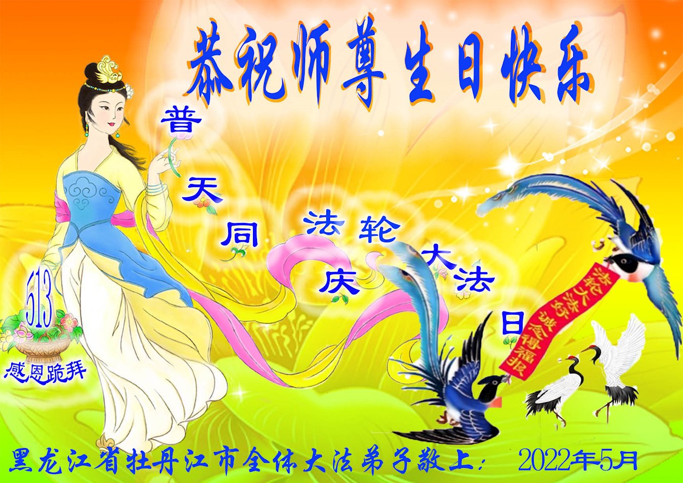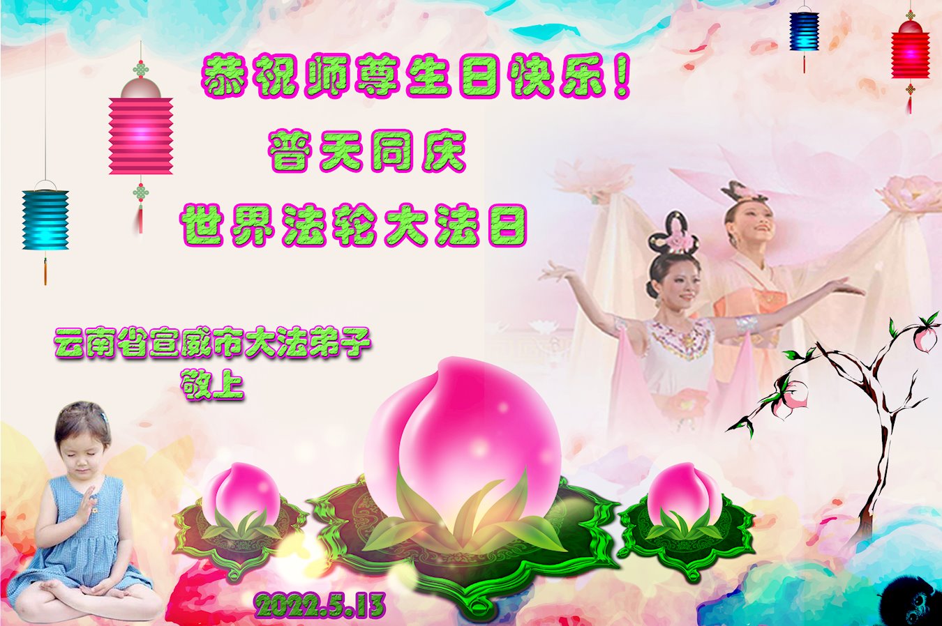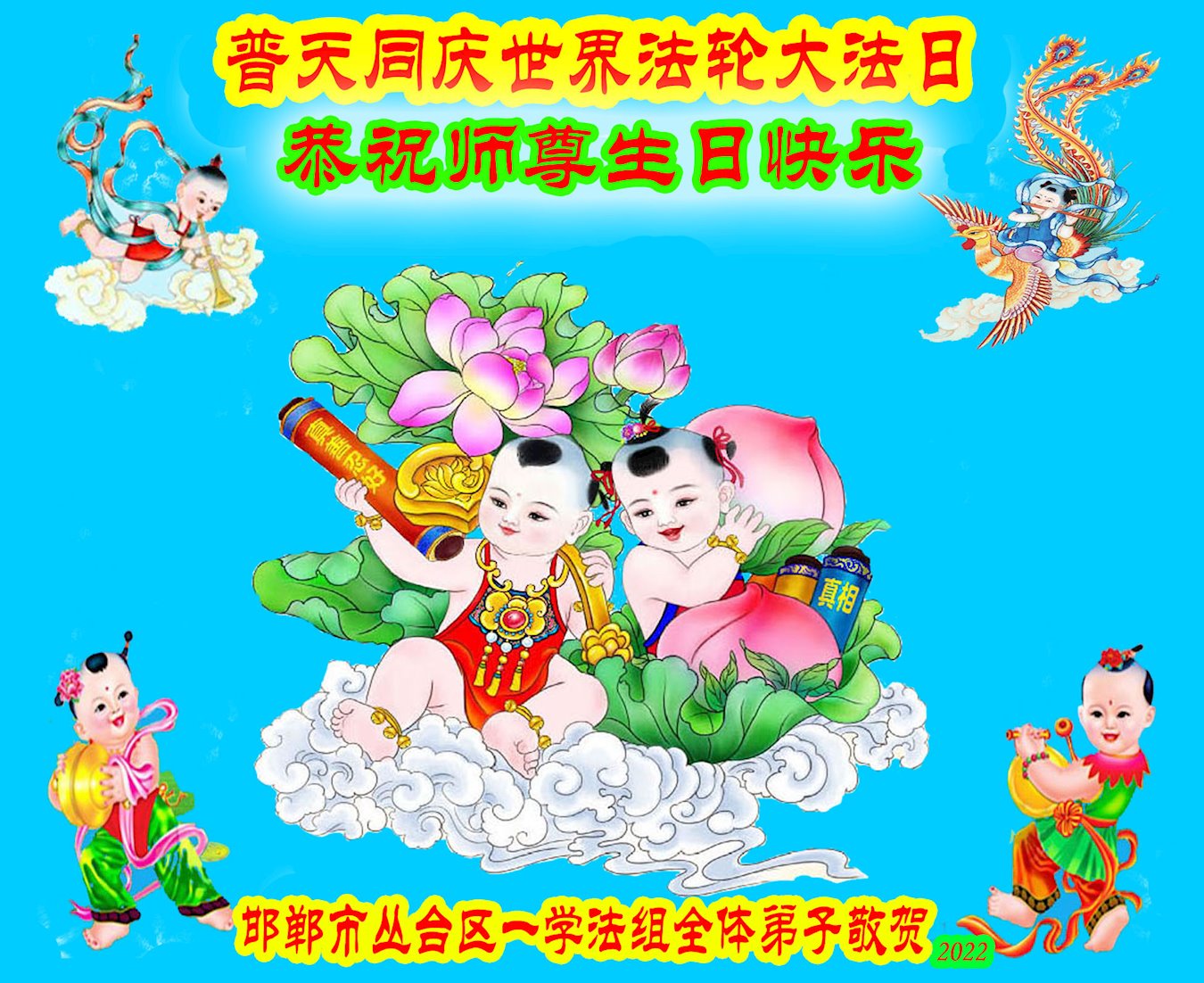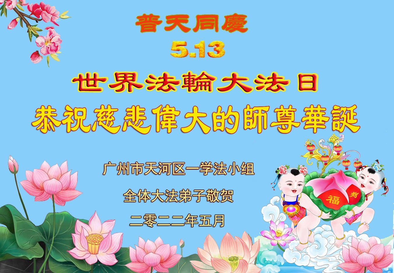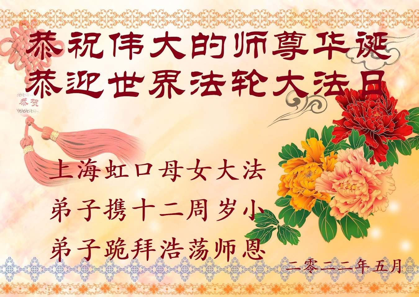 <英文版: http://en.d2s3ombhnov3zf.cloudfront.net/html/articles/2022/5/12/200518.html>长春大法弟子恭贺世界法轮大法日暨师尊华诞(22条)