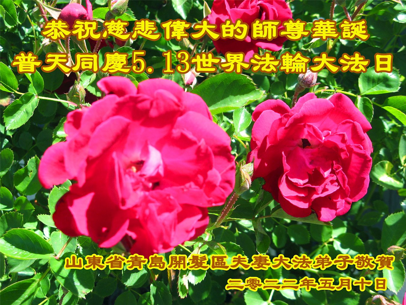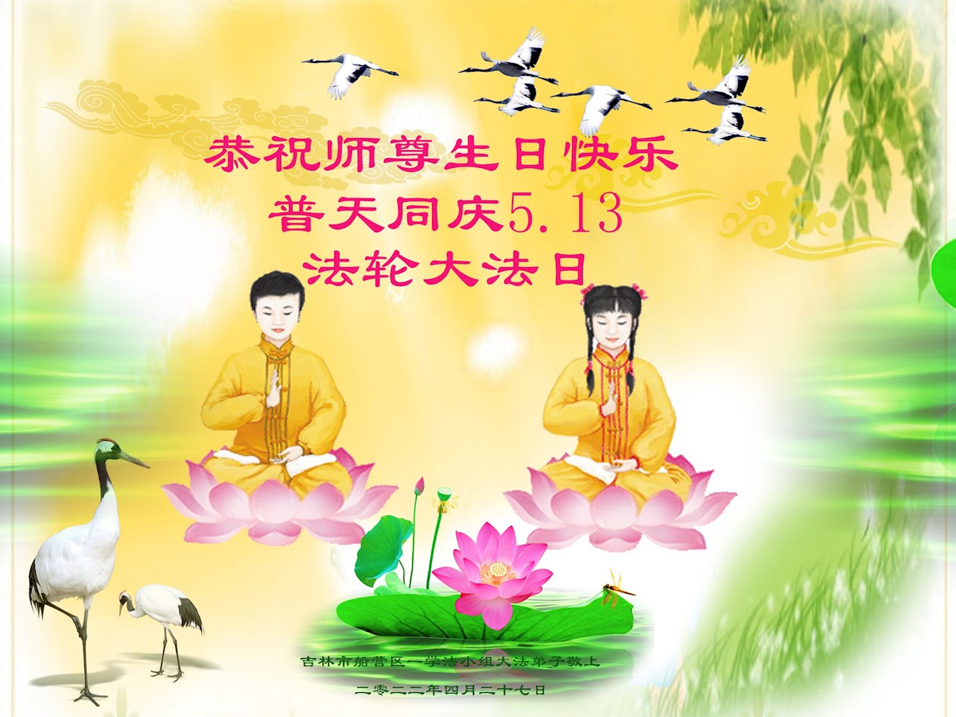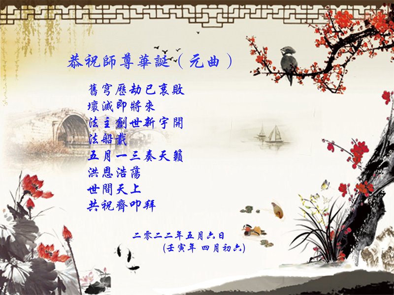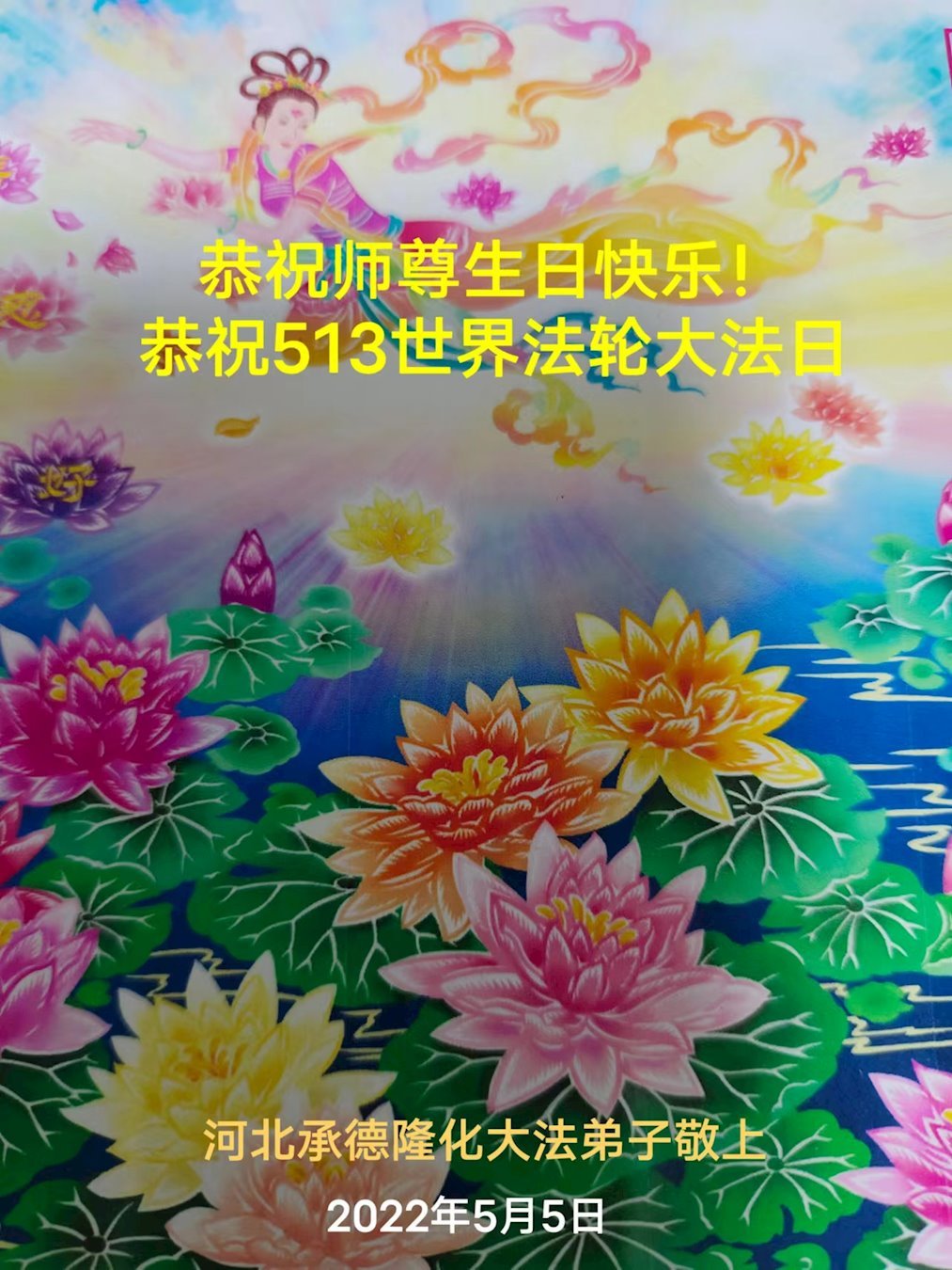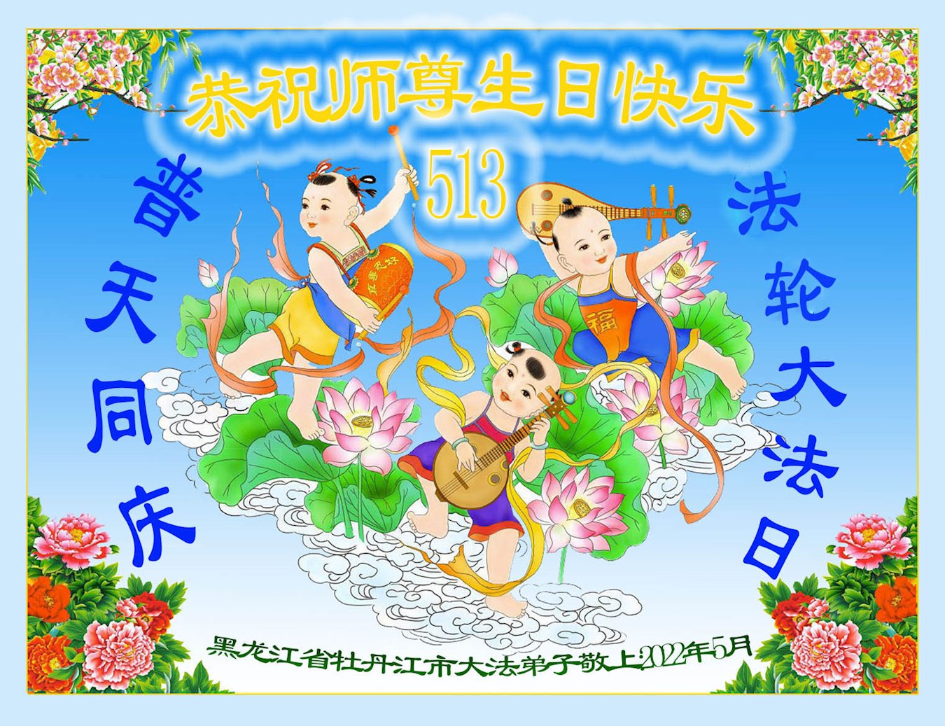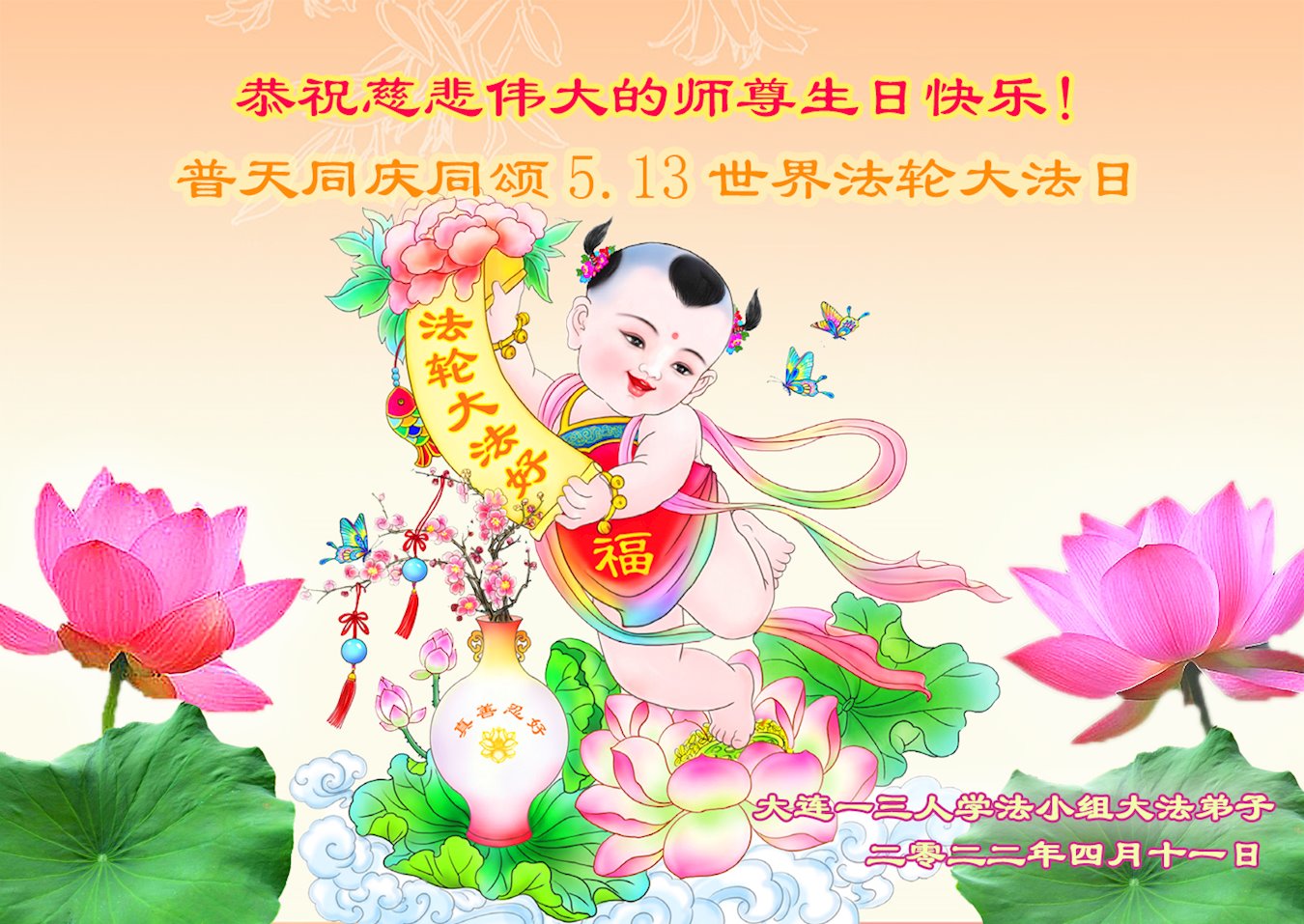 <英文版: http://en.d2s3ombhnov3zf.cloudfront.net/html/articles/2022/5/12/200518.html>长春大法弟子恭贺世界法轮大法日暨师尊华诞(22条)