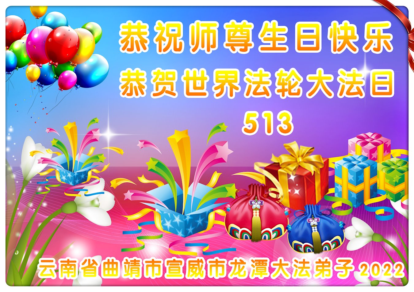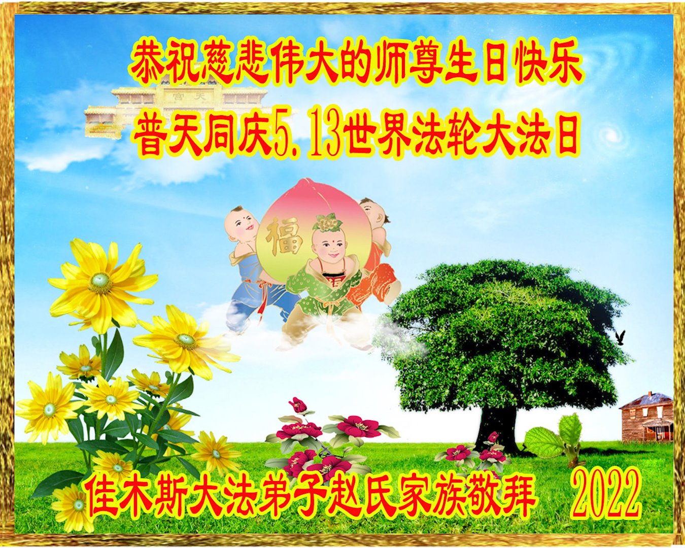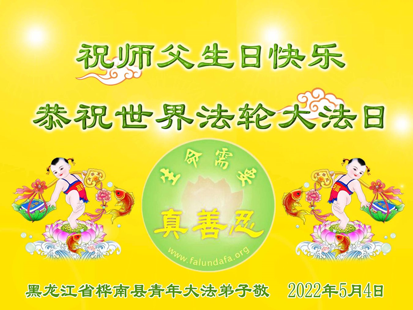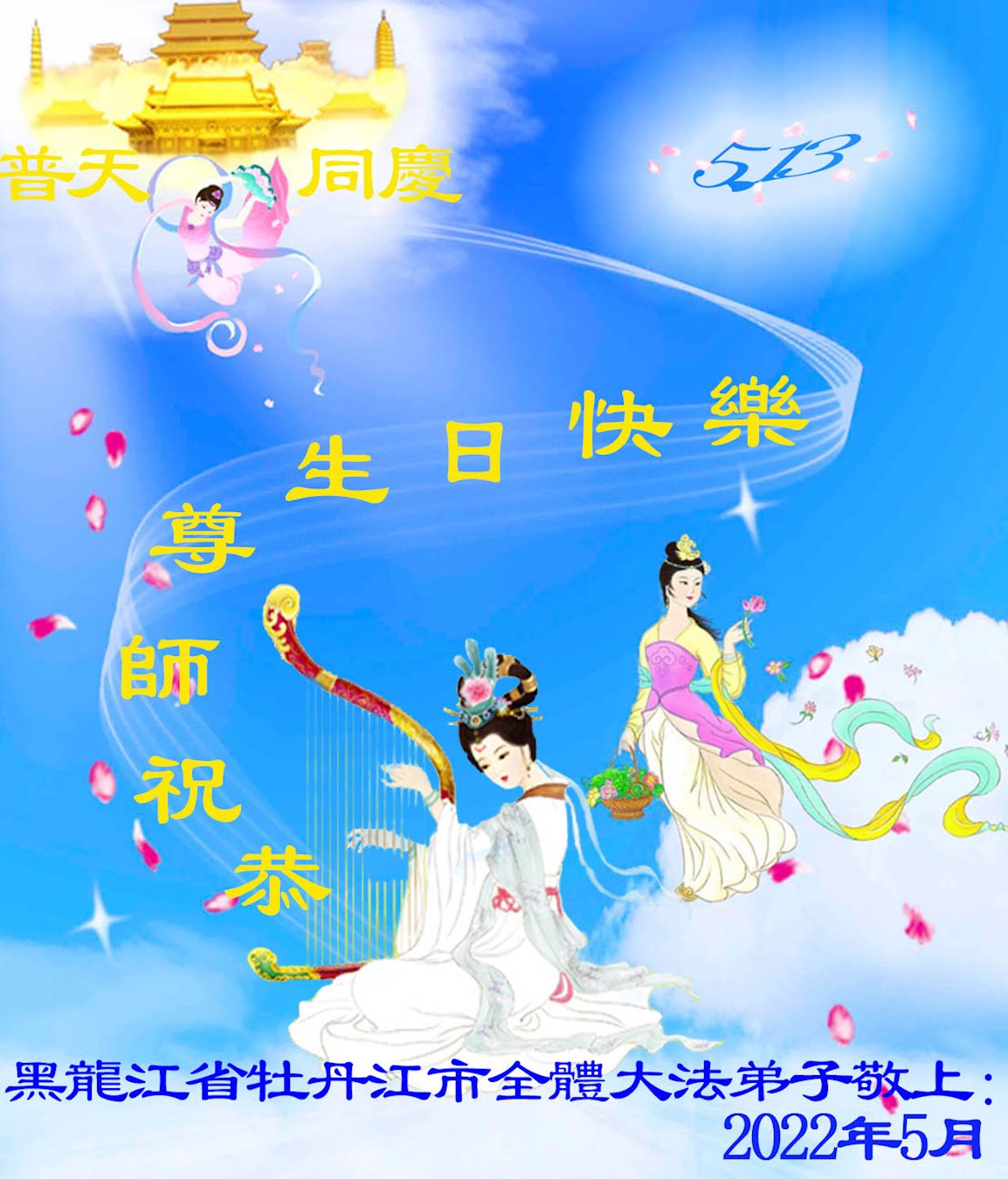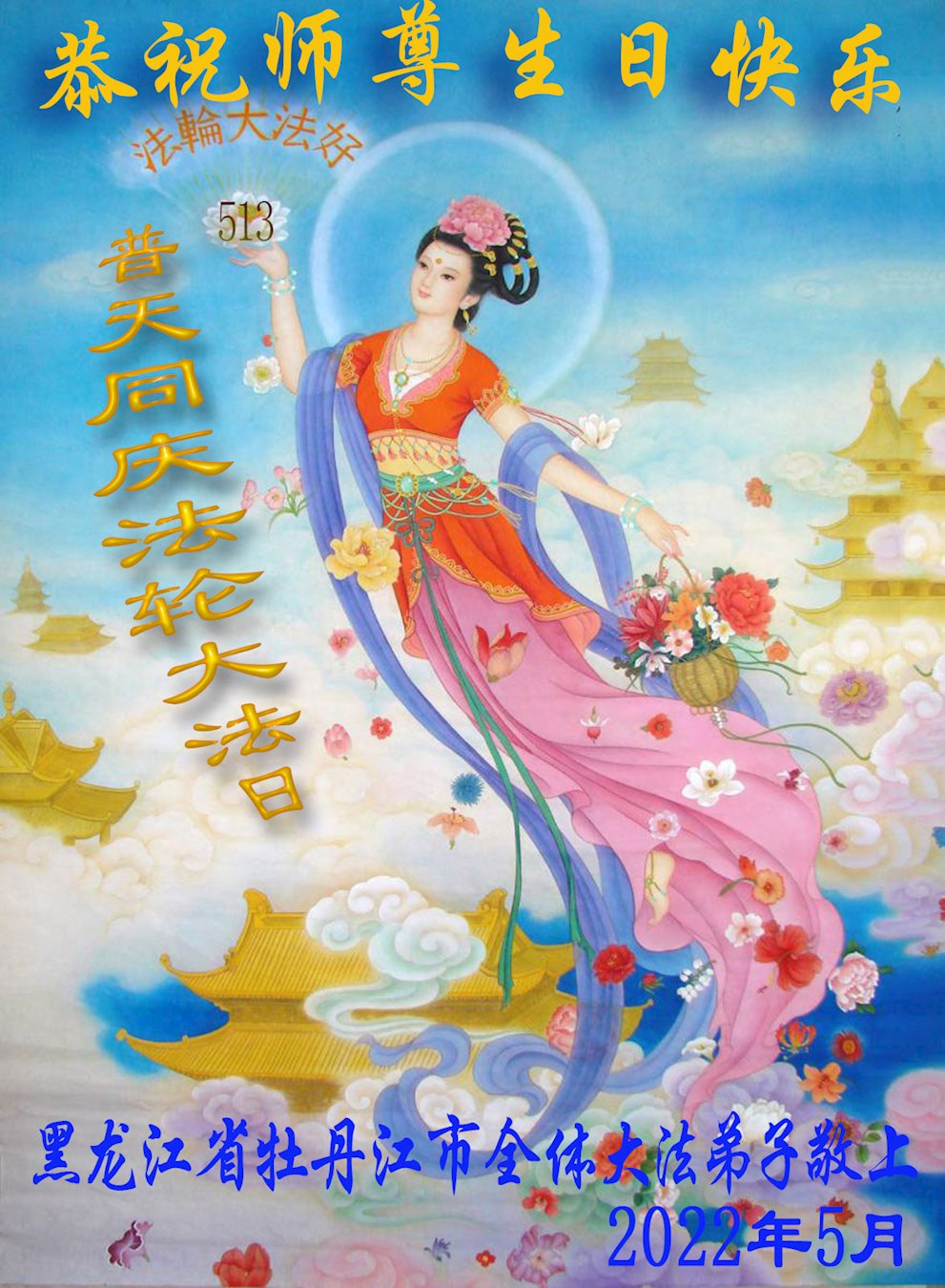 <英文版: http://en.d2s3ombhnov3zf.cloudfront.net/html/articles/2022/5/12/200518.html>长春大法弟子恭贺世界法轮大法日暨师尊华诞(22条)