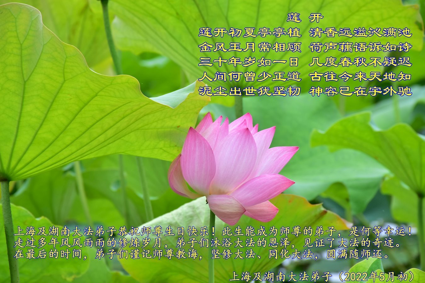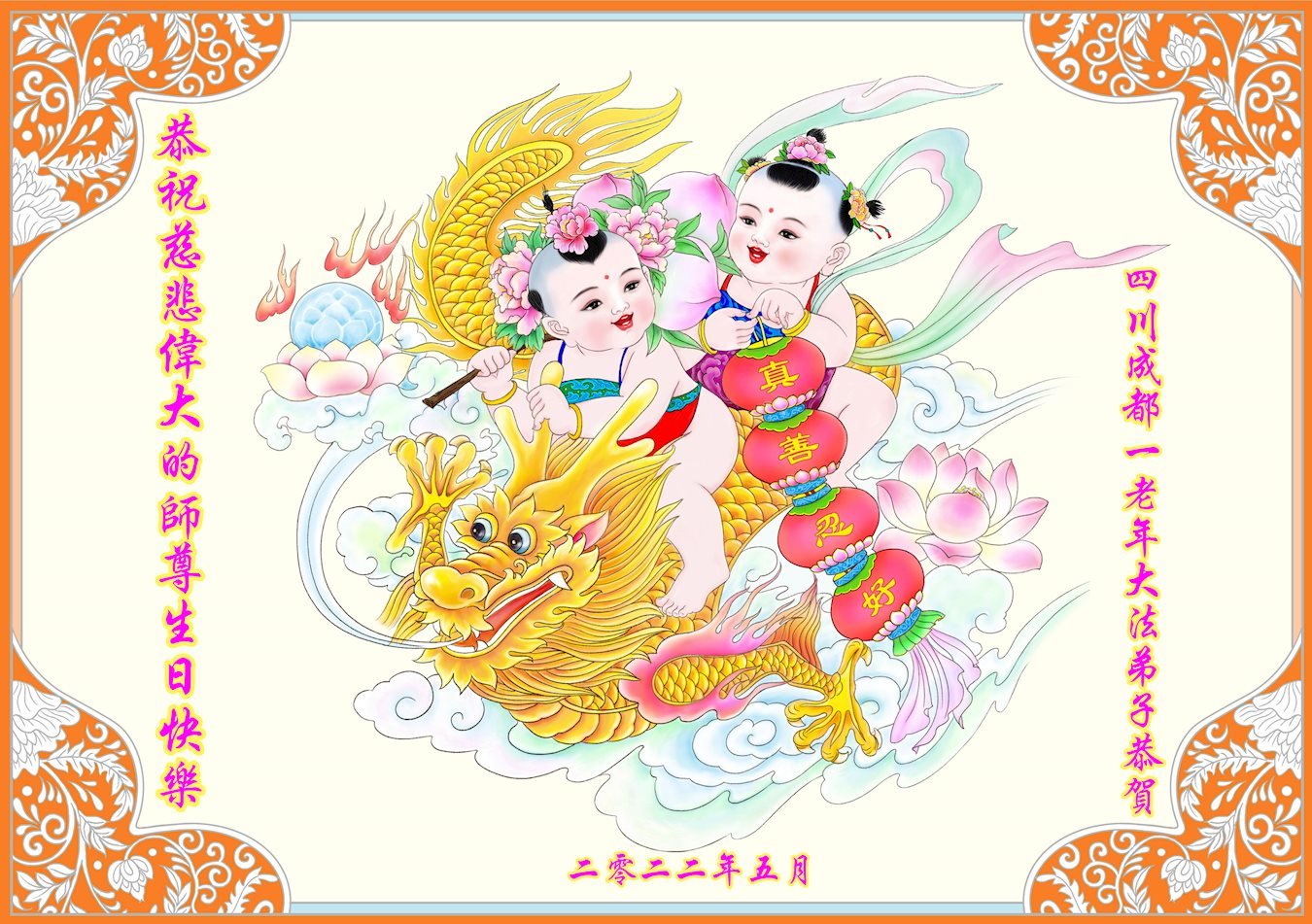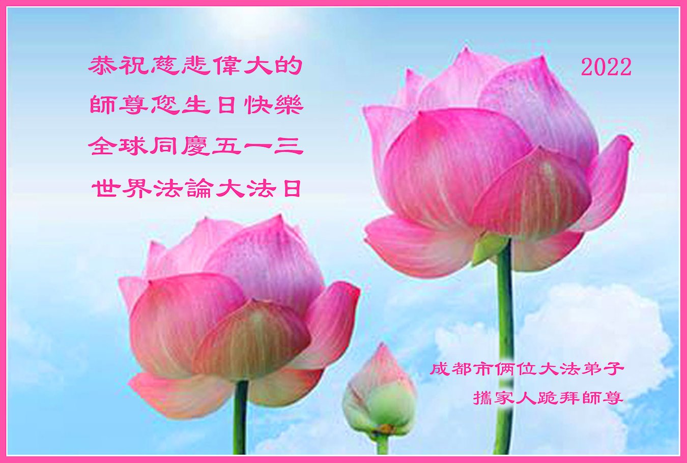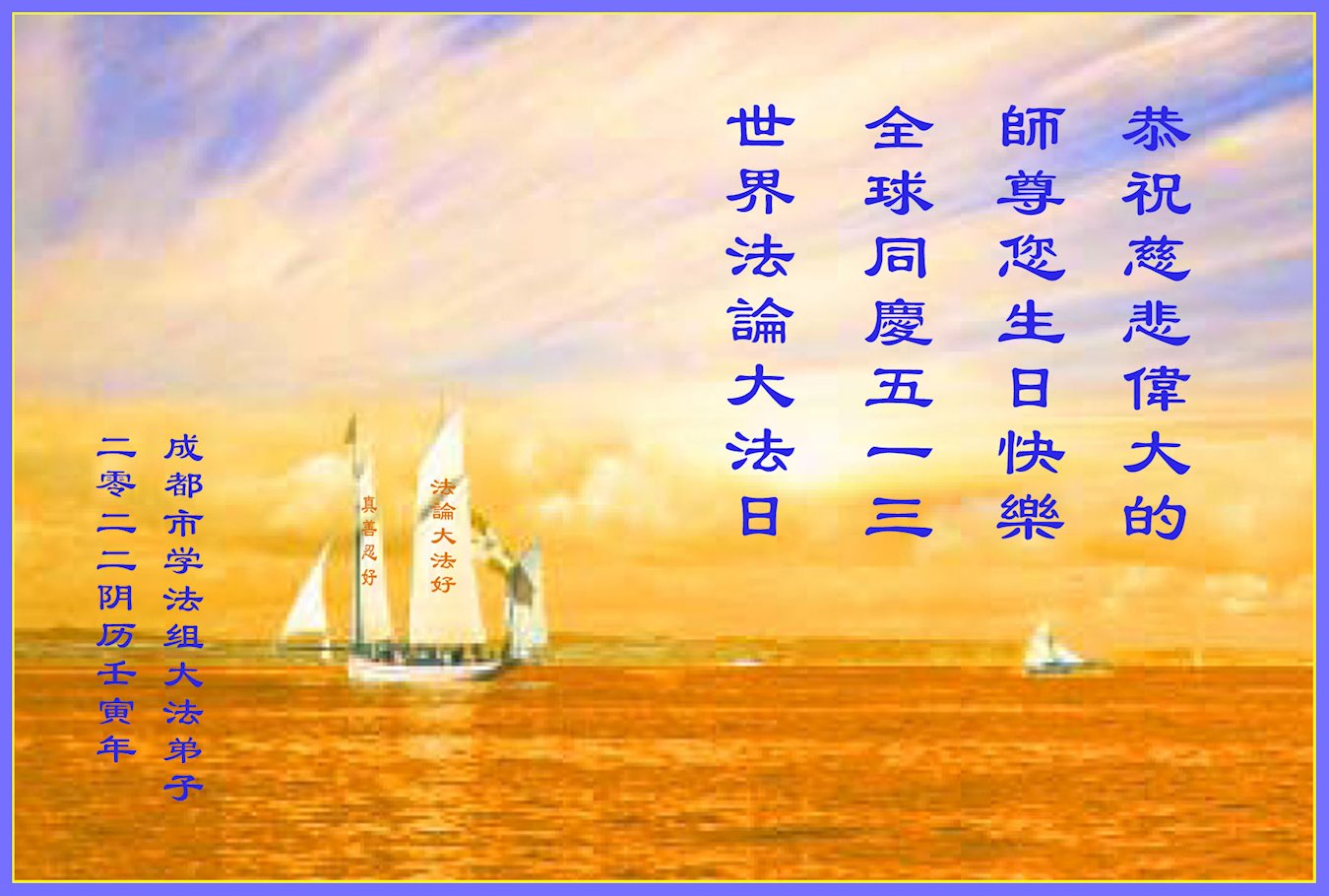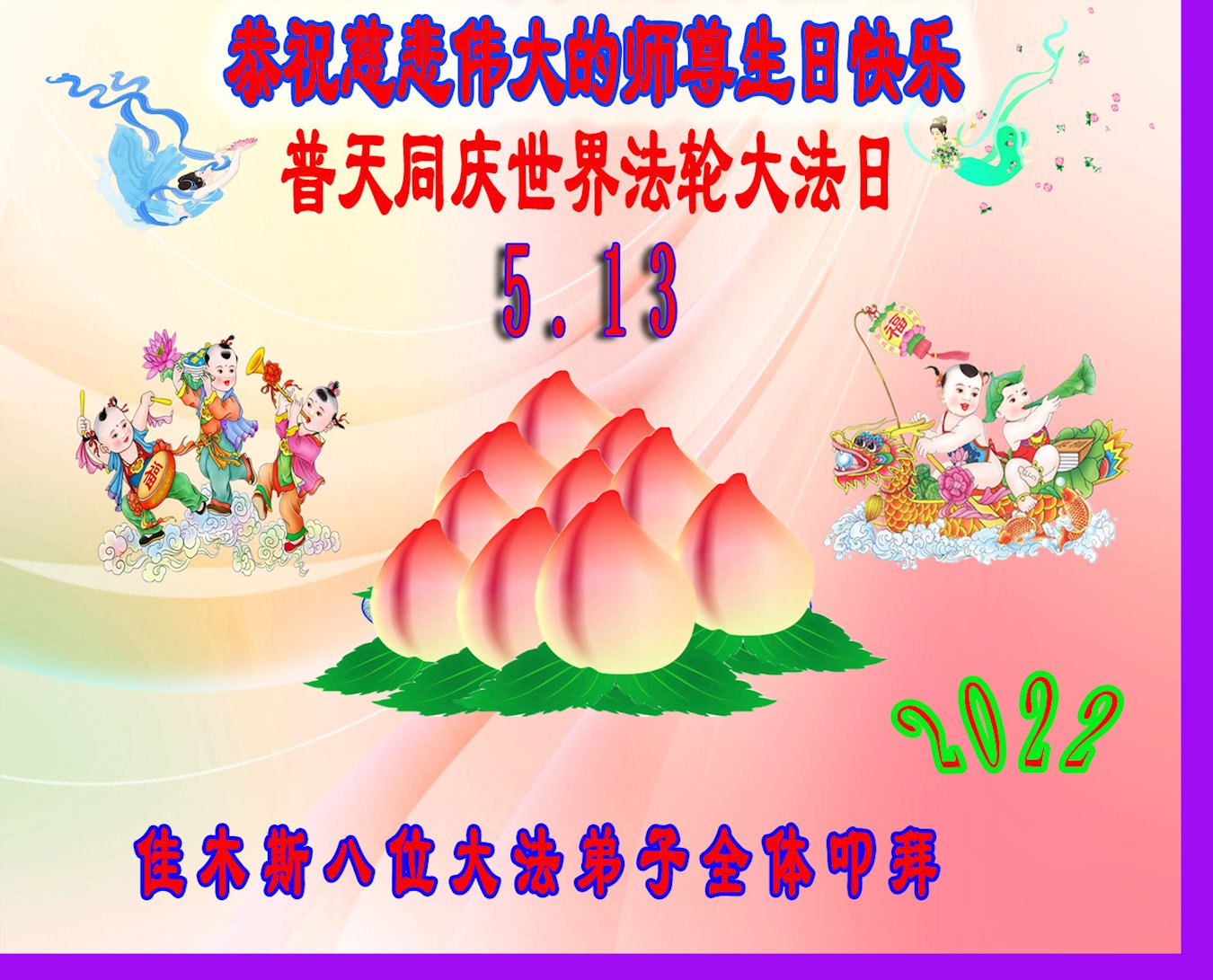 <英文版: http://en.d2s3ombhnov3zf.cloudfront.net/html/articles/2022/5/12/200518.html>长春大法弟子恭贺世界法轮大法日暨师尊华诞(22条)