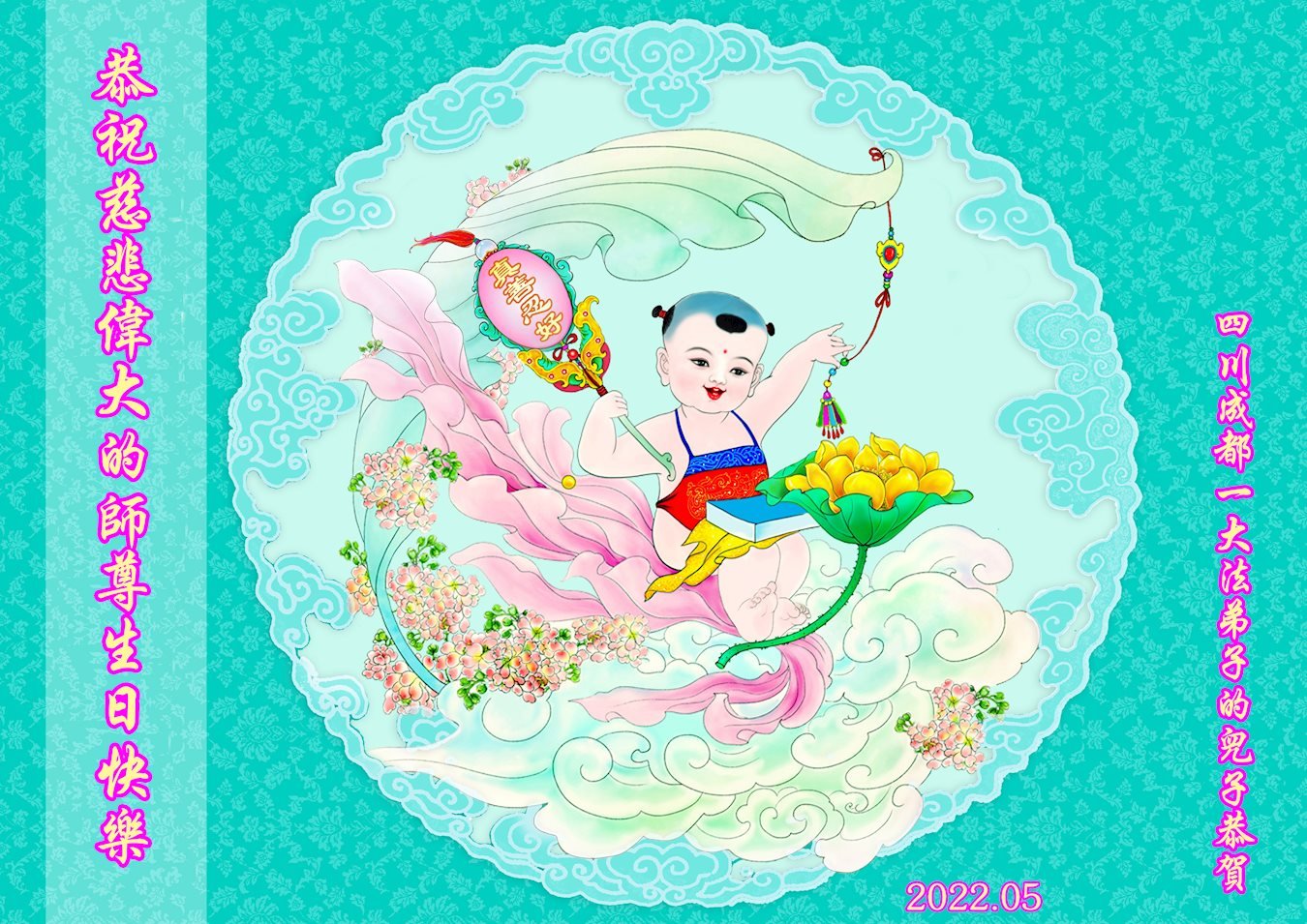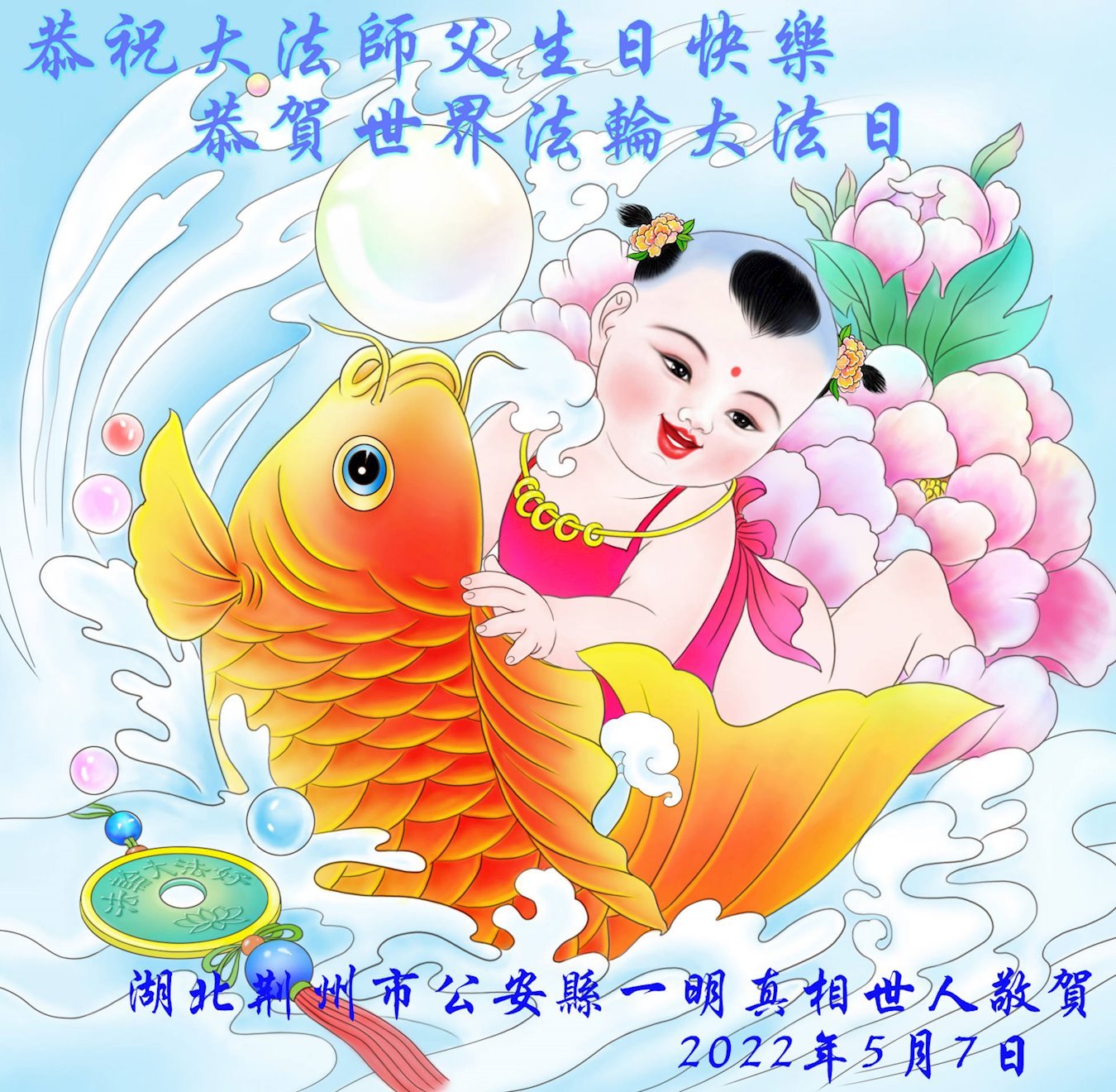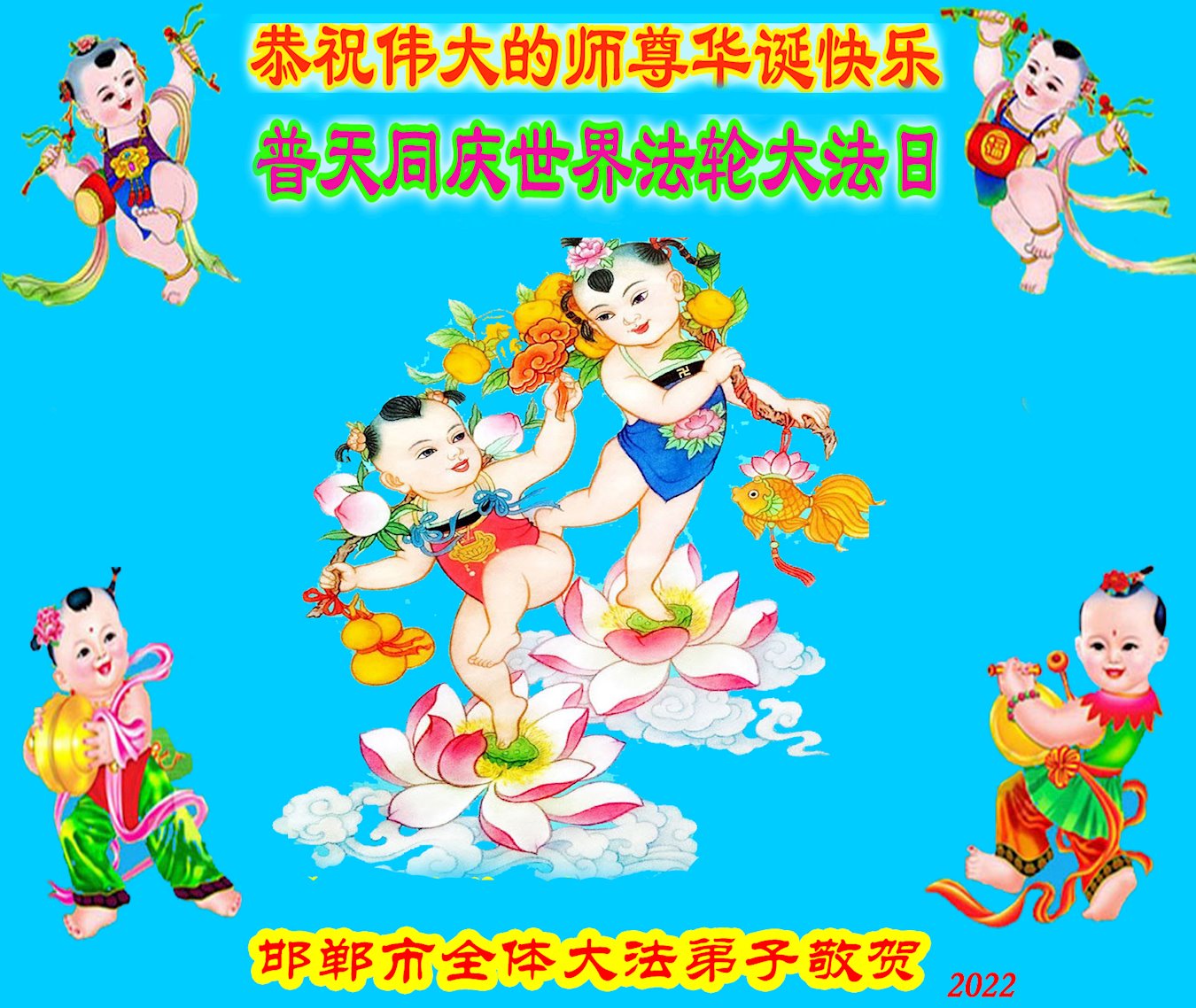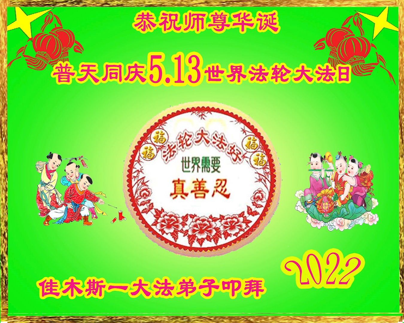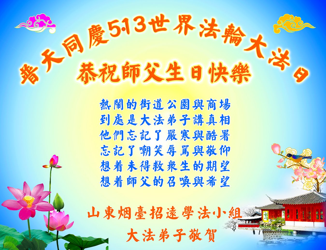 <英文版: http://en.d2s3ombhnov3zf.cloudfront.net/html/articles/2022/5/12/200518.html>长春大法弟子恭贺世界法轮大法日暨师尊华诞(22条)