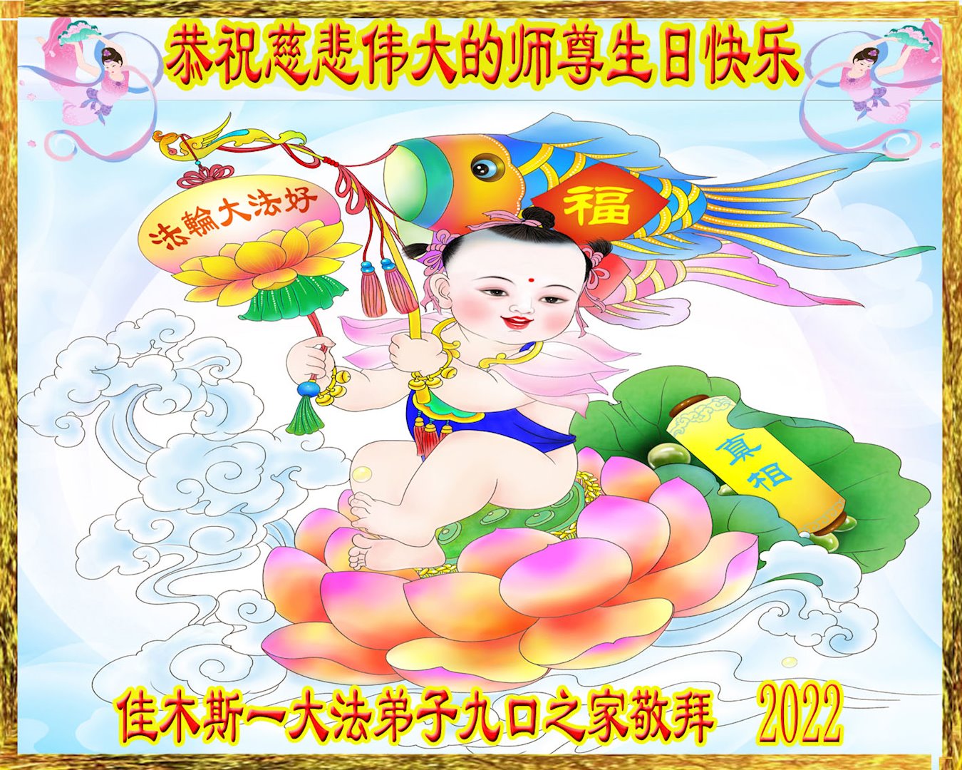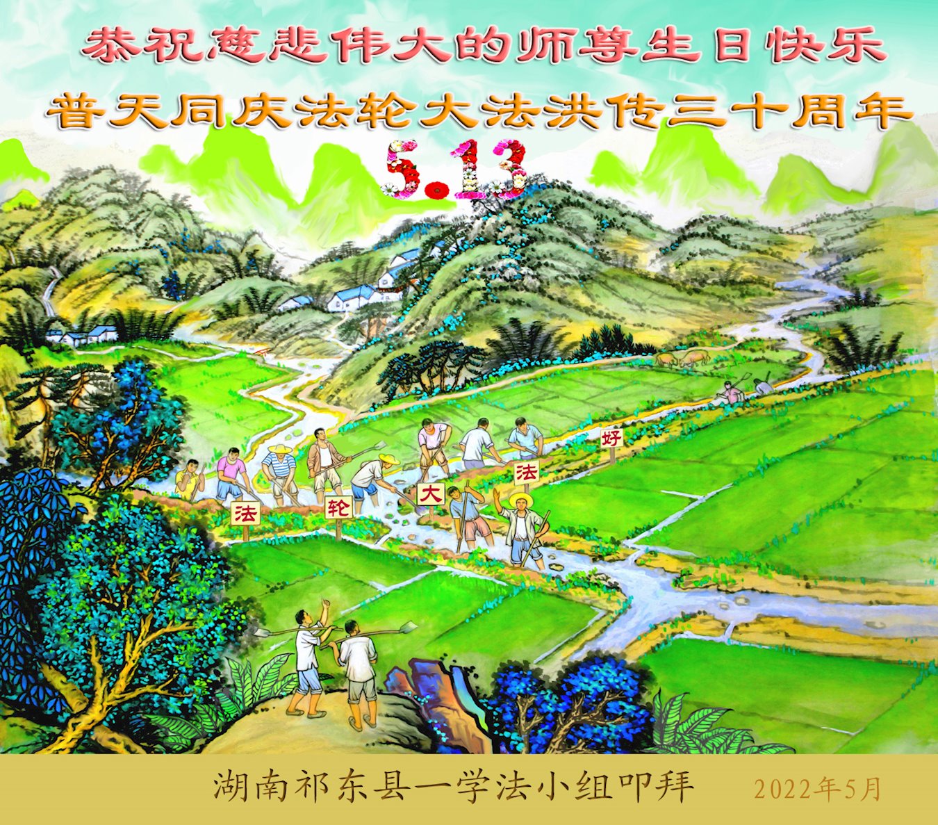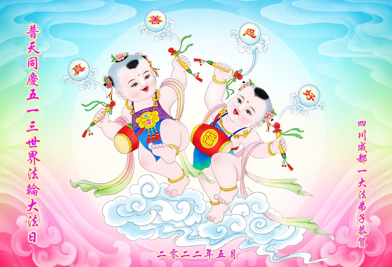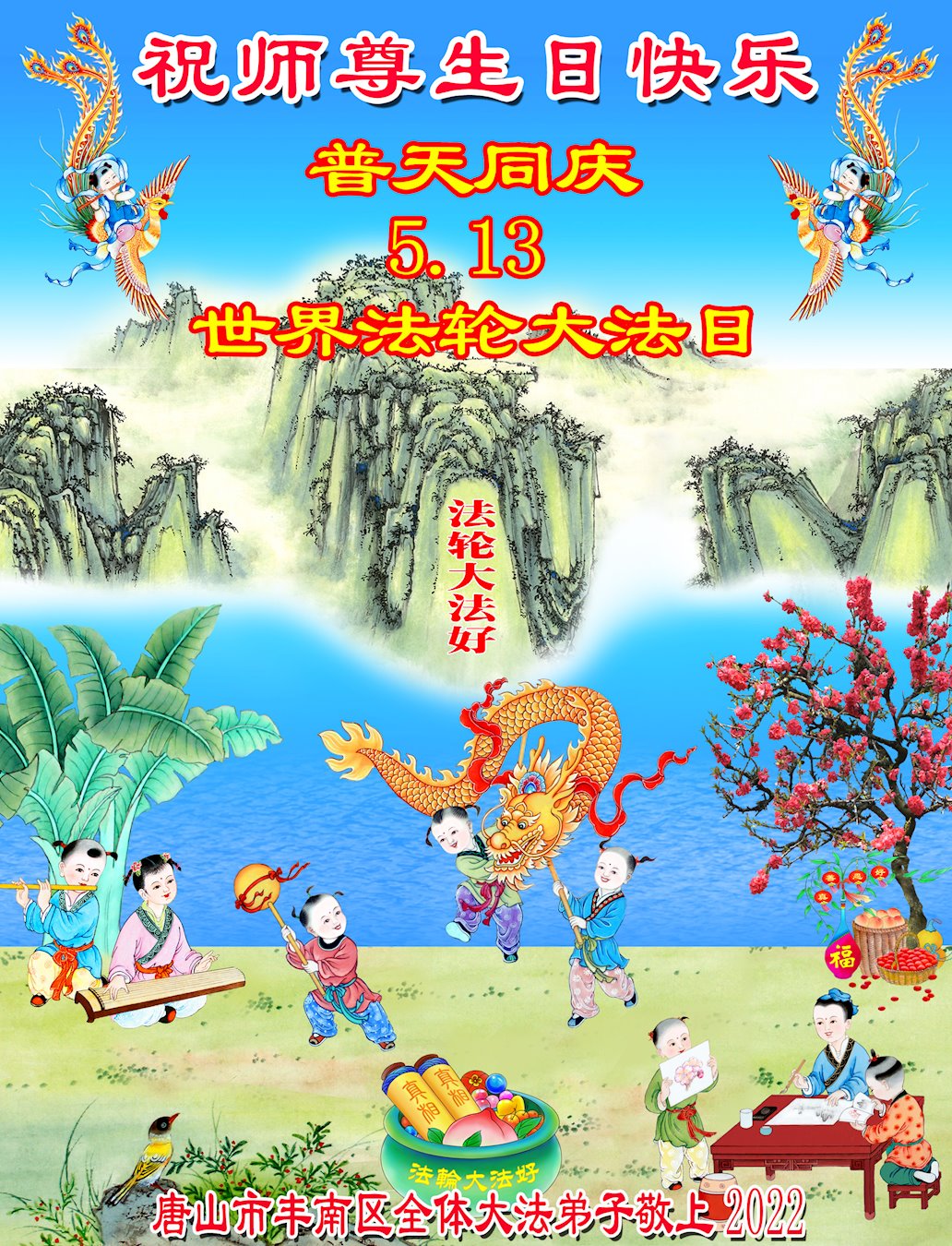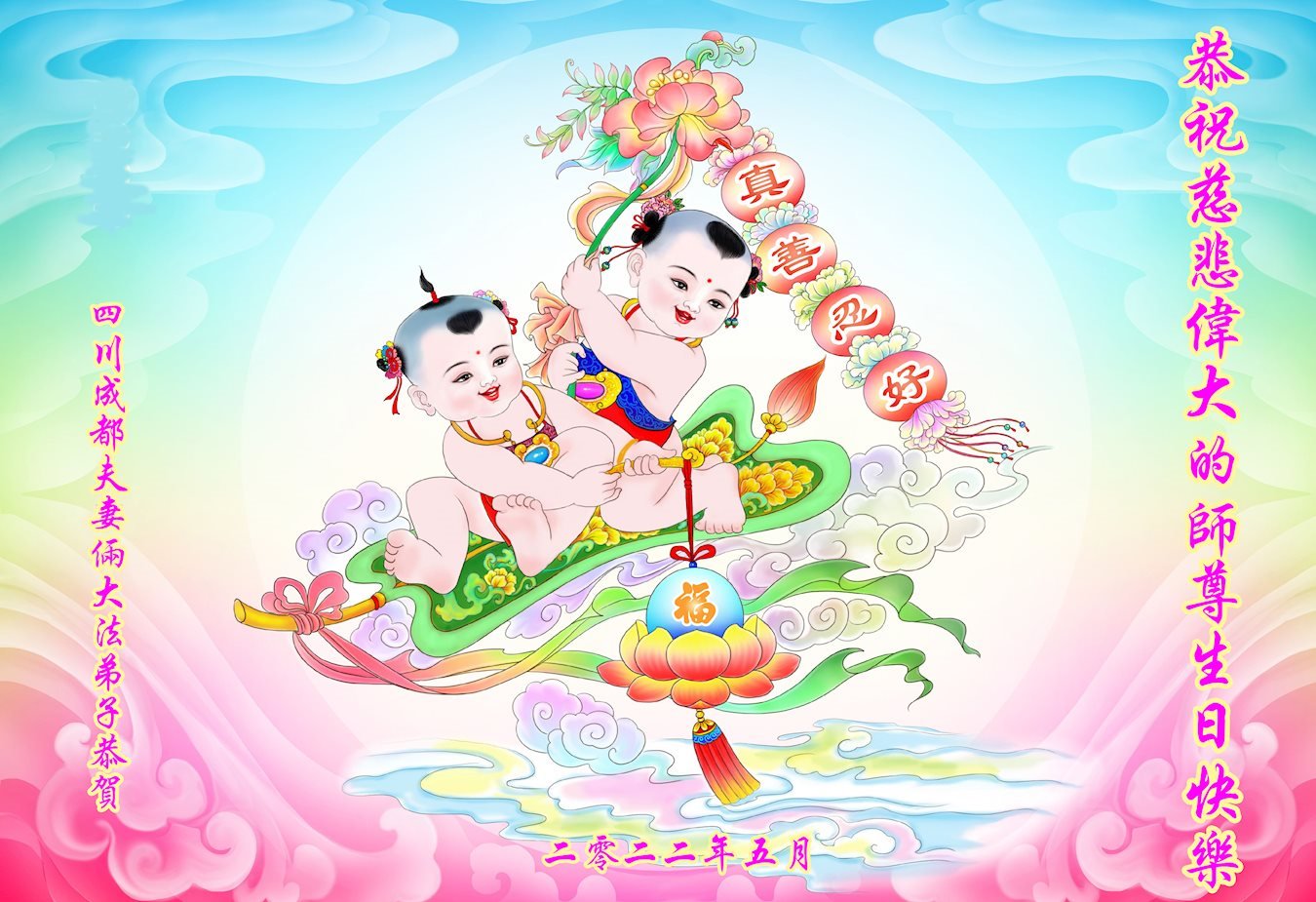 <英文版: http://en.d2s3ombhnov3zf.cloudfront.net/html/articles/2022/5/12/200518.html>长春大法弟子恭贺世界法轮大法日暨师尊华诞(22条)