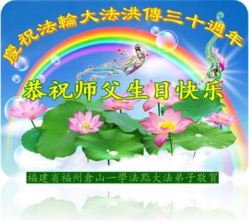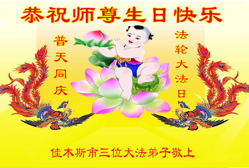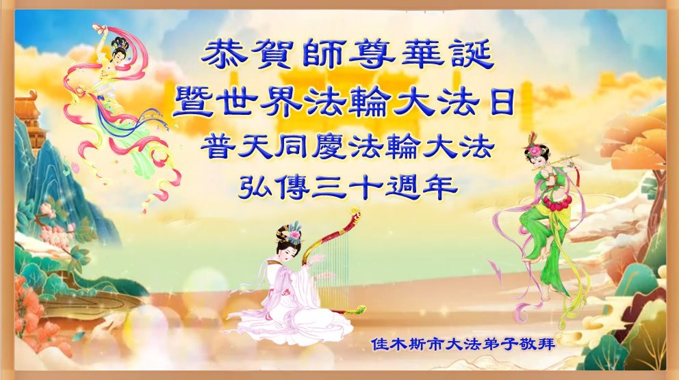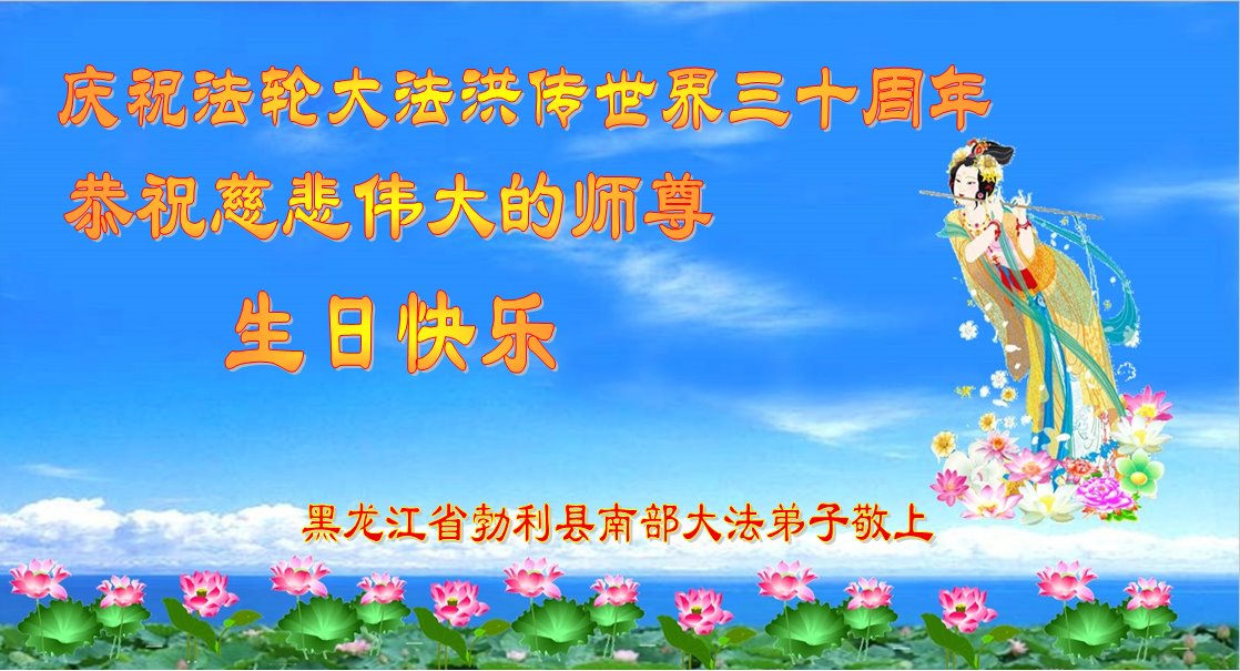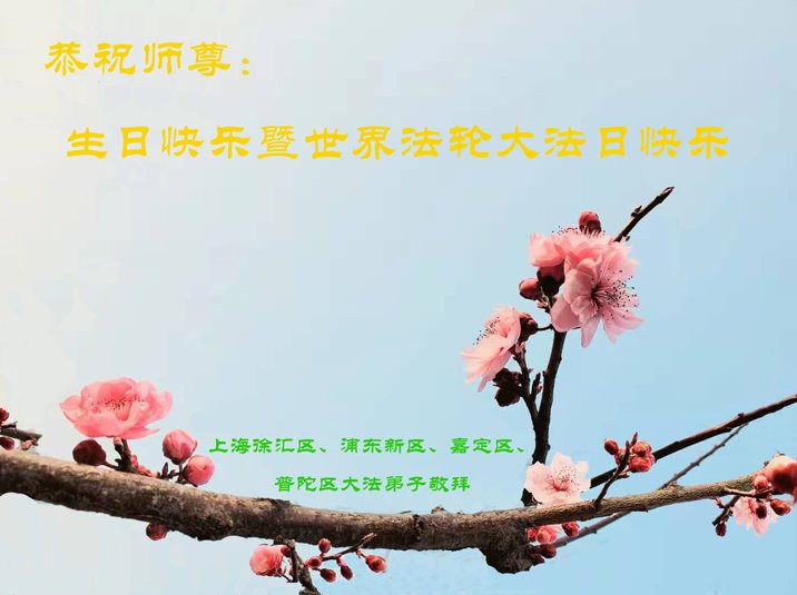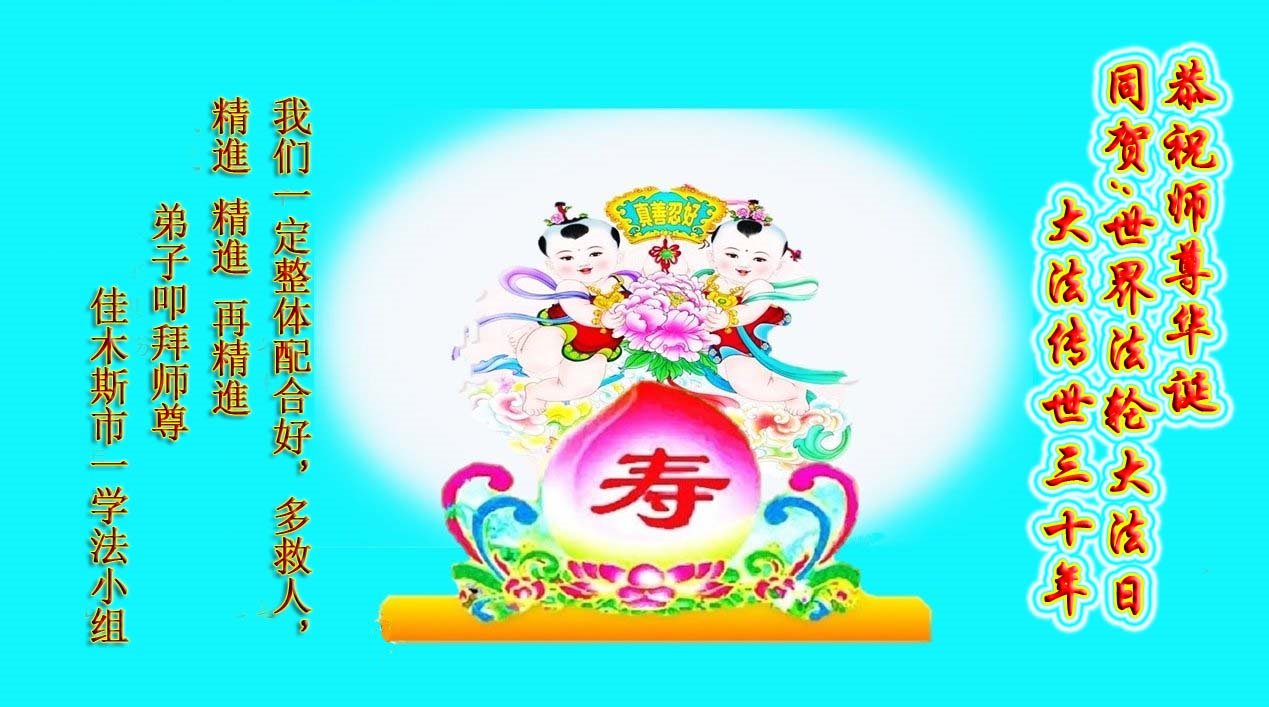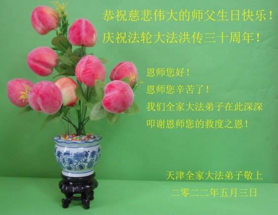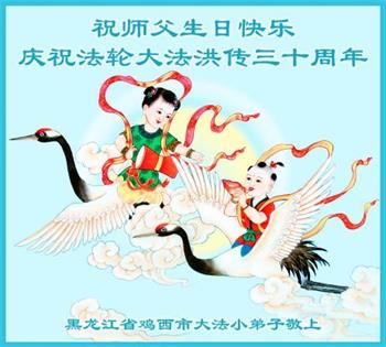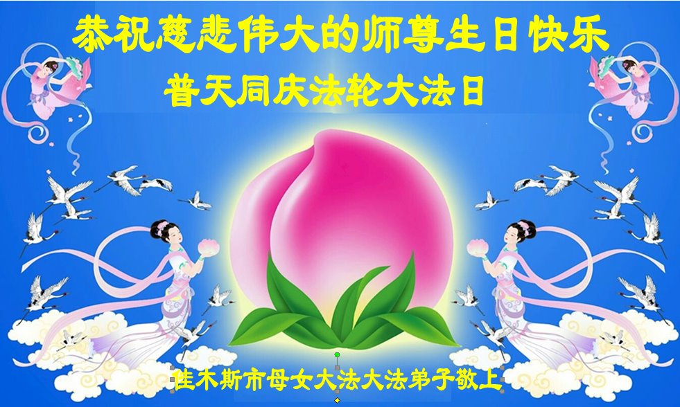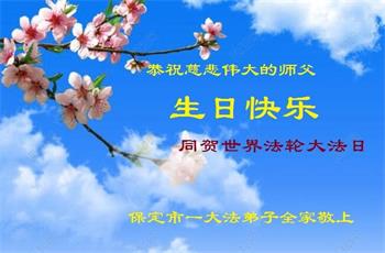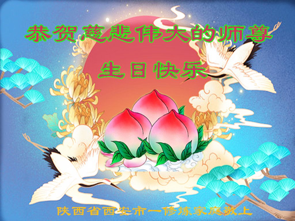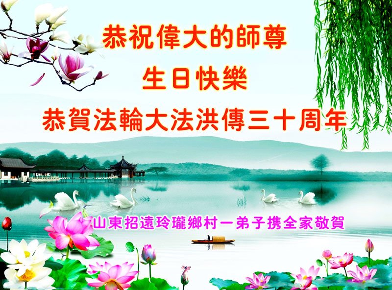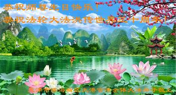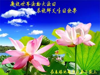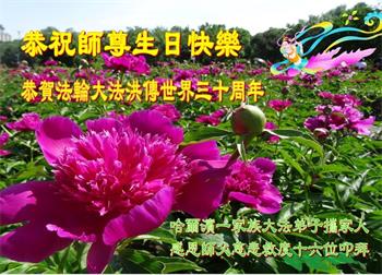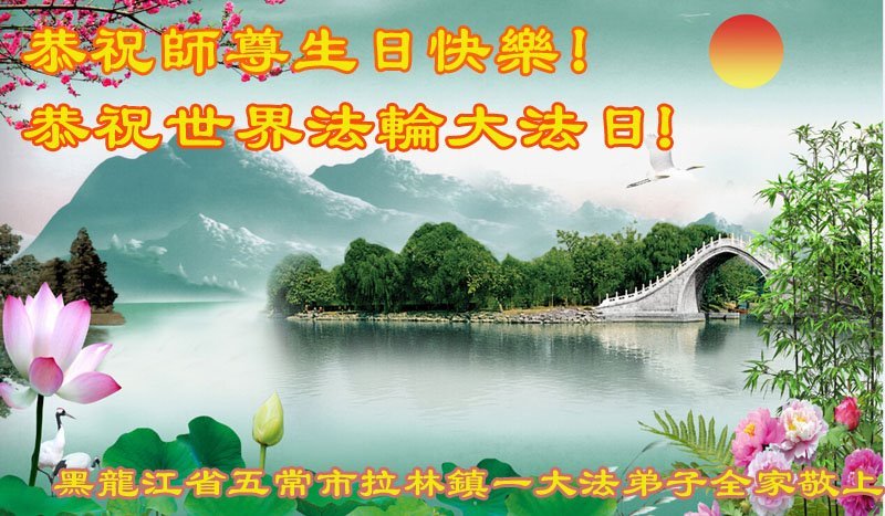 值此世界法轮大法日、法轮大法洪传三十周年、师尊华诞这普天同庆震撼寰宇最伟大而殊胜的日子里,大法弟子全家恭祝慈悲伟大的师尊生日快乐!感恩师尊慈悲救度!师尊辛苦了!弟子叩拜师尊!