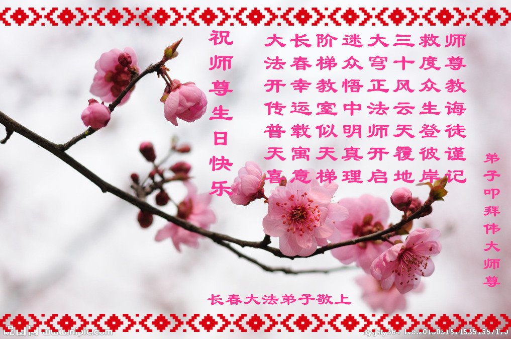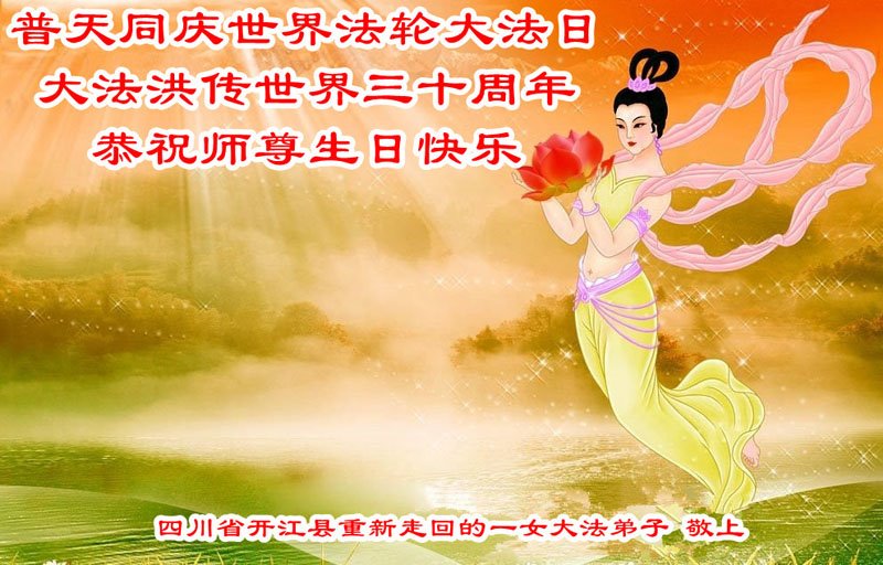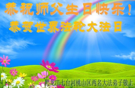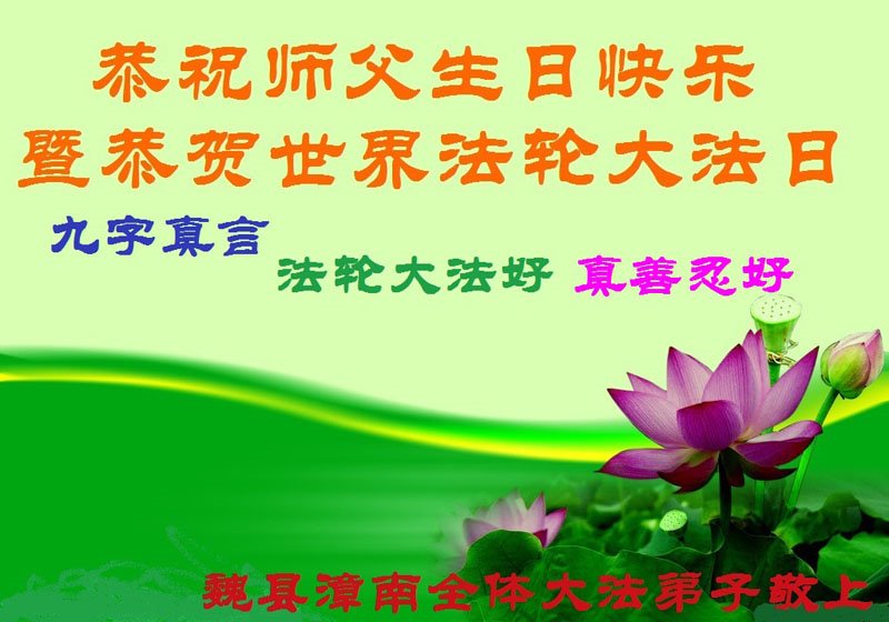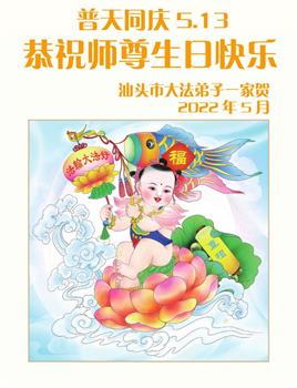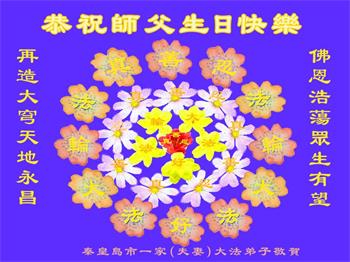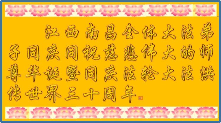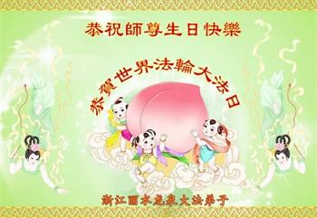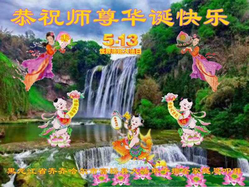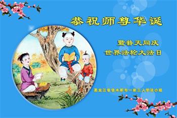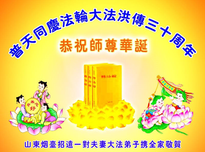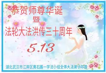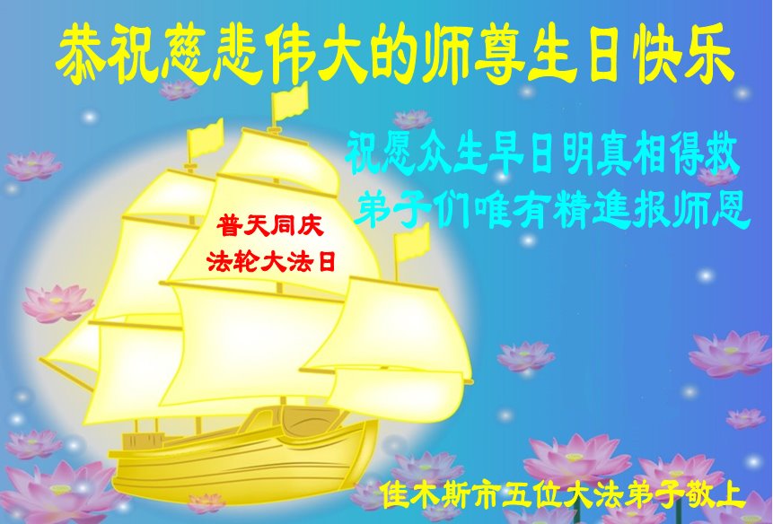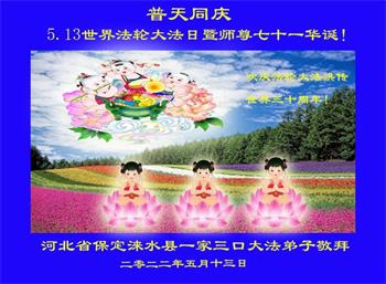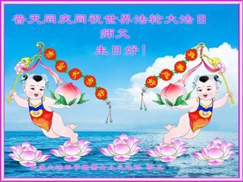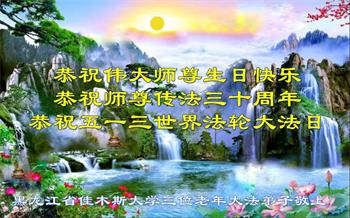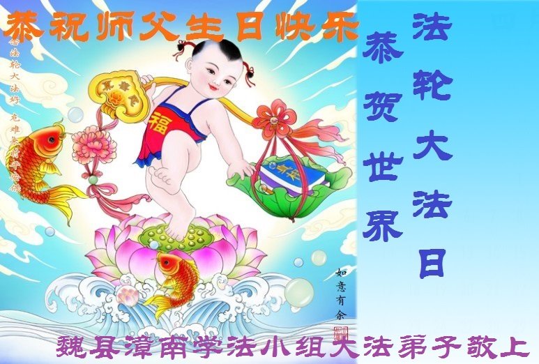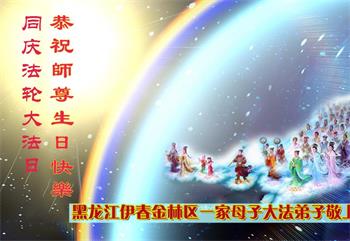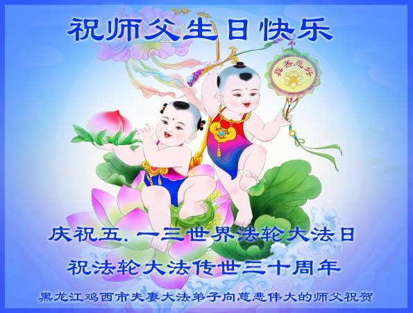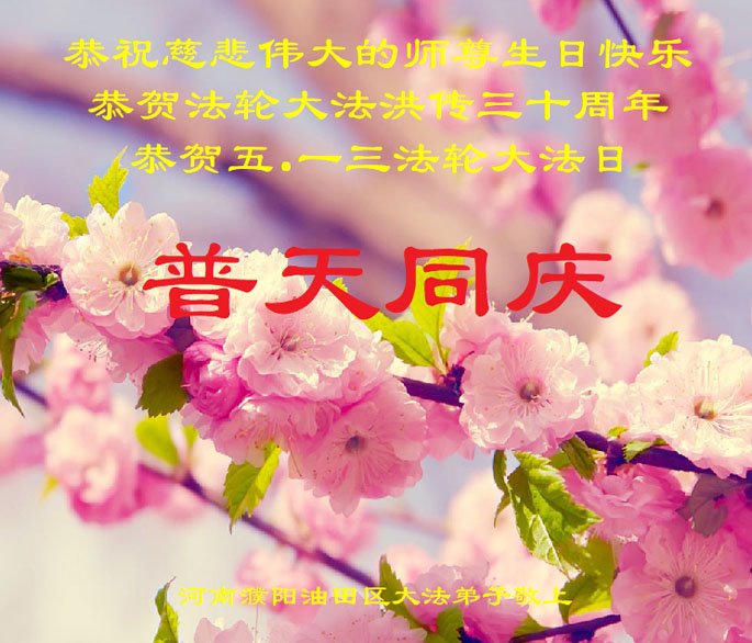 值此世界法轮大法日、法轮大法洪传三十周年、师尊华诞这普天同庆震撼寰宇最伟大而殊胜的日子里,大法弟子全家恭祝慈悲伟大的师尊生日快乐!感恩师尊慈悲救度!师尊辛苦了!弟子叩拜师尊!