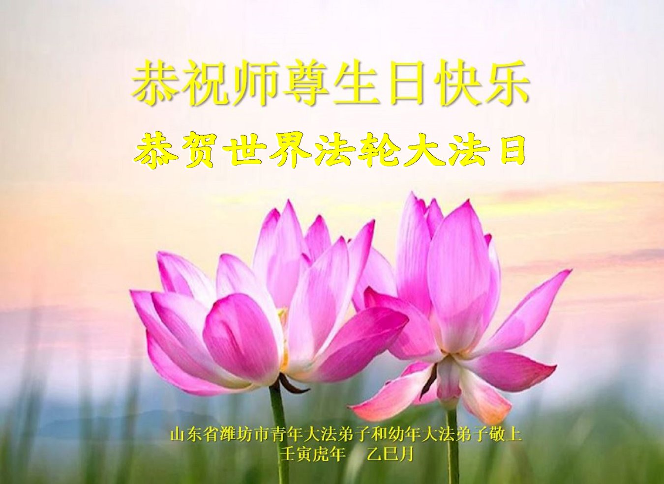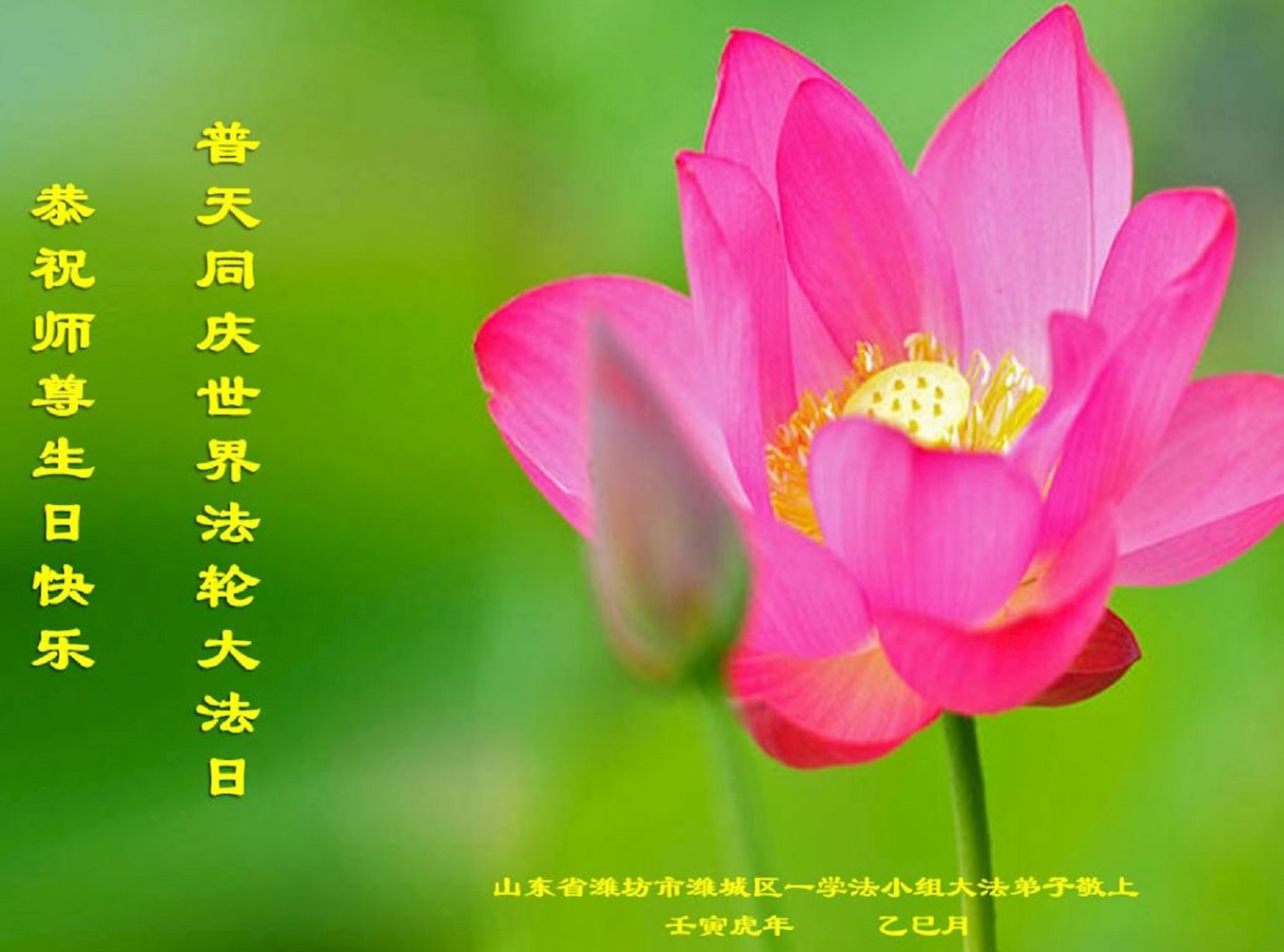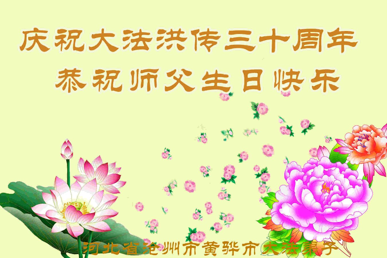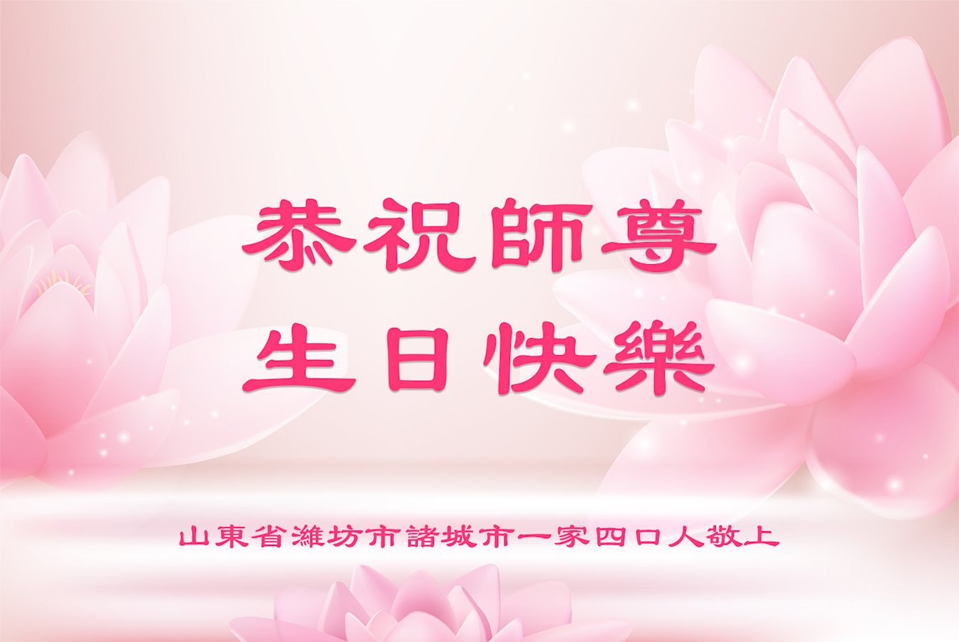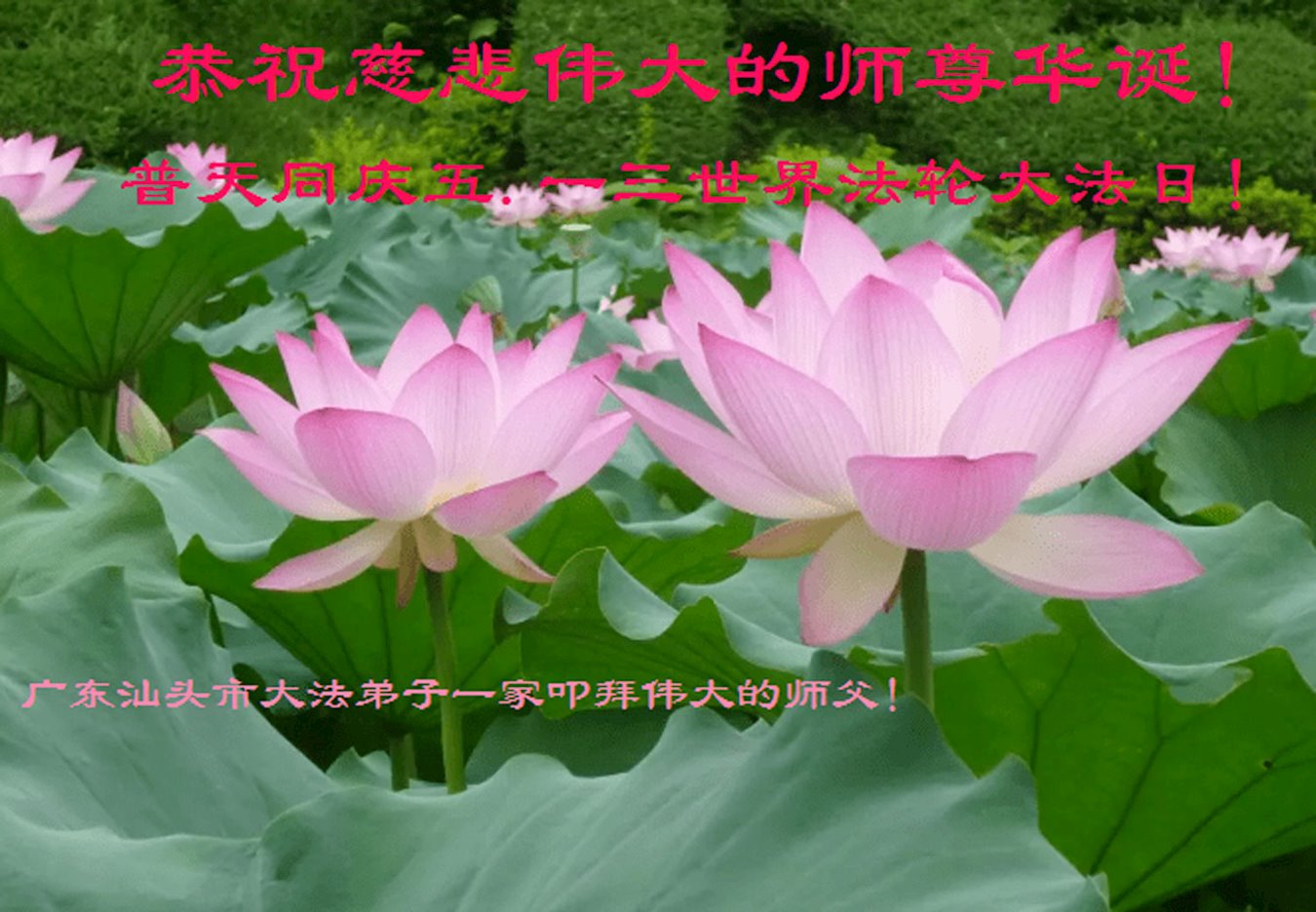 值此世界法轮大法日、法轮大法洪传三十周年、师尊华诞这普天同庆震撼寰宇最伟大而殊胜的日子里,大法弟子全家恭祝慈悲伟大的师尊生日快乐!感恩师尊慈悲救度!师尊辛苦了!弟子叩拜师尊!