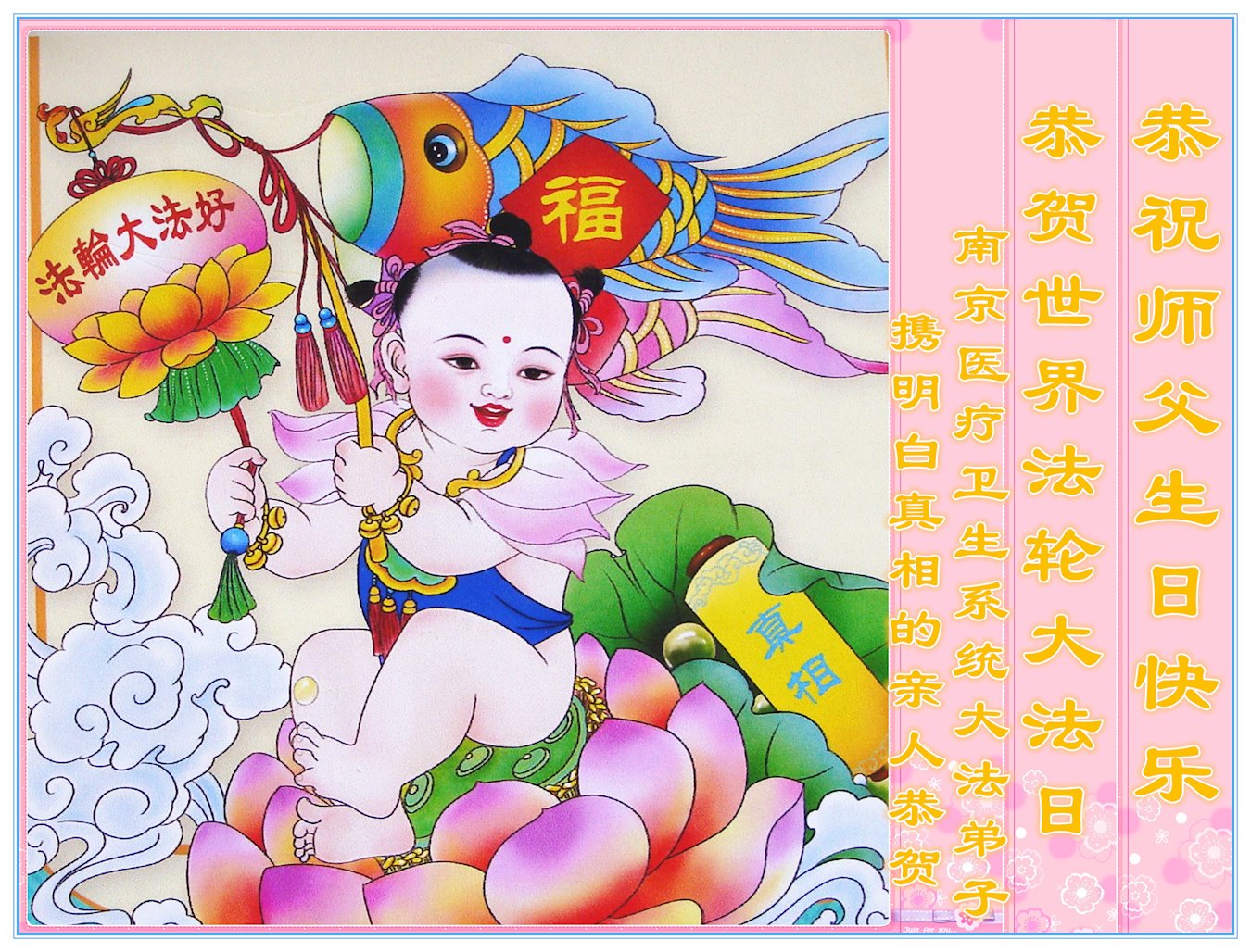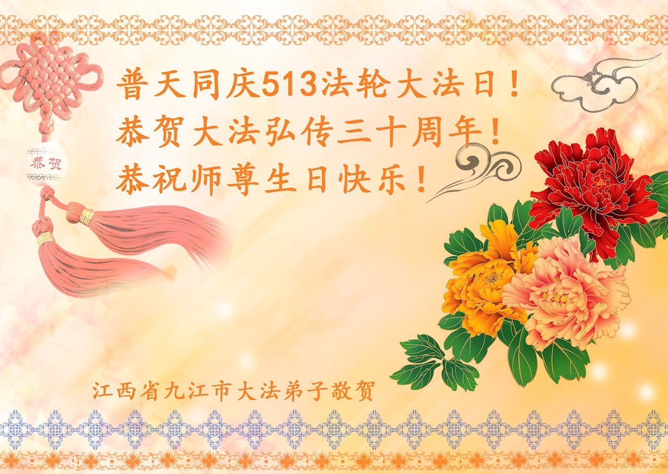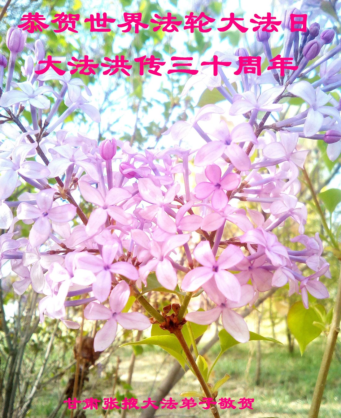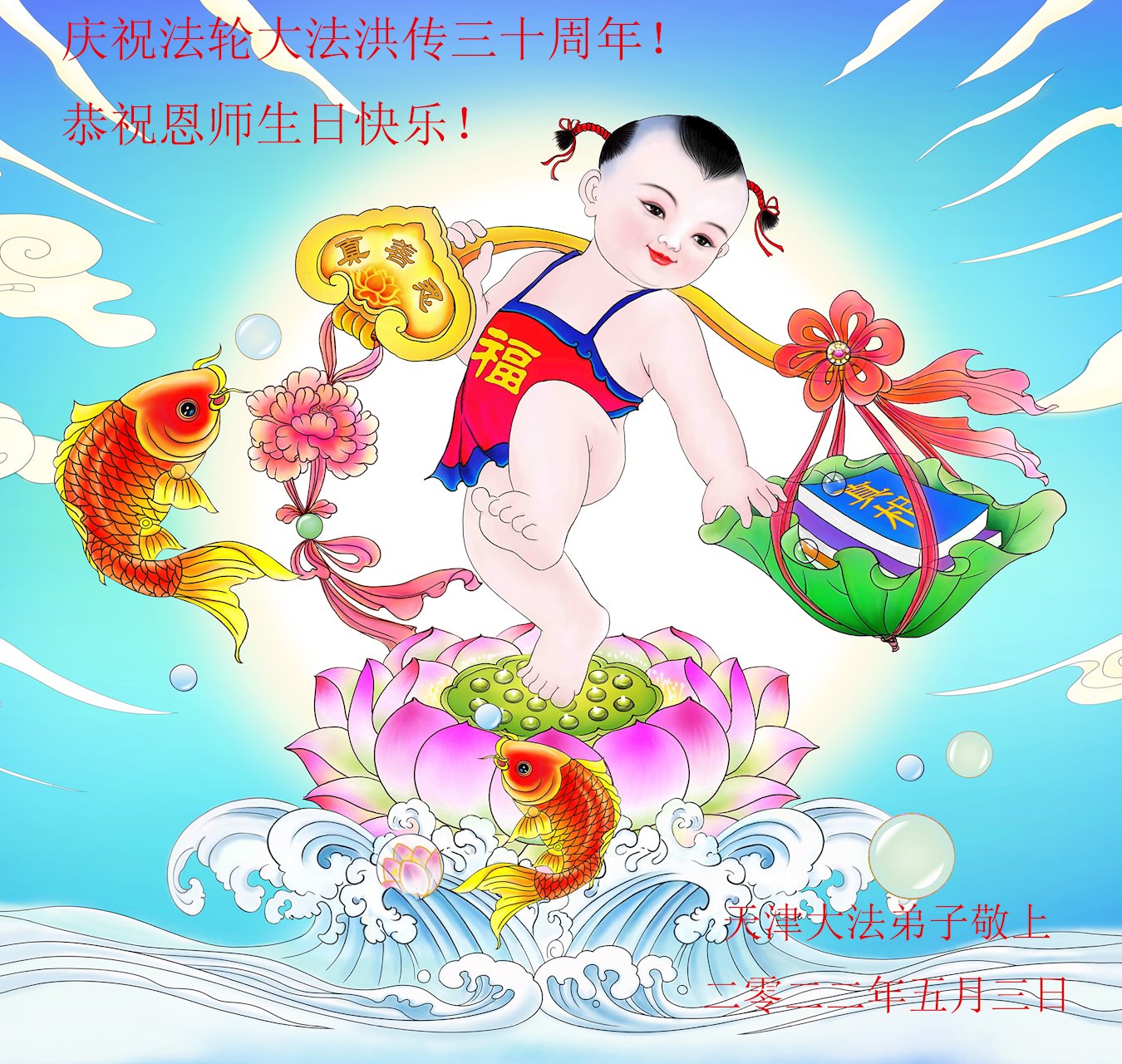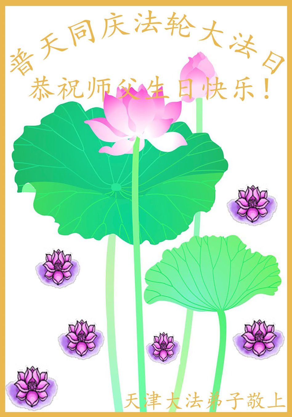 值此世界法轮大法日、法轮大法洪传三十周年、师尊华诞这普天同庆震撼寰宇最伟大而殊胜的日子里,大法弟子全家恭祝慈悲伟大的师尊生日快乐!感恩师尊慈悲救度!师尊辛苦了!弟子叩拜师尊!