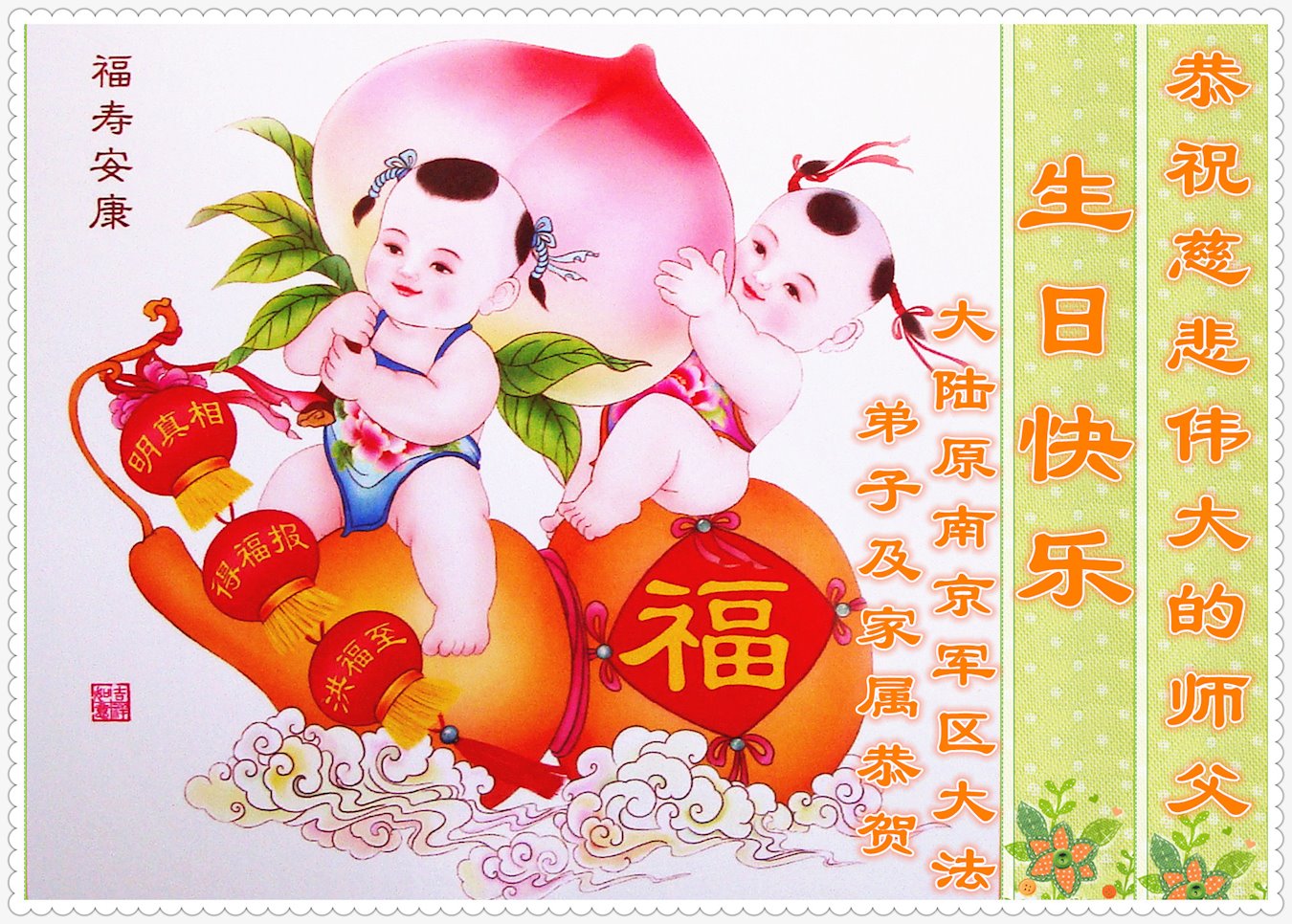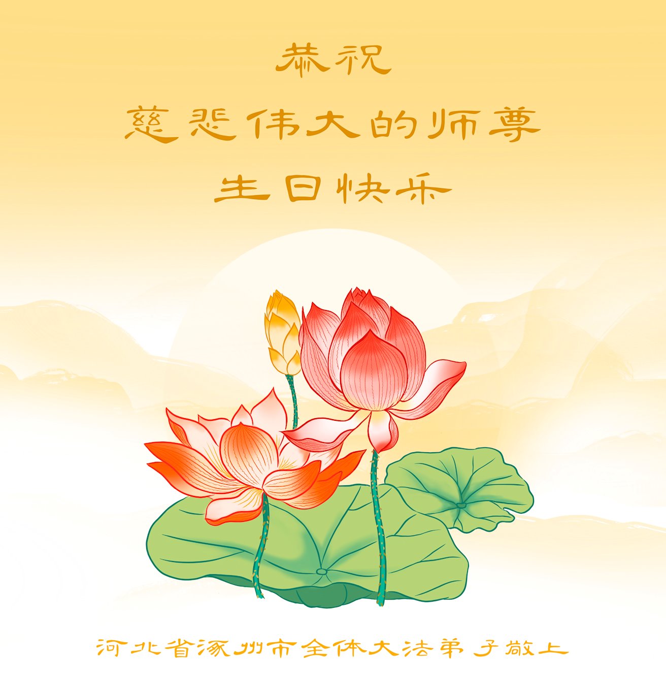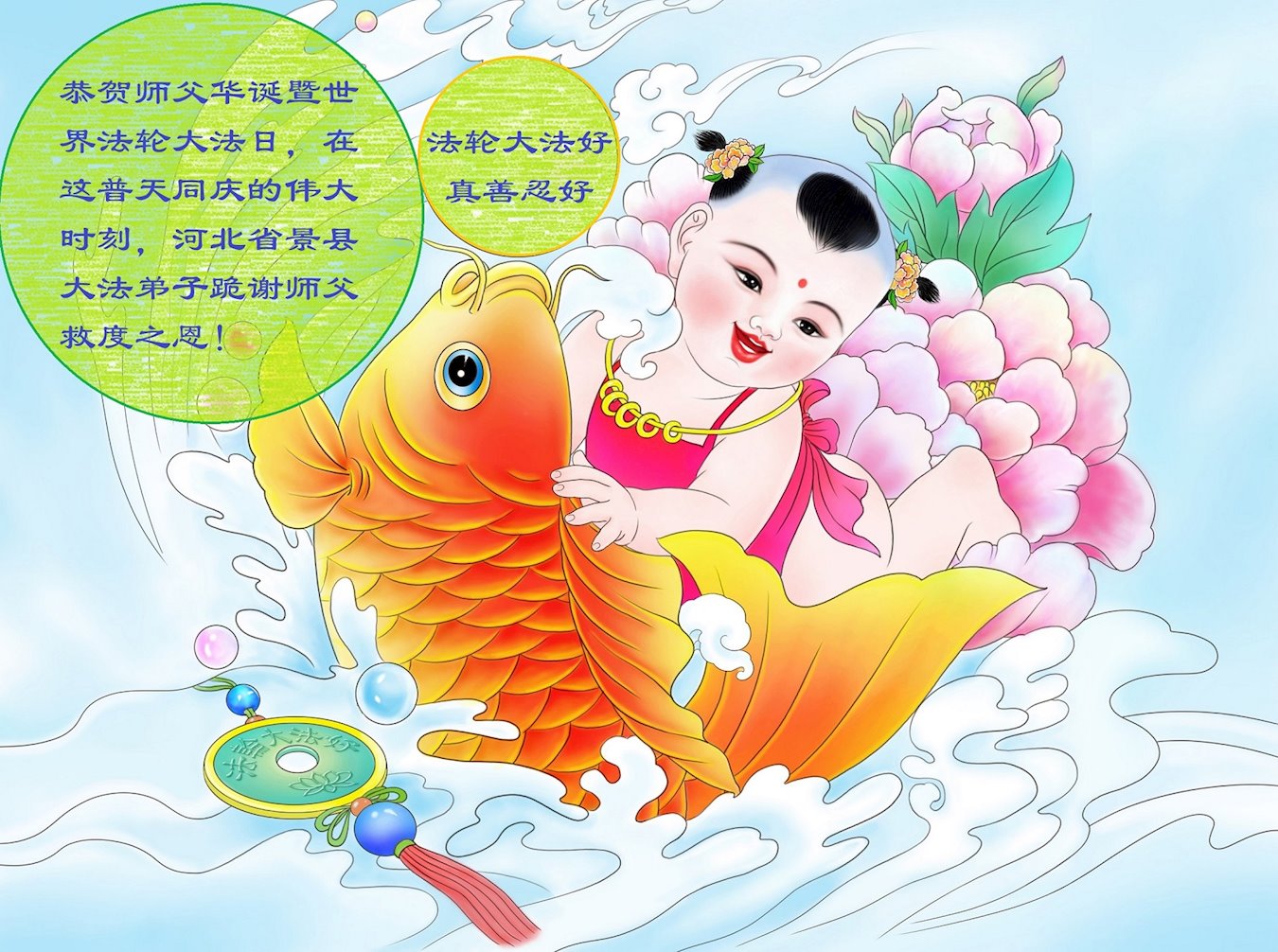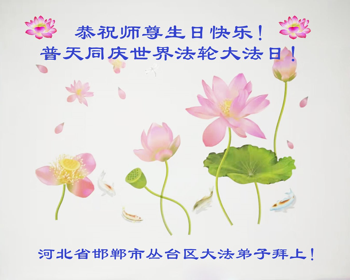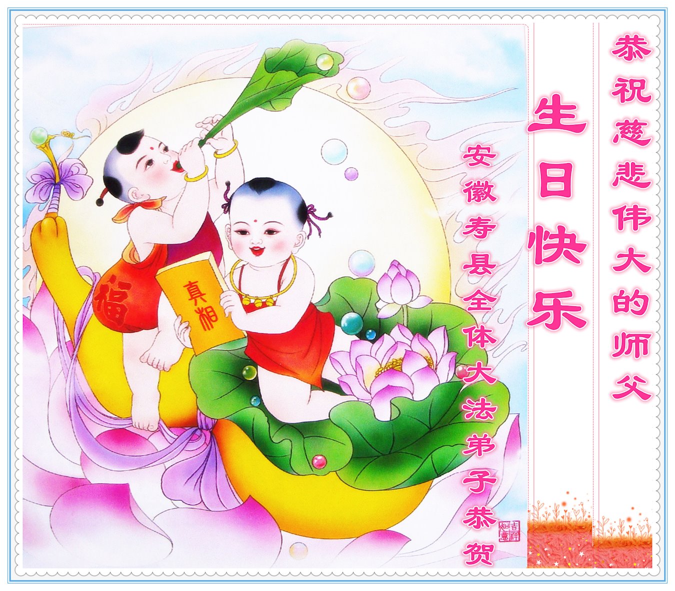 值此世界法轮大法日、法轮大法洪传三十周年、师尊华诞这普天同庆震撼寰宇最伟大而殊胜的日子里,大法弟子全家恭祝慈悲伟大的师尊生日快乐!感恩师尊慈悲救度!师尊辛苦了!弟子叩拜师尊!