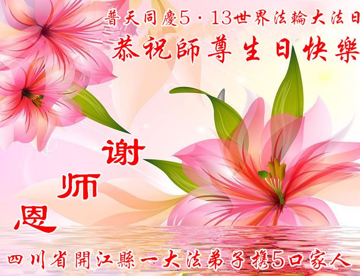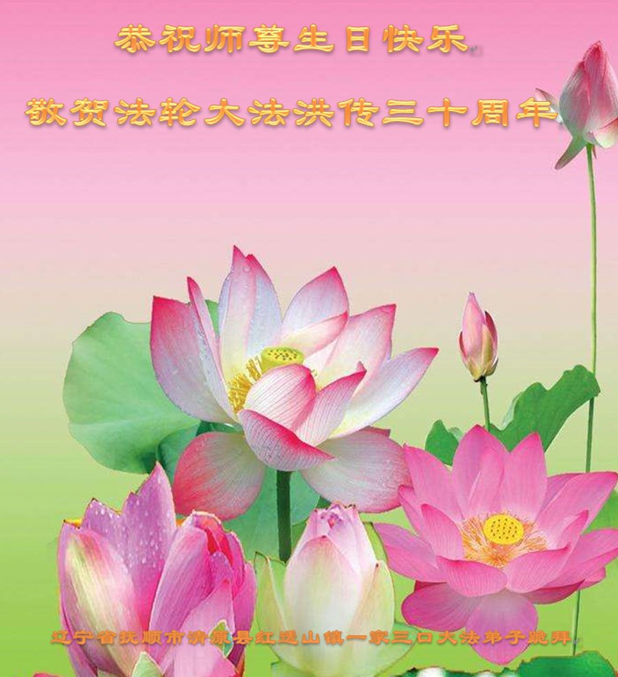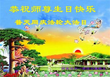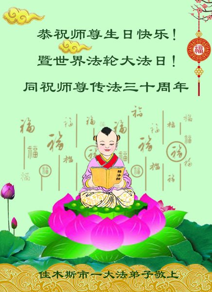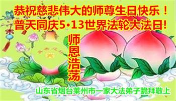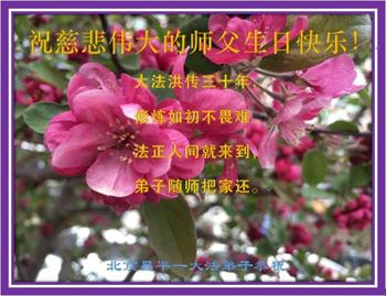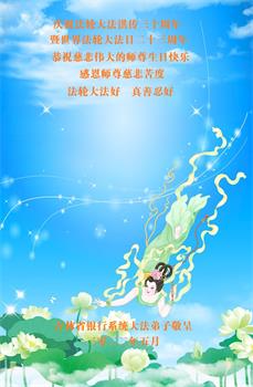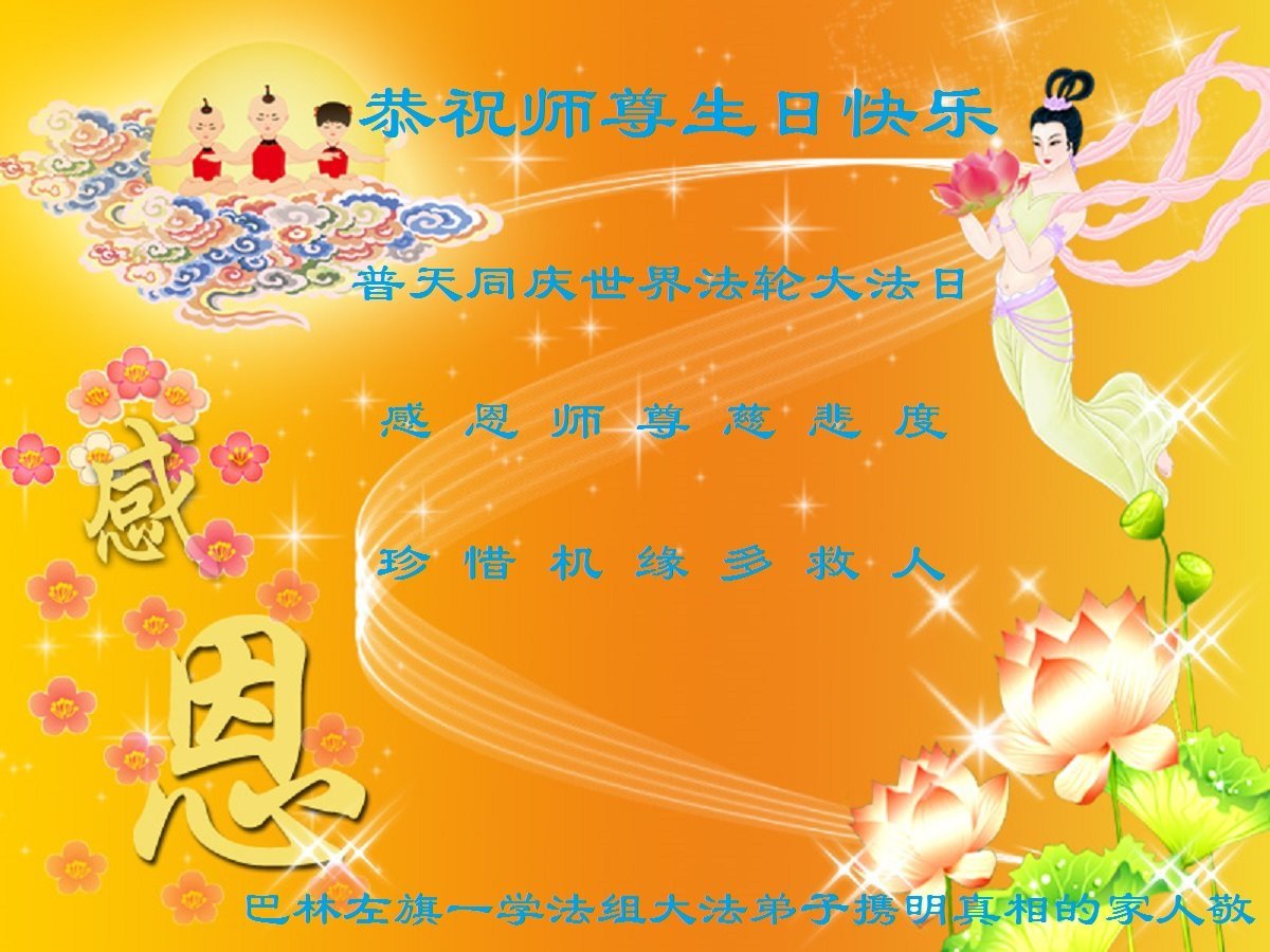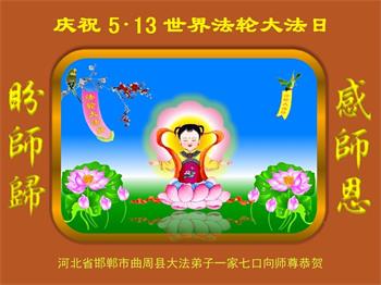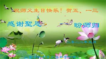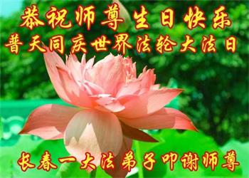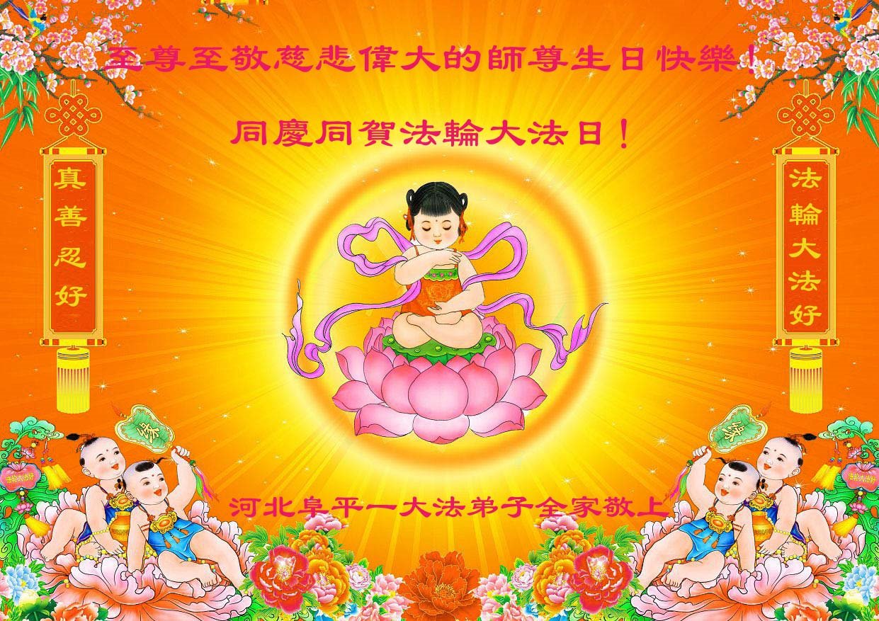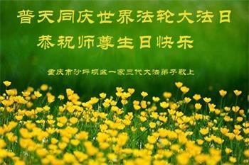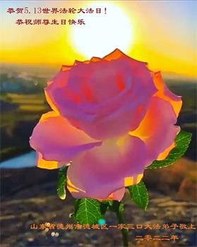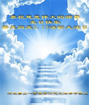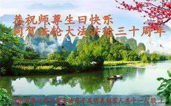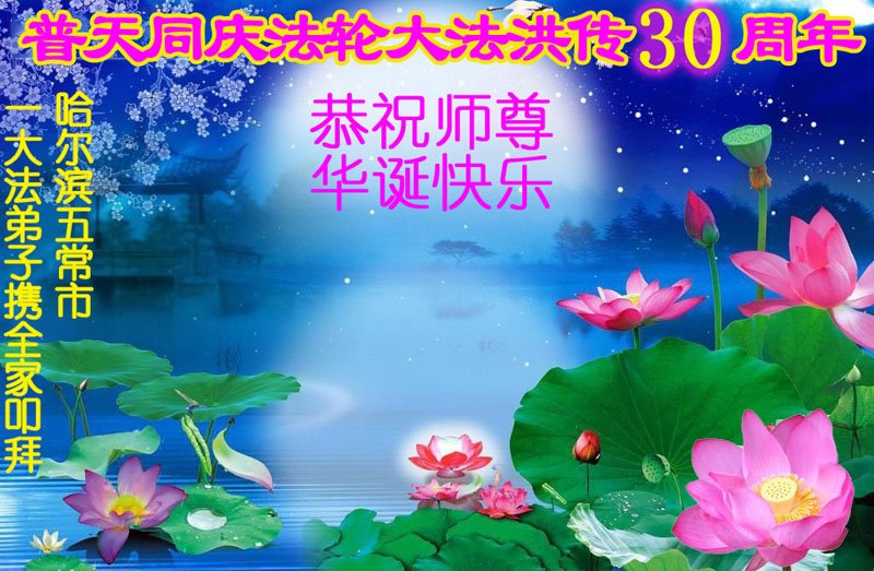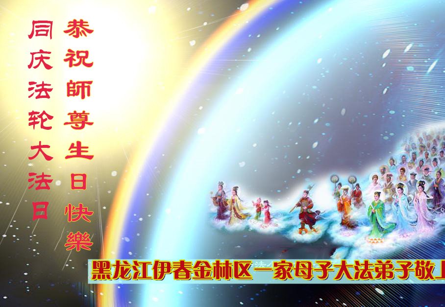 至此世界法轮大法日、法轮大法洪传三十周年、师尊华诞这普天同庆震撼寰宇最伟大而殊胜的日子里,大法弟子全家恭祝慈悲伟大的师尊生日快乐!感恩师尊慈悲救度!师尊辛苦了!弟子全家叩拜师尊!