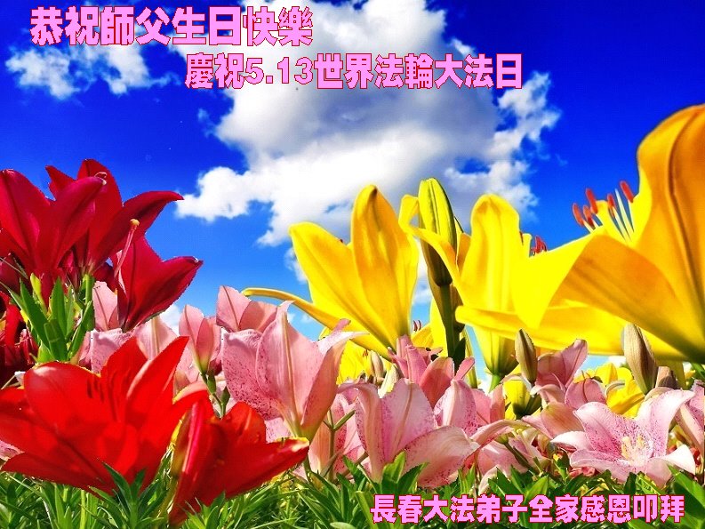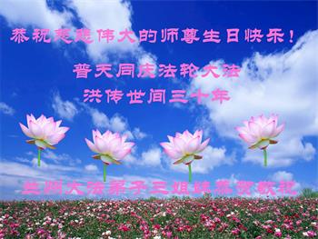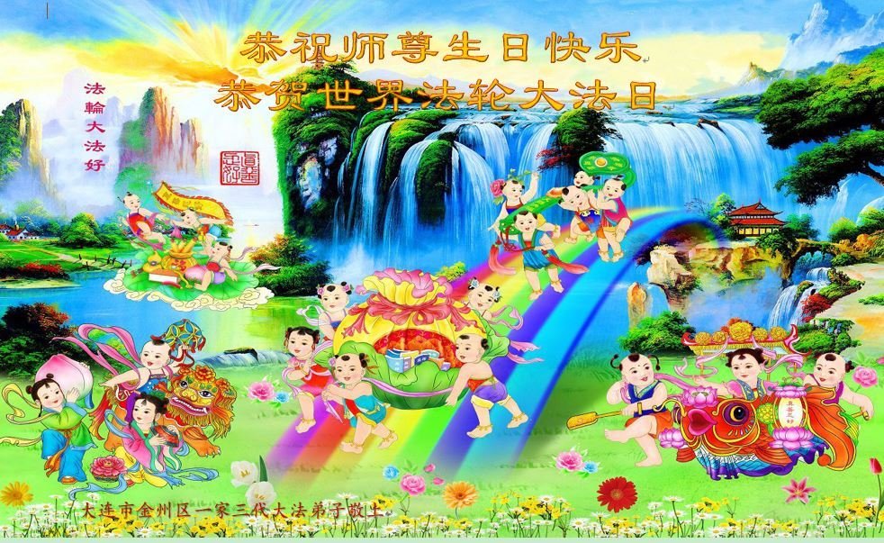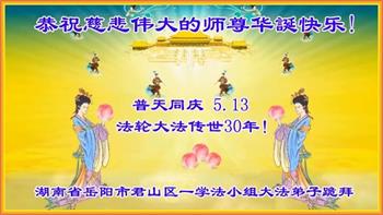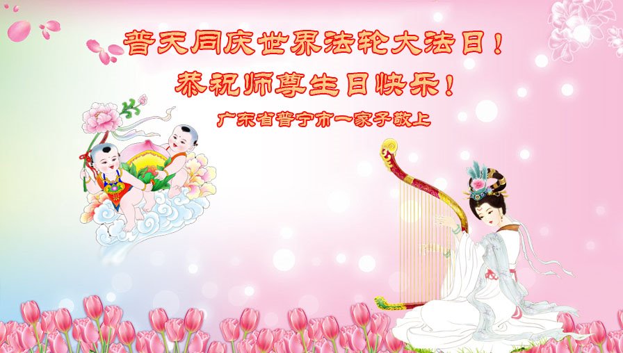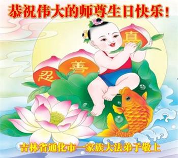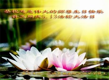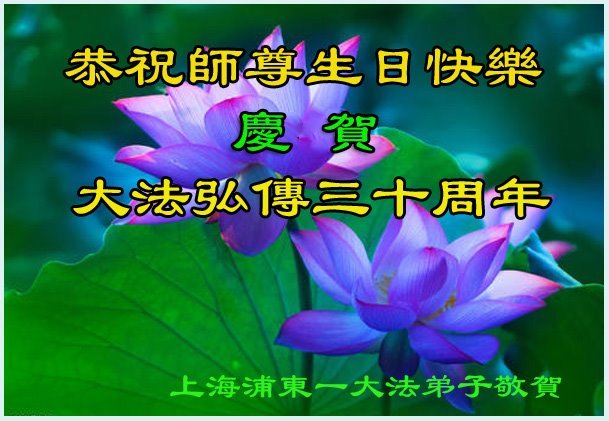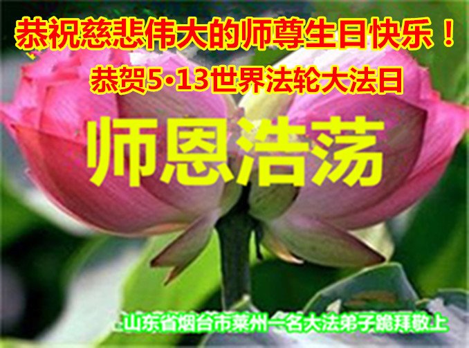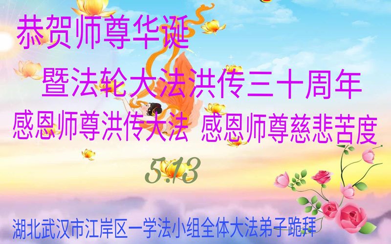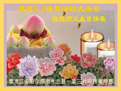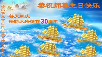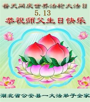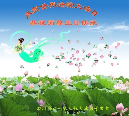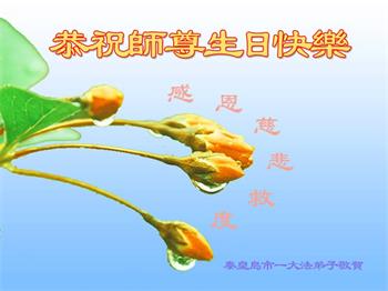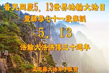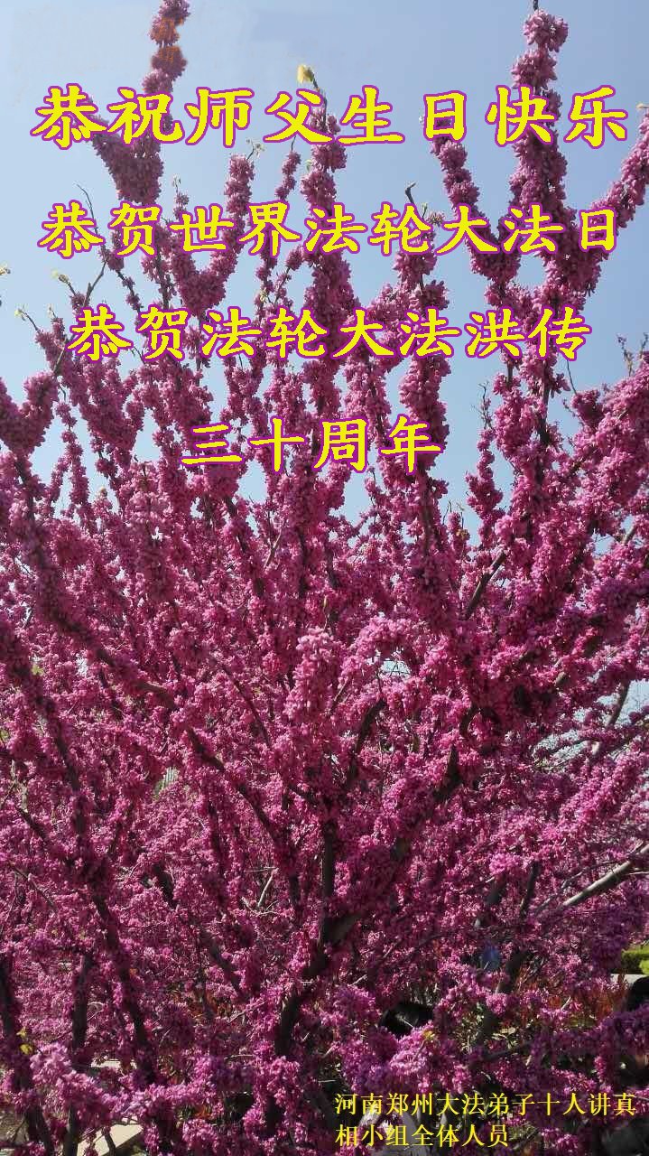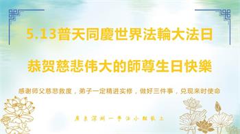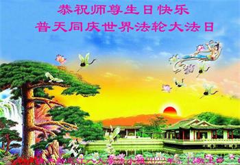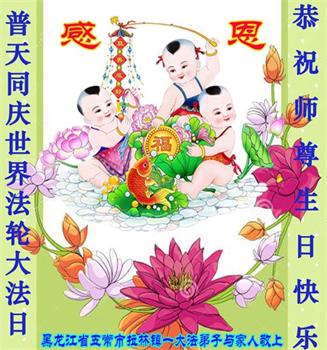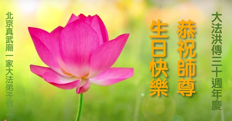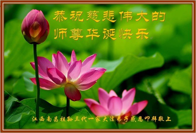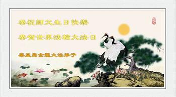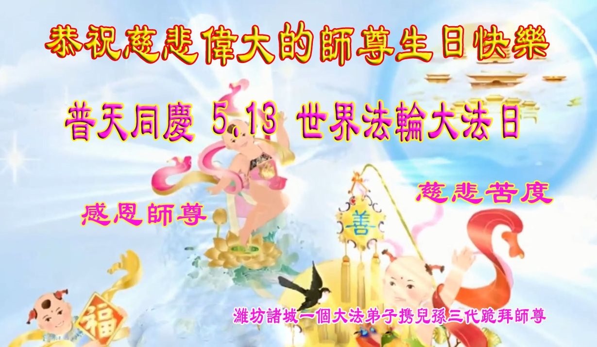 至此世界法轮大法日、法轮大法洪传三十周年、师尊华诞这普天同庆震撼寰宇最伟大而殊胜的日子里,大法弟子全家恭祝慈悲伟大的师尊生日快乐!感恩师尊慈悲救度!师尊辛苦了!弟子全家叩拜师尊!