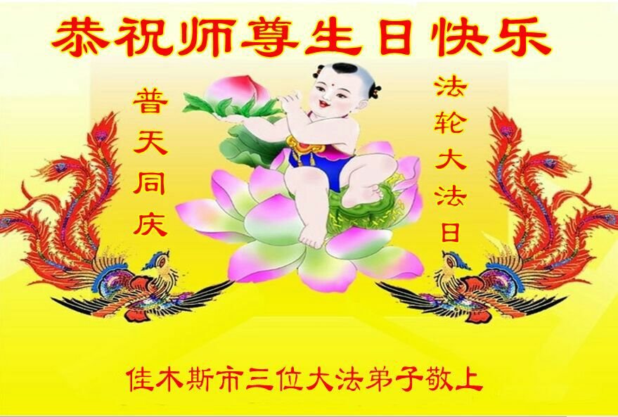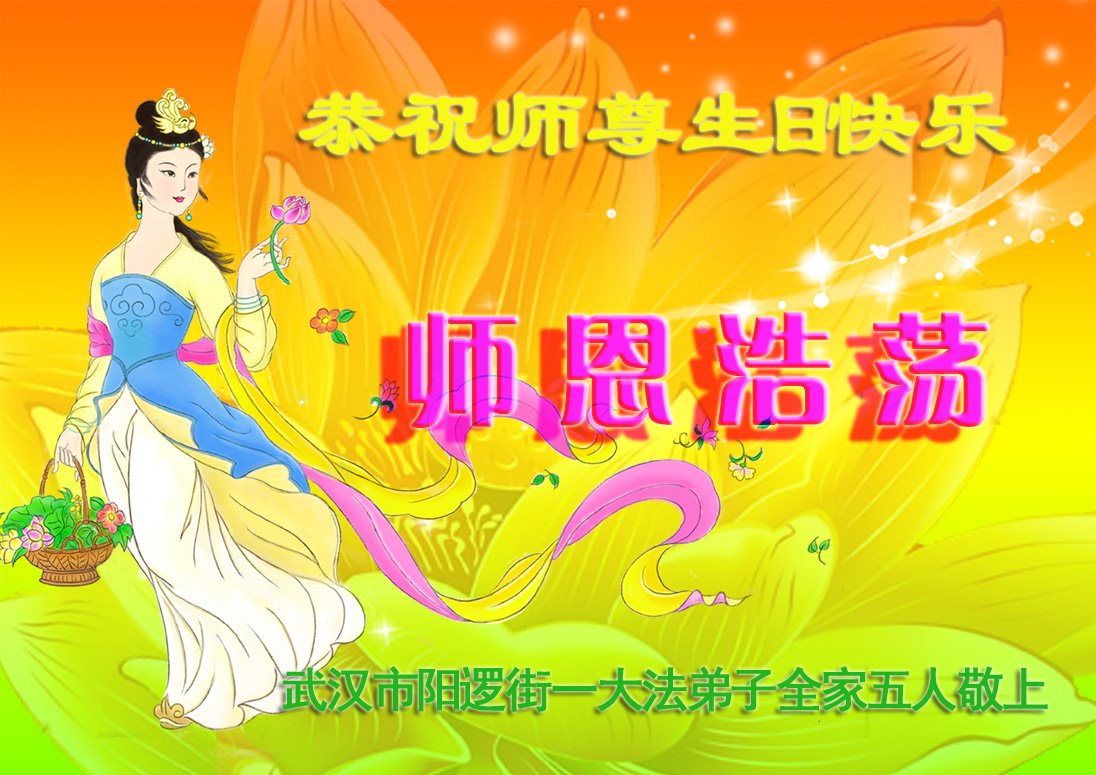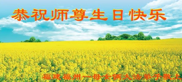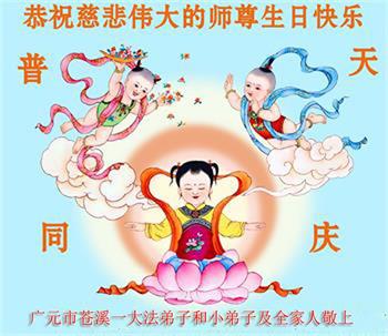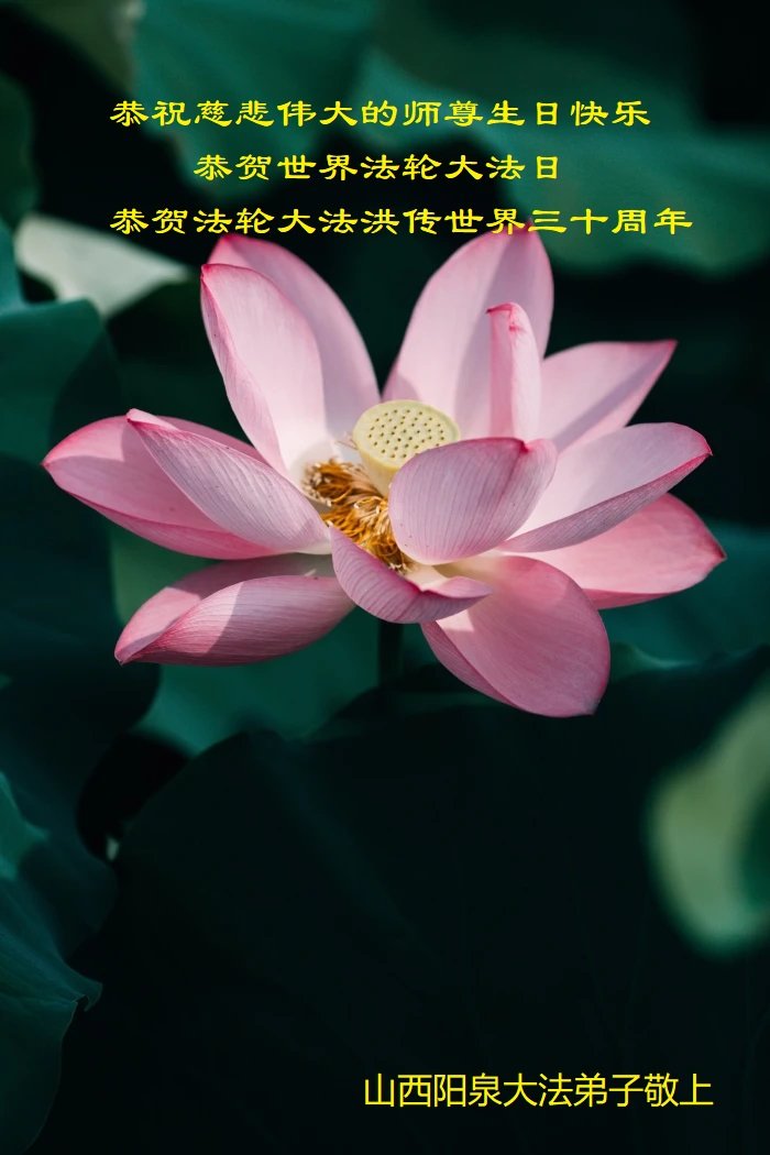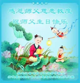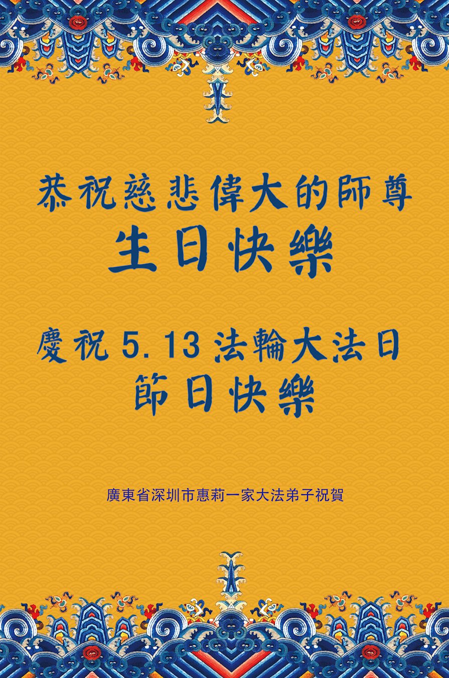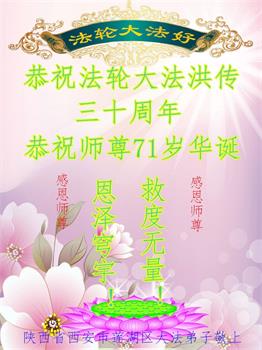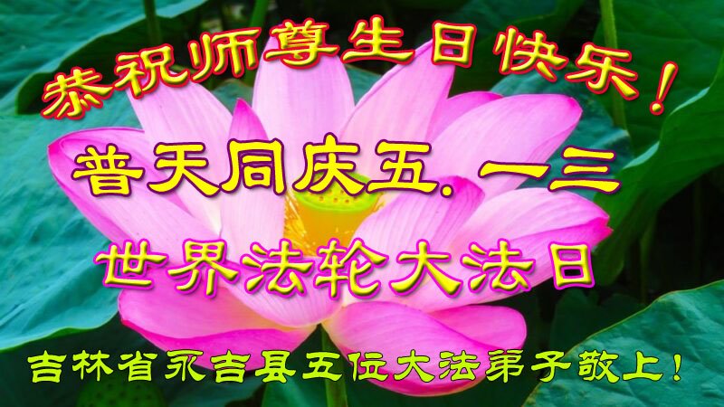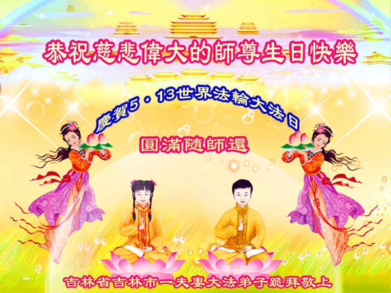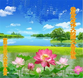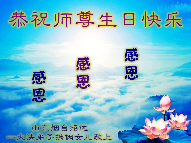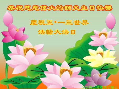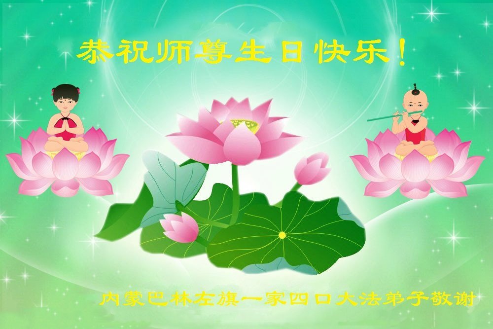 至此世界法轮大法日、法轮大法洪传三十周年、师尊华诞这普天同庆震撼寰宇最伟大而殊胜的日子里,大法弟子全家恭祝慈悲伟大的师尊生日快乐!感恩师尊慈悲救度!师尊辛苦了!弟子全家叩拜师尊!