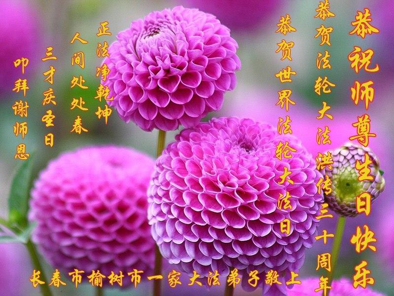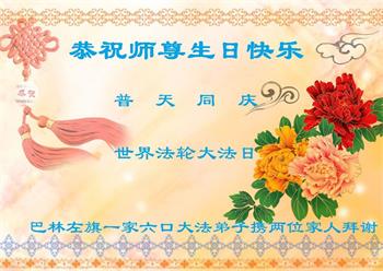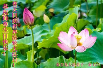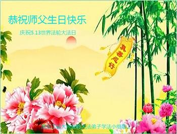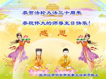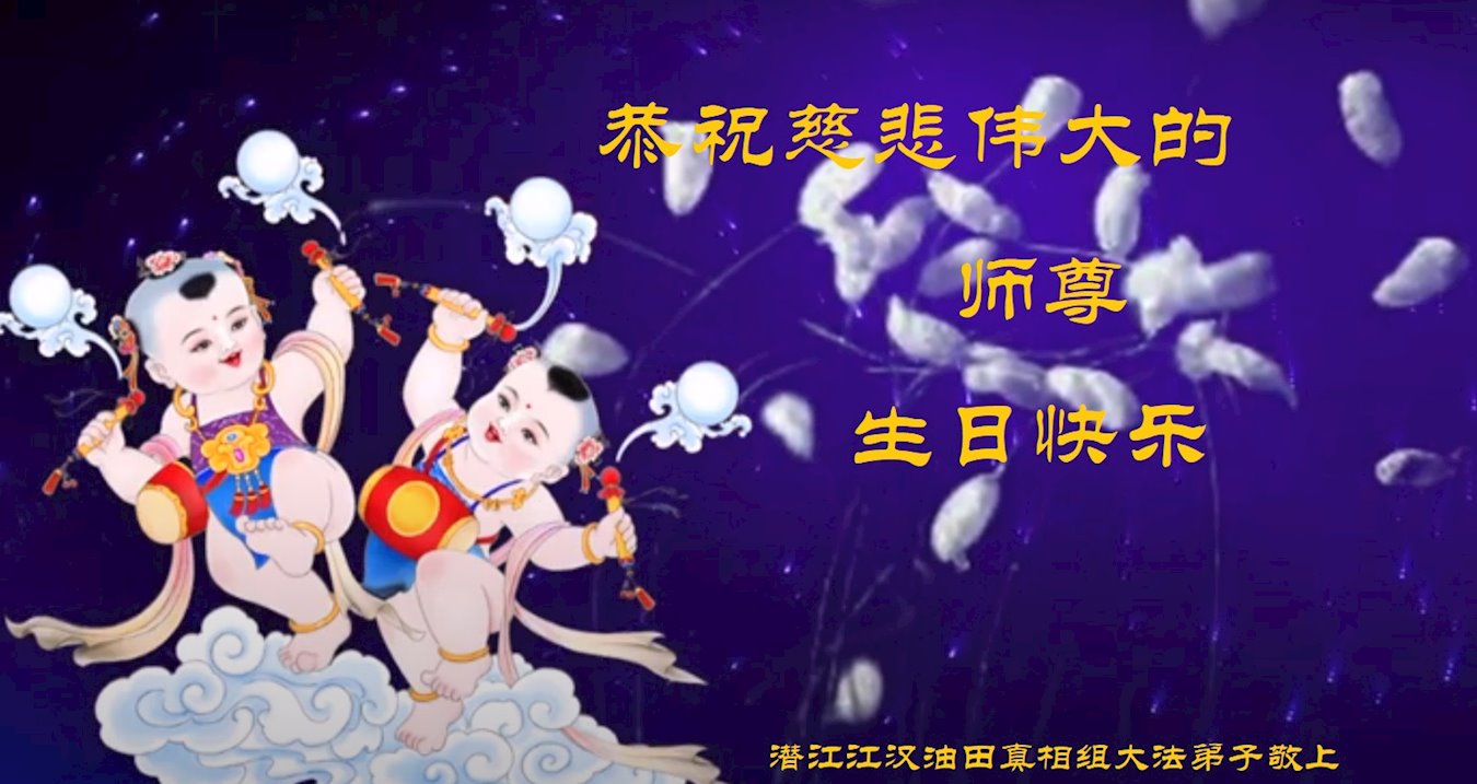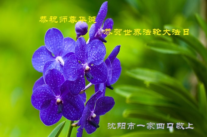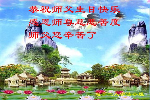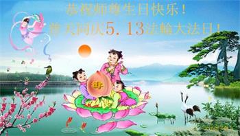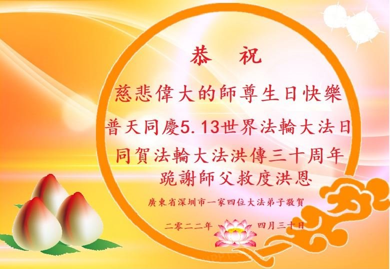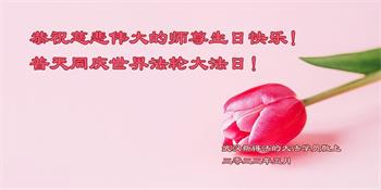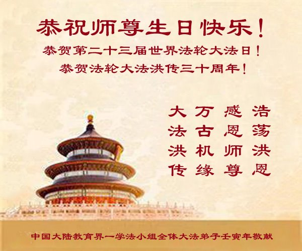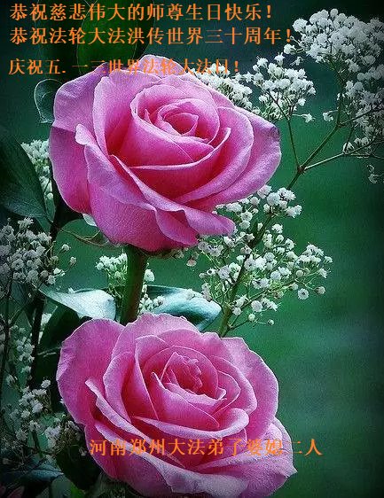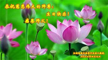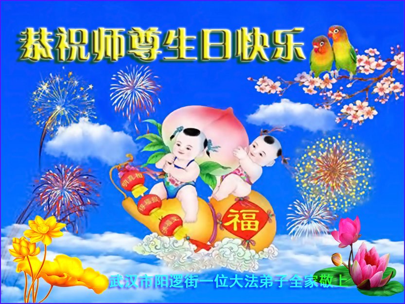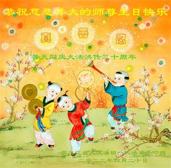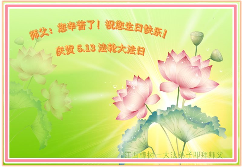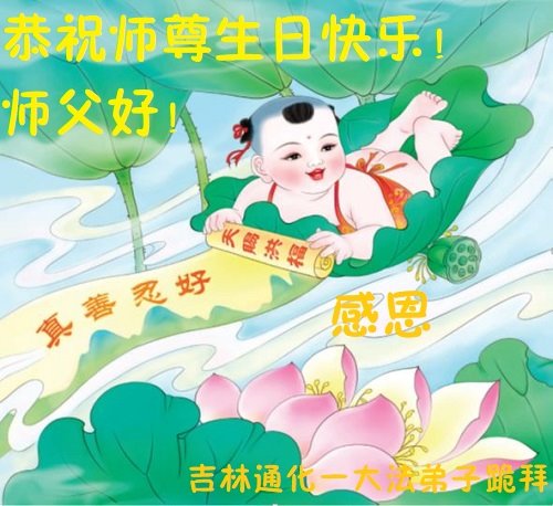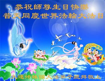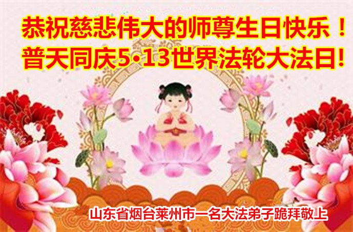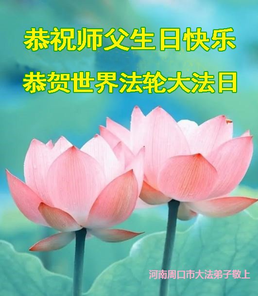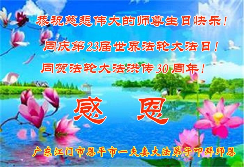 至此世界法轮大法日、法轮大法洪传三十周年、师尊华诞这普天同庆震撼寰宇最伟大而殊胜的日子里,大法弟子全家恭祝慈悲伟大的师尊生日快乐!感恩师尊慈悲救度!师尊辛苦了!弟子全家叩拜师尊!