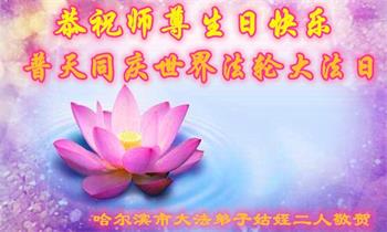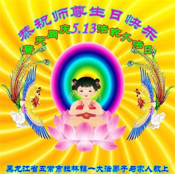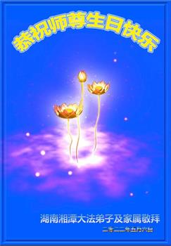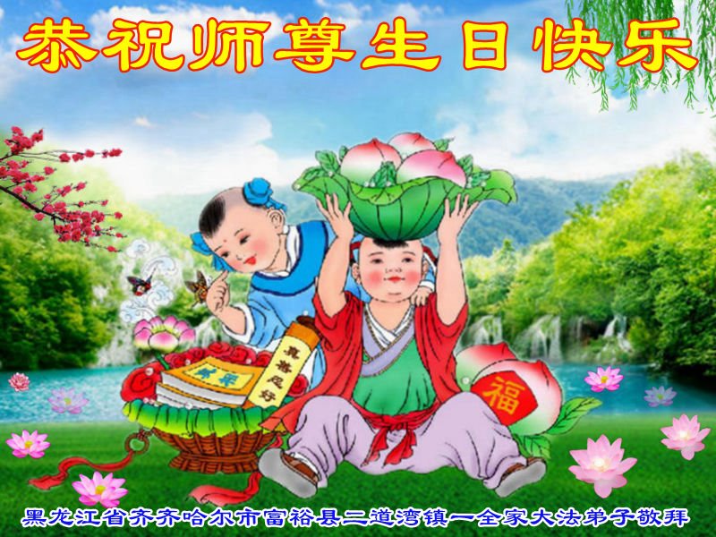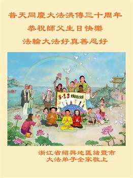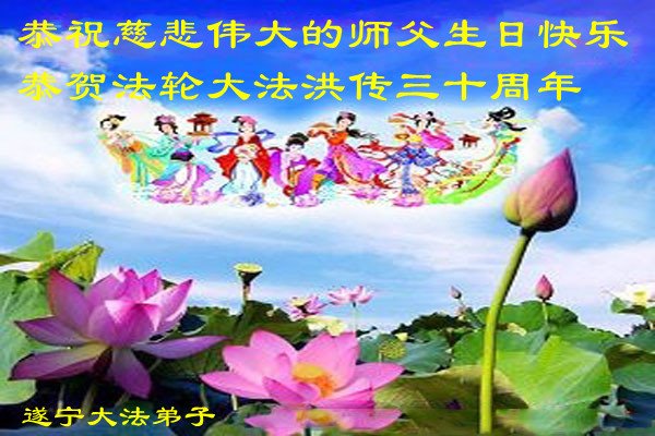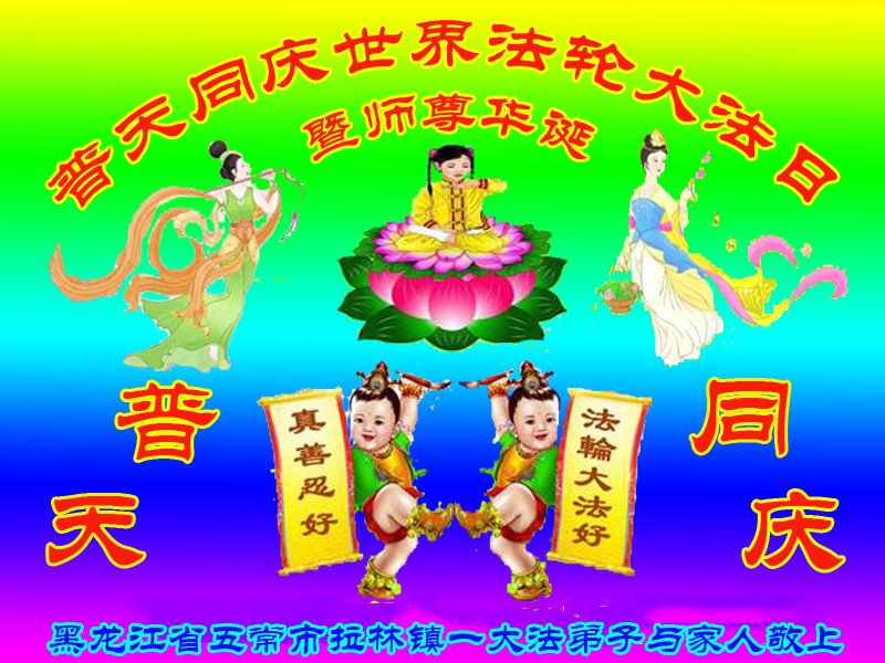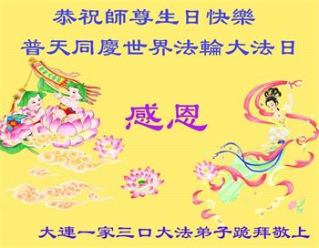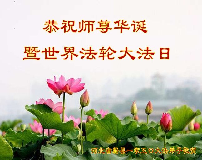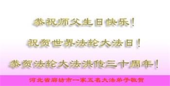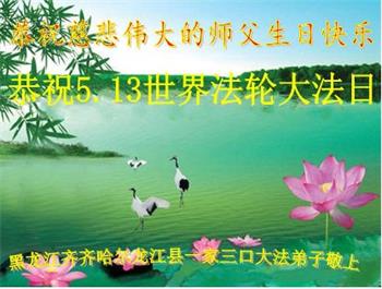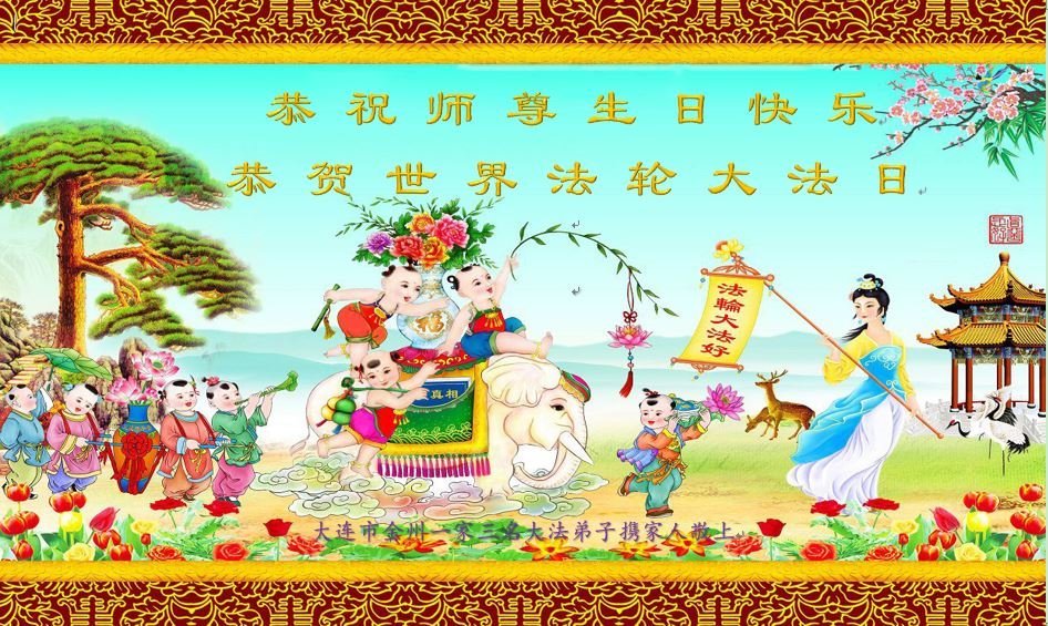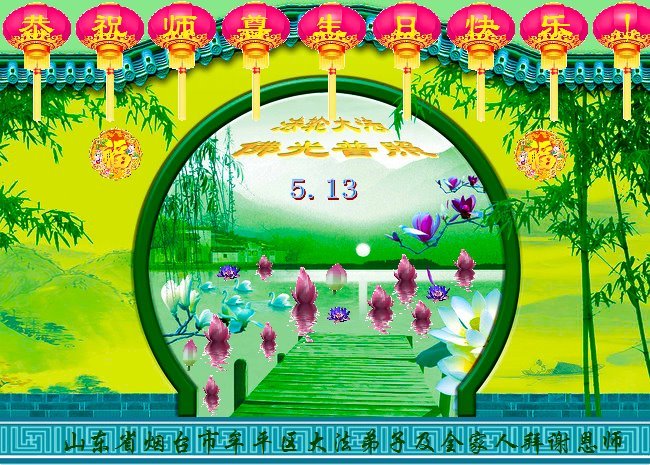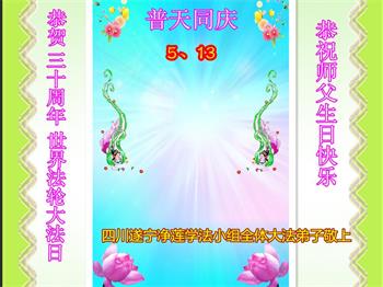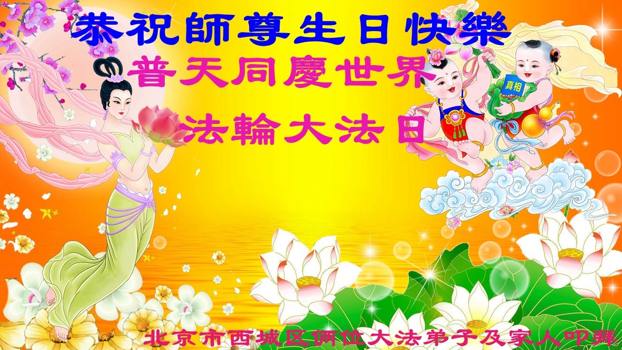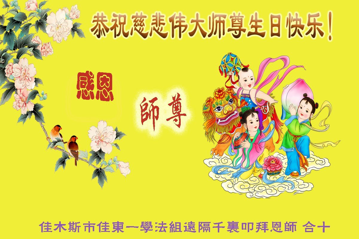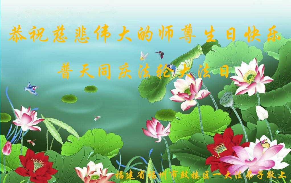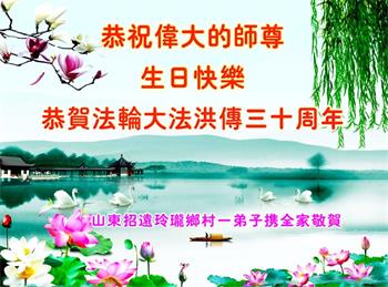 至此世界法轮大法日、法轮大法洪传三十周年、师尊华诞这普天同庆震撼寰宇最伟大而殊胜的日子里,大法弟子全家恭祝慈悲伟大的师尊生日快乐!感恩师尊慈悲救度!师尊辛苦了!弟子全家叩拜师尊!