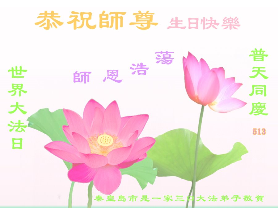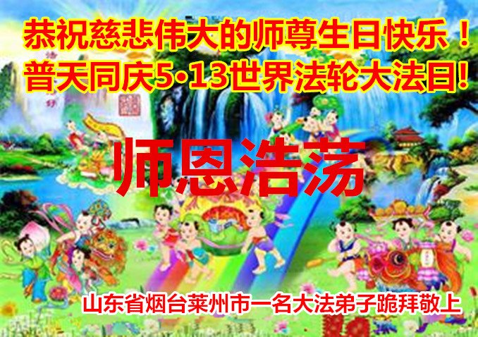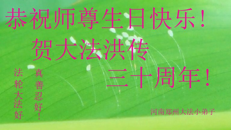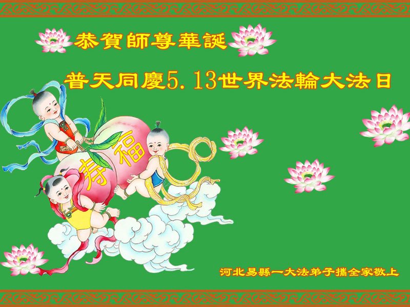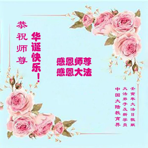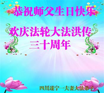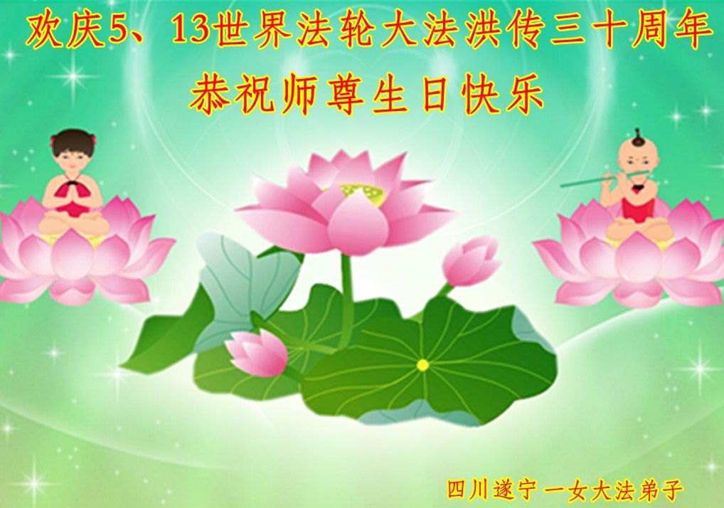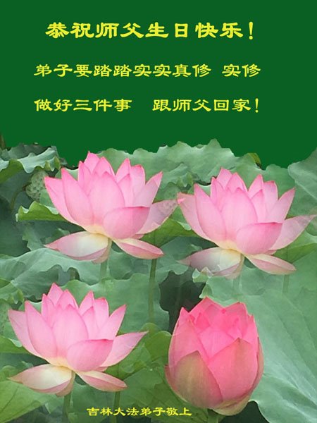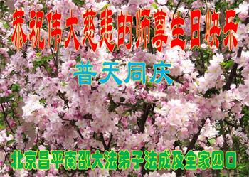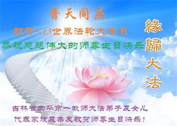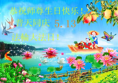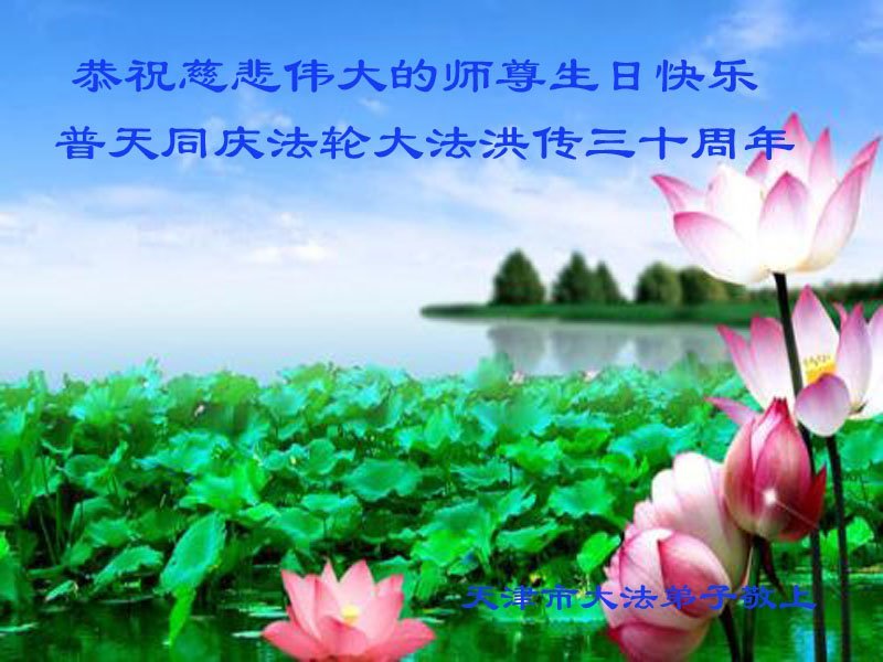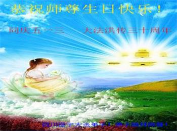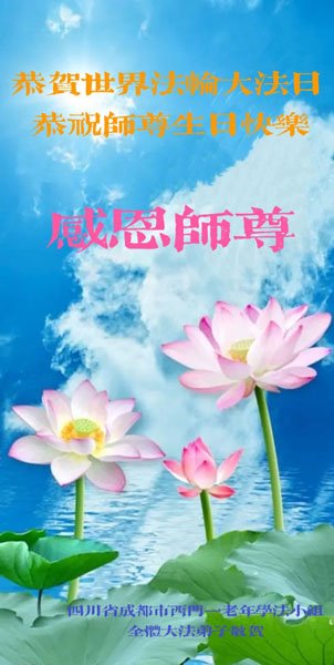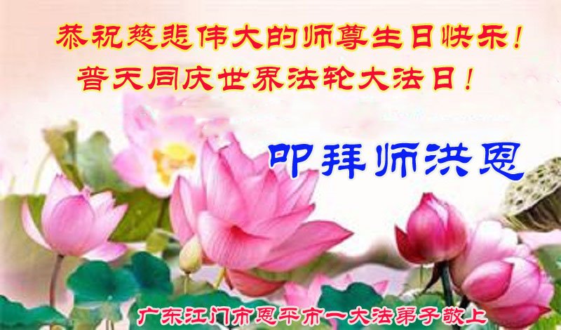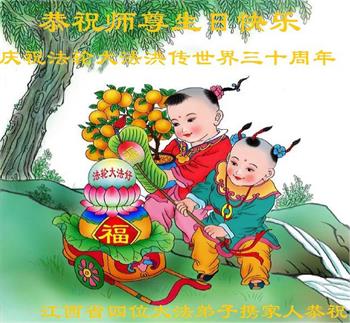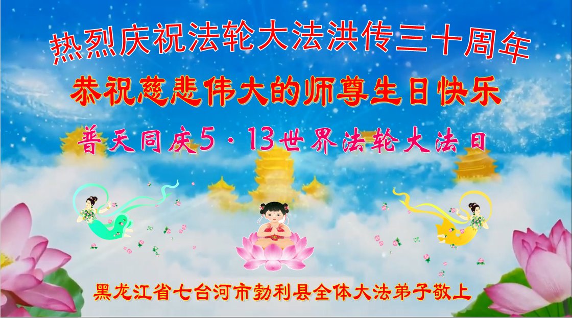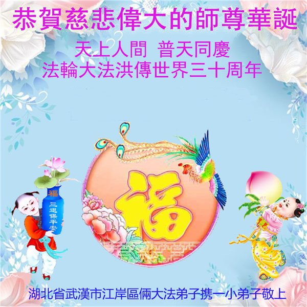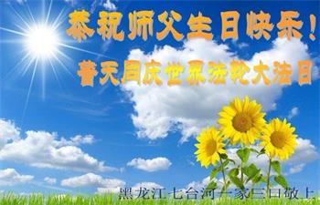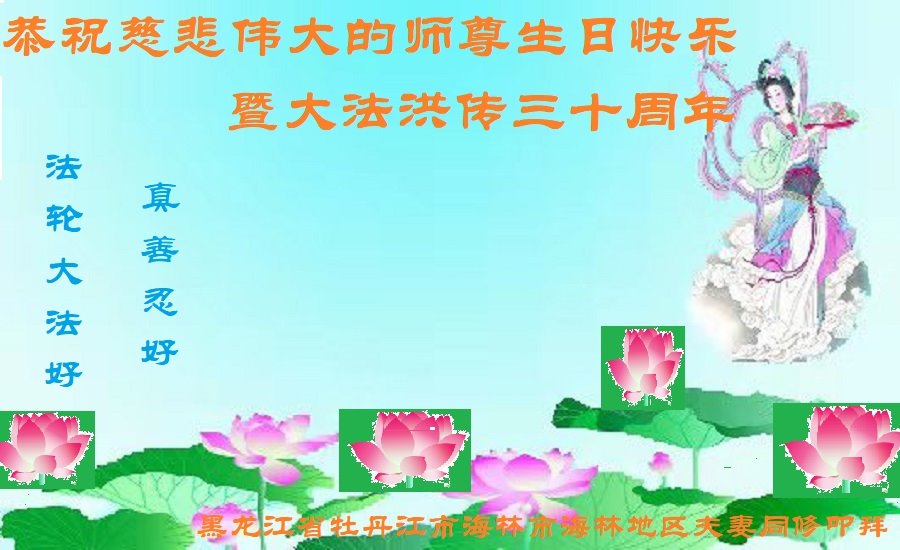 至此世界法轮大法日、法轮大法洪传三十周年、师尊华诞这普天同庆震撼寰宇最伟大而殊胜的日子里,大法弟子全家恭祝慈悲伟大的师尊生日快乐!感恩师尊慈悲救度!师尊辛苦了!弟子全家叩拜师尊!
