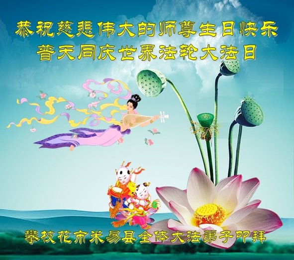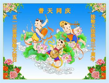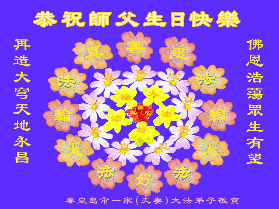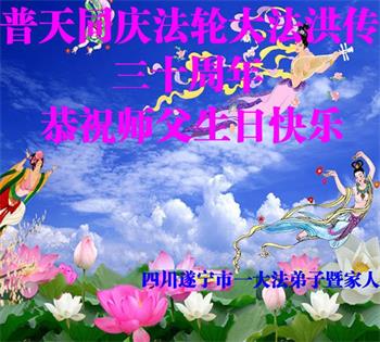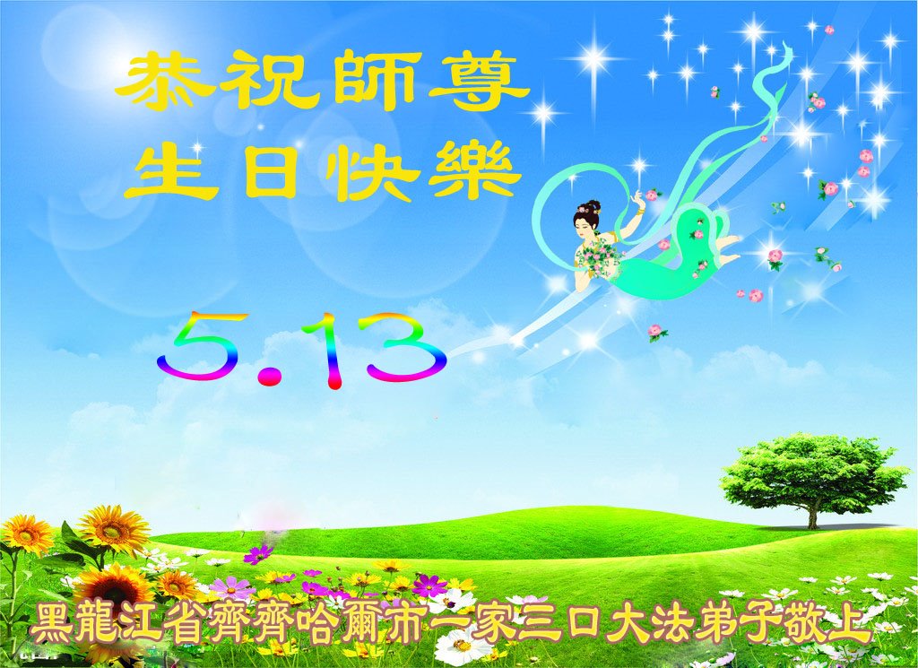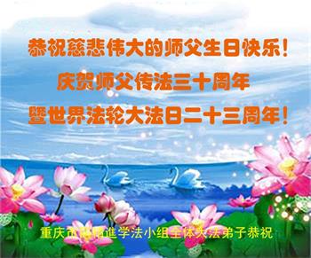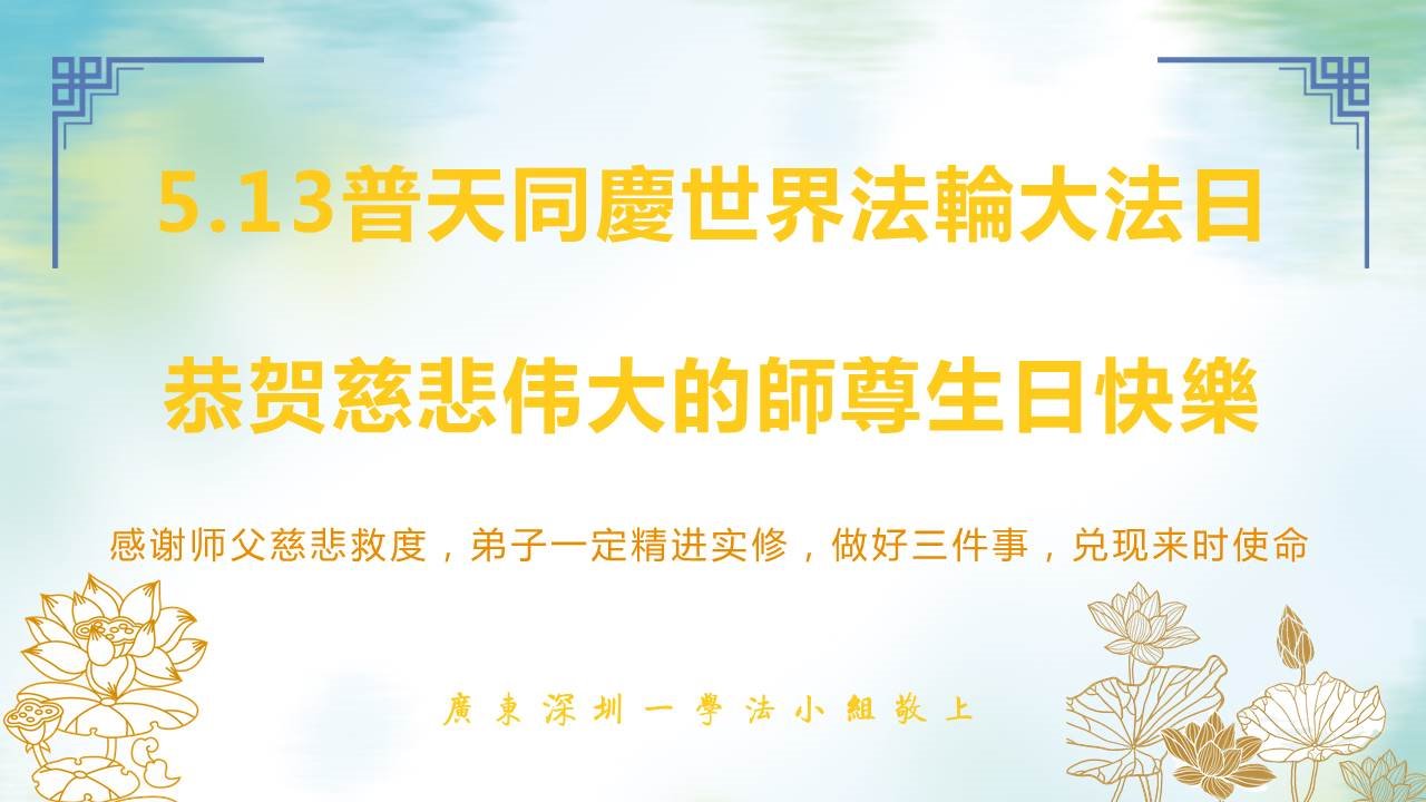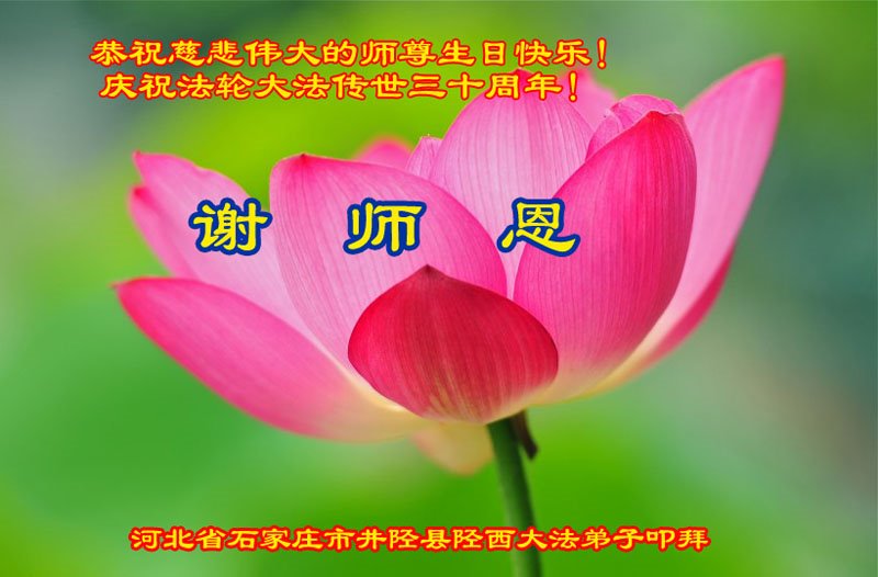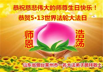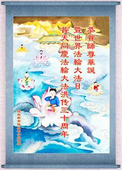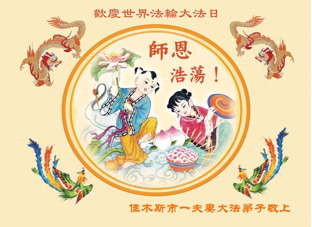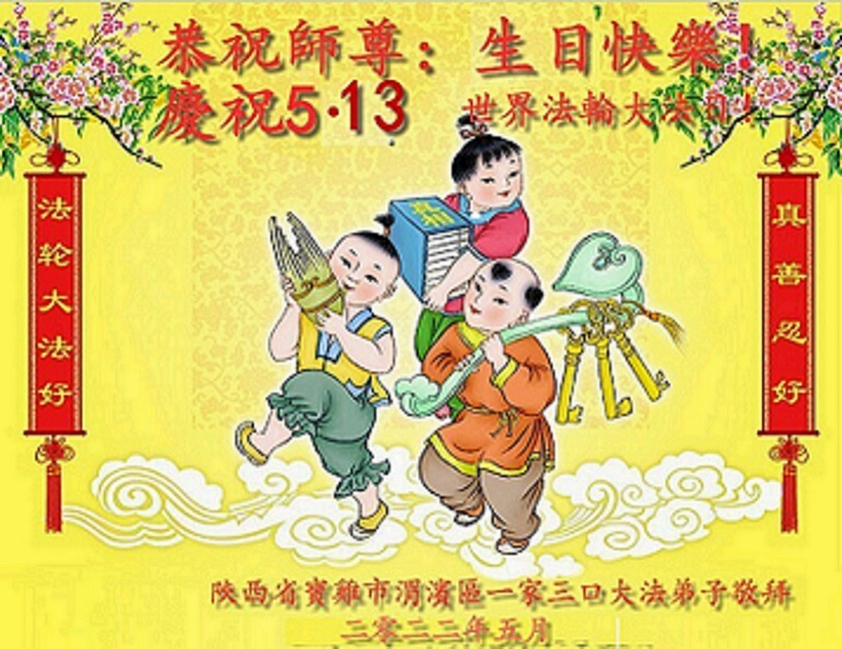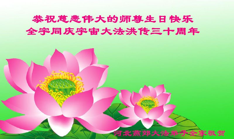 至此世界法轮大法日、法轮大法洪传三十周年、师尊华诞这普天同庆震撼寰宇最伟大而殊胜的日子里,大法弟子全家恭祝慈悲伟大的师尊生日快乐!感恩师尊慈悲救度!师尊辛苦了!弟子全家叩拜师尊!
