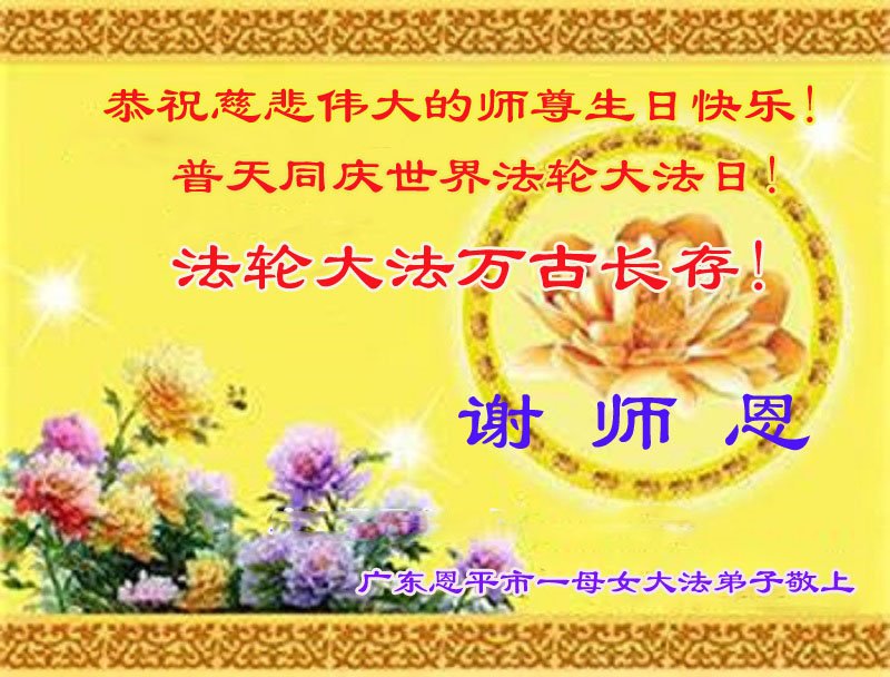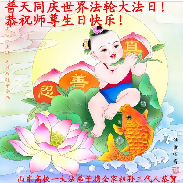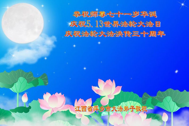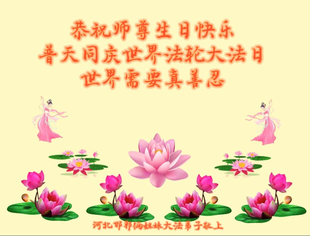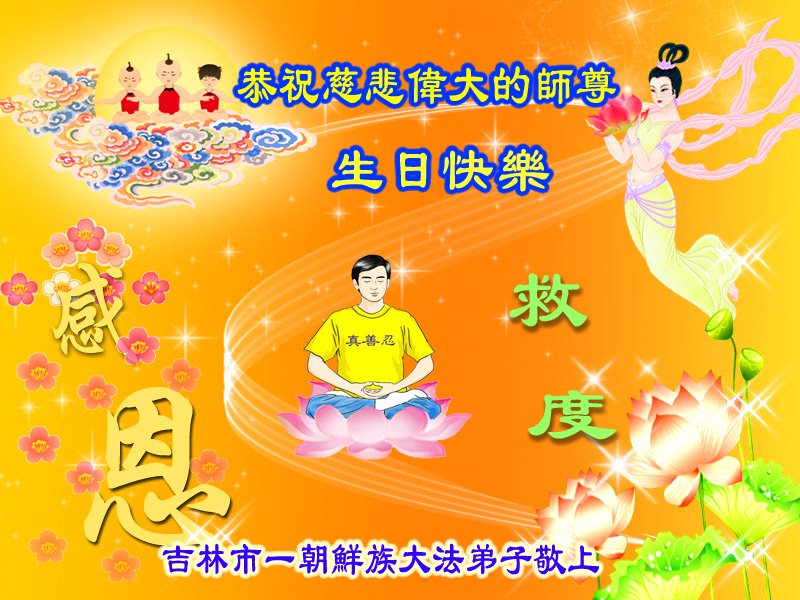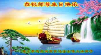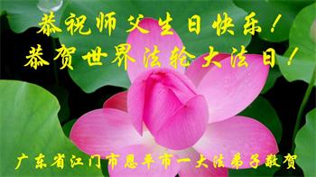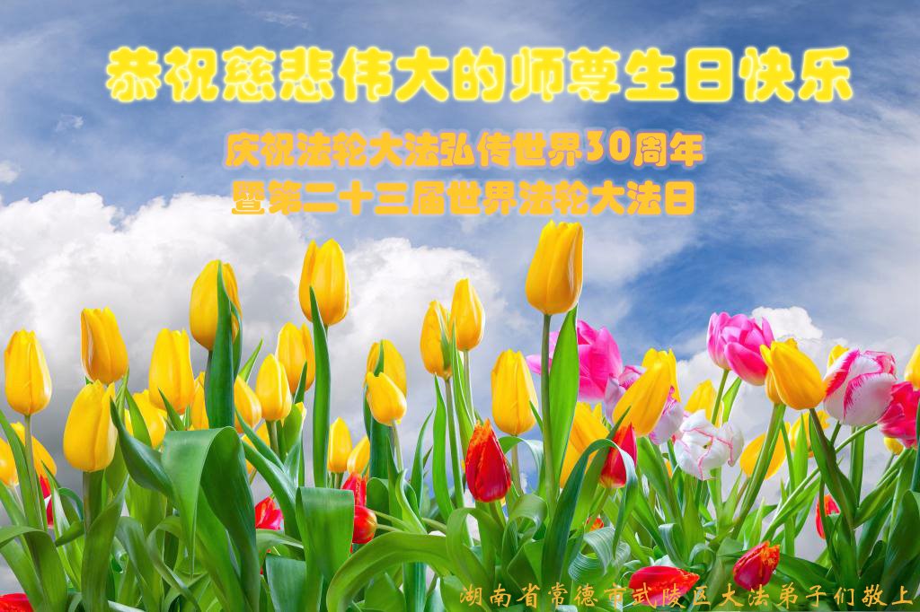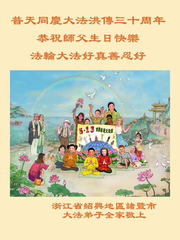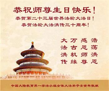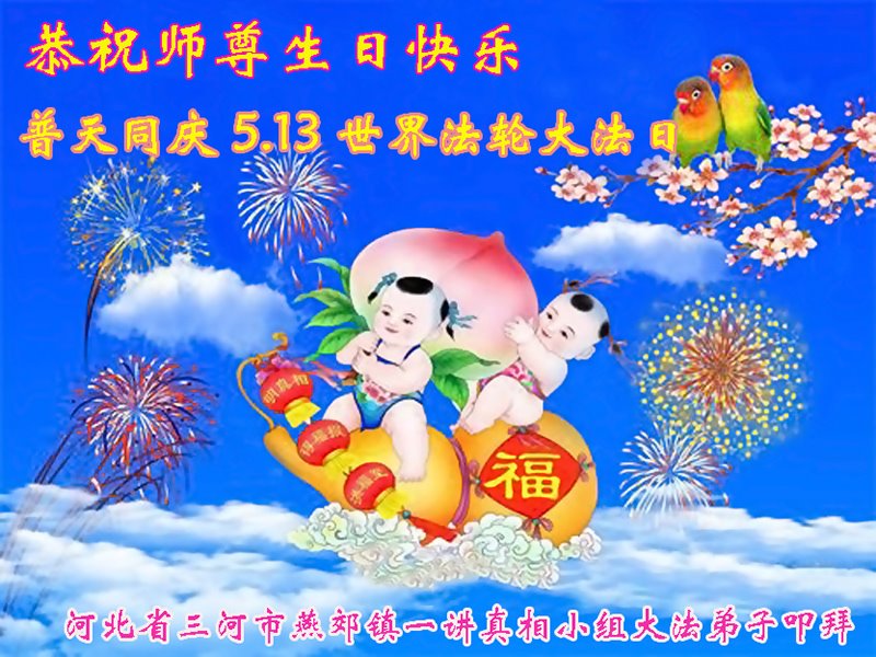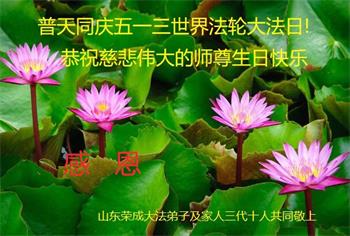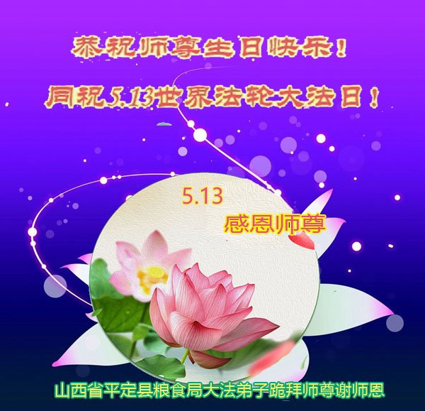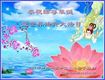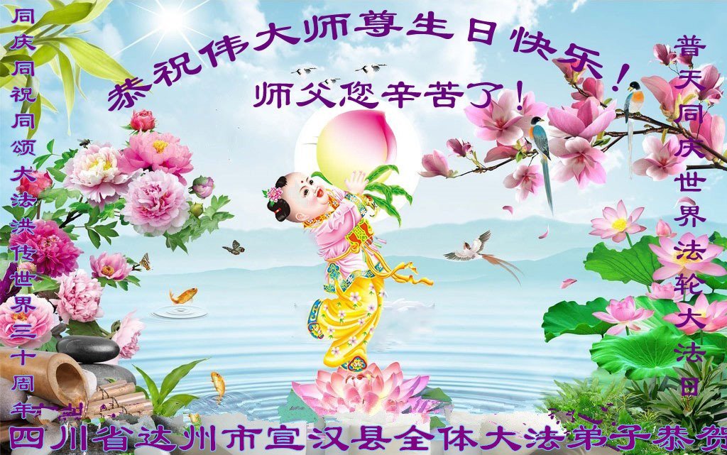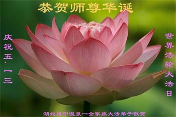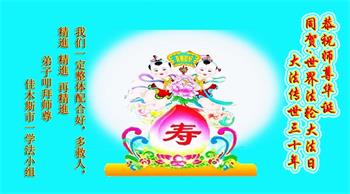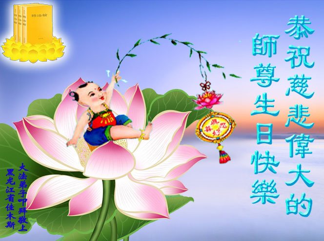 至此世界法轮大法日、法轮大法洪传三十周年、师尊华诞这普天同庆震撼寰宇最伟大而殊胜的日子里,大法弟子全家恭祝慈悲伟大的师尊生日快乐!感恩师尊慈悲救度!师尊辛苦了!弟子全家叩拜师尊!
