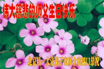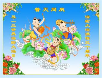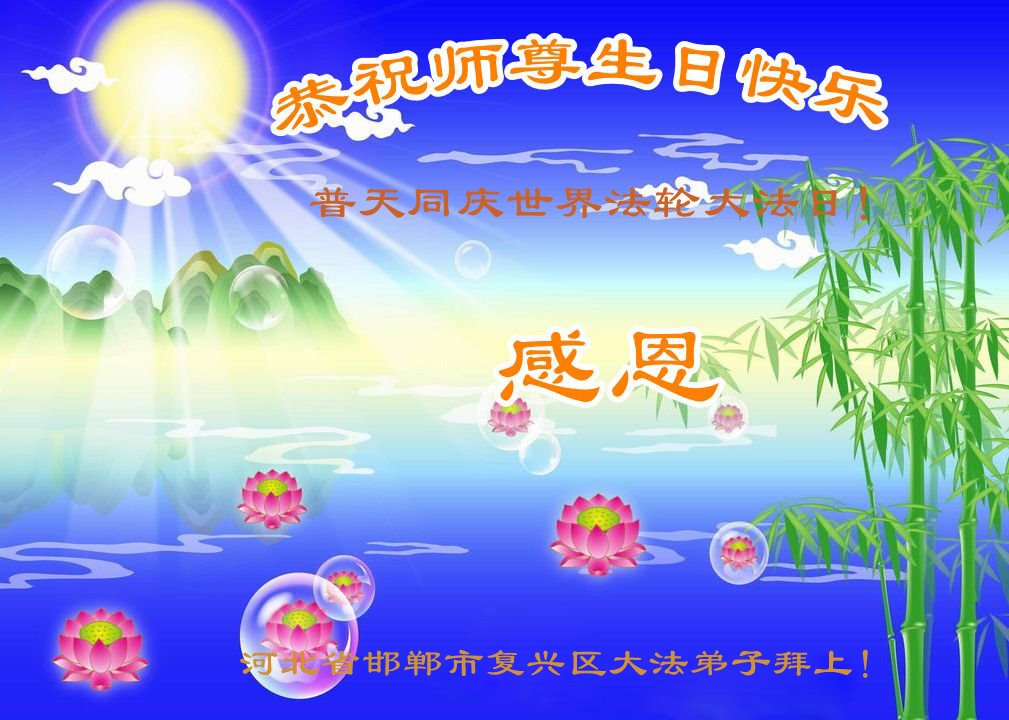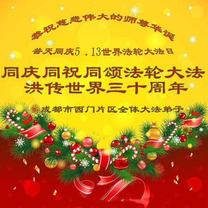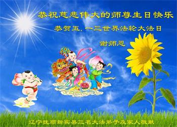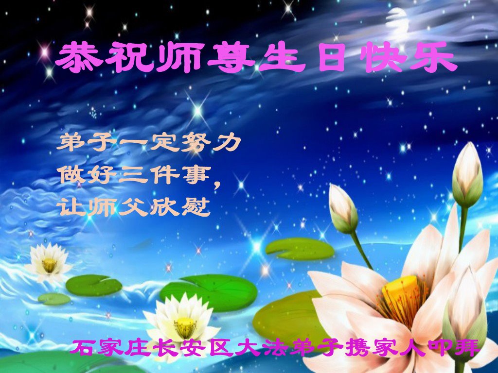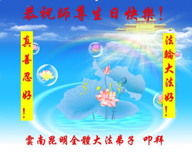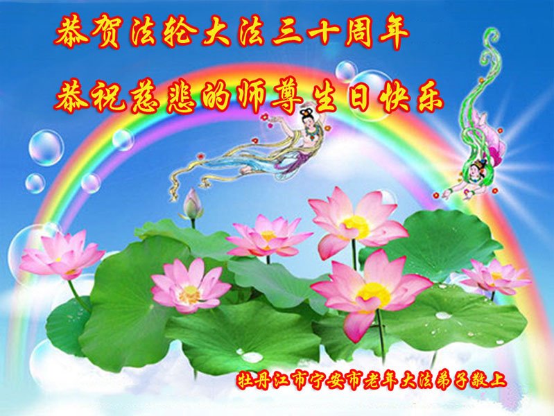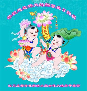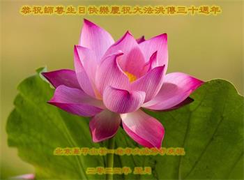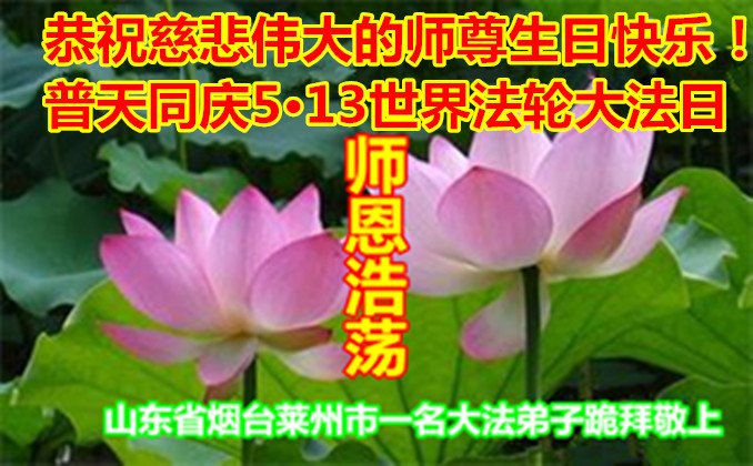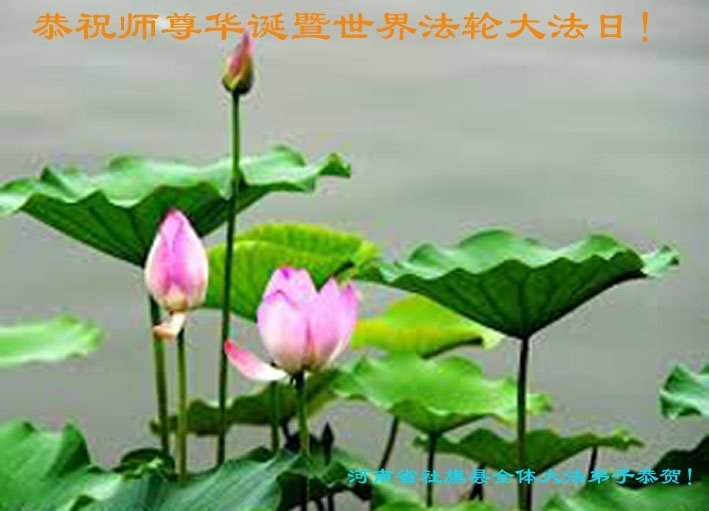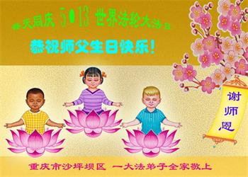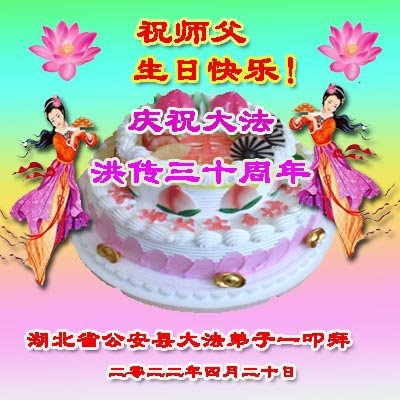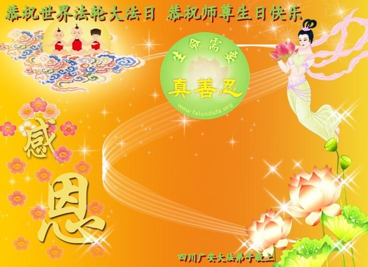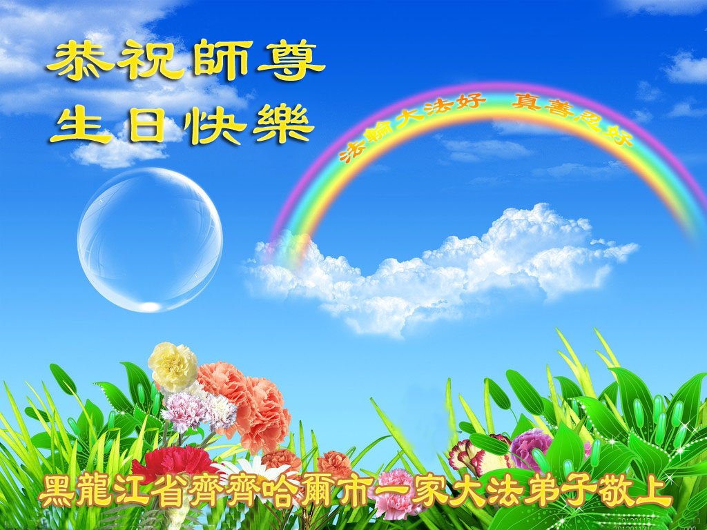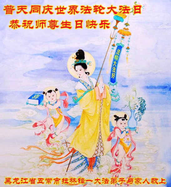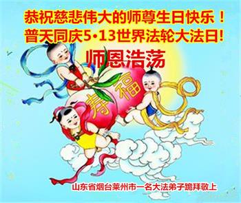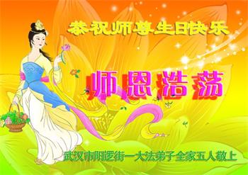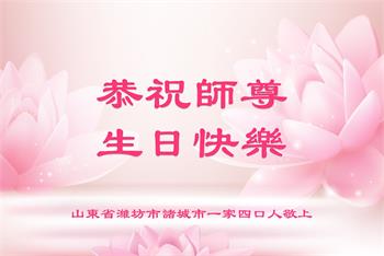至此世界法轮大法日、法轮大法洪传三十周年、师尊华诞这普天同庆震撼寰宇最伟大而殊胜的日子里,大法弟子全家恭祝慈悲伟大的师尊生日快乐!感恩师尊慈悲救度!师尊辛苦了!弟子全家叩拜师尊!