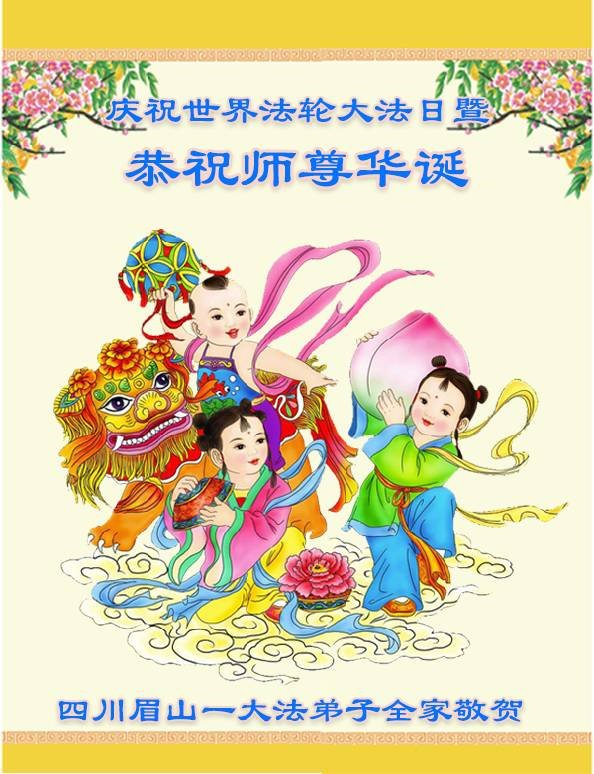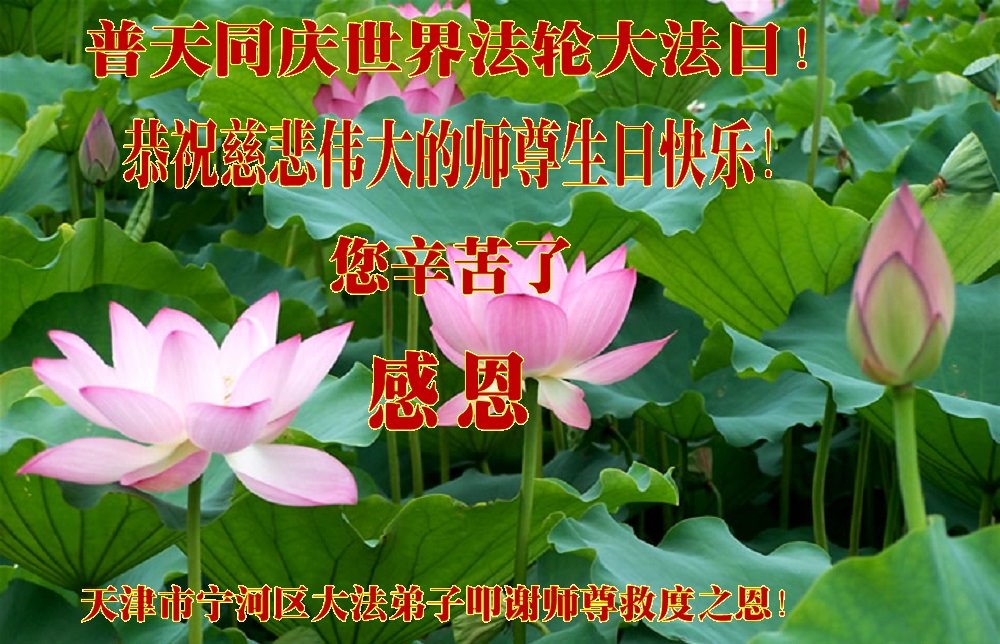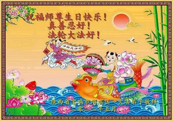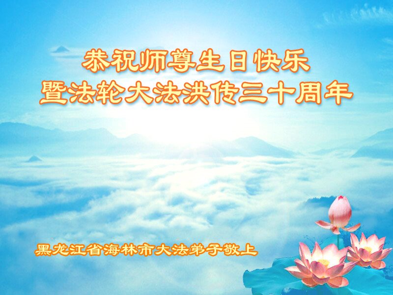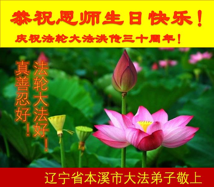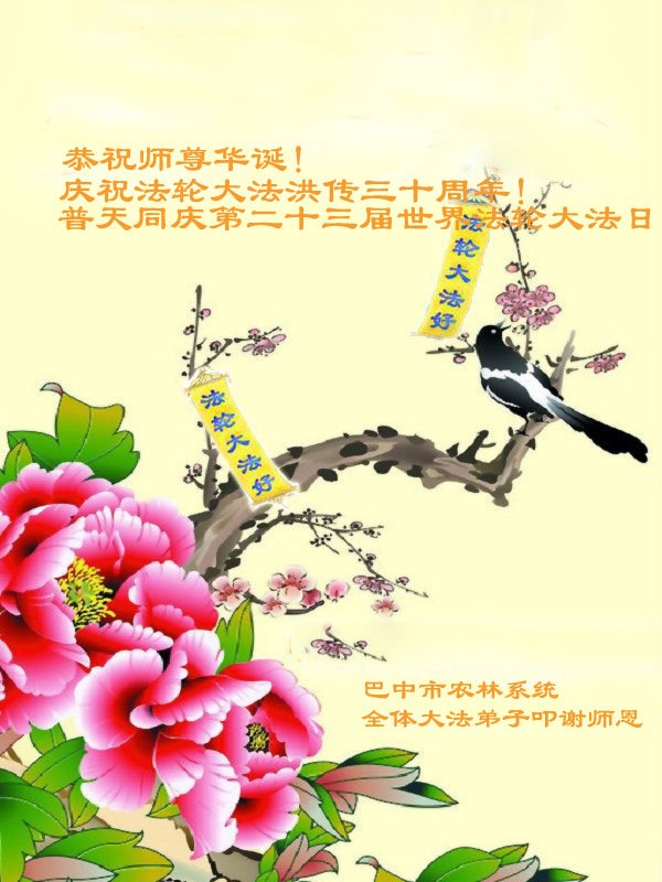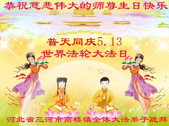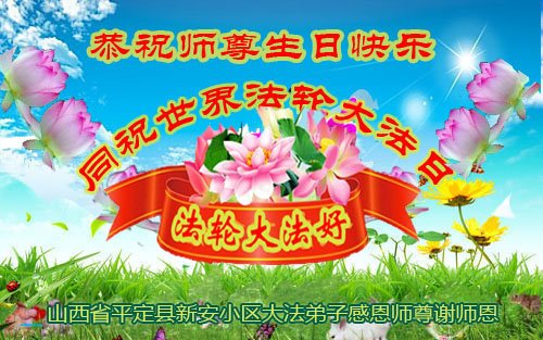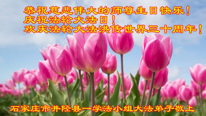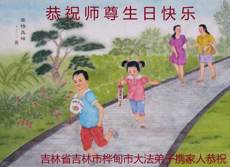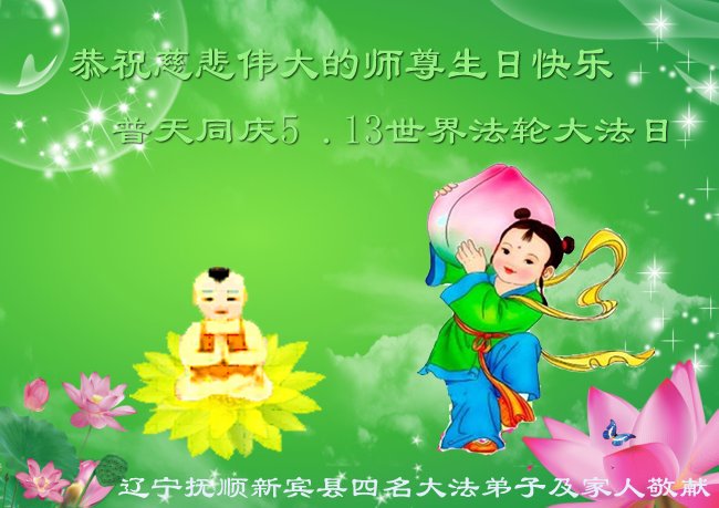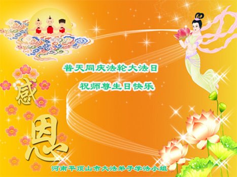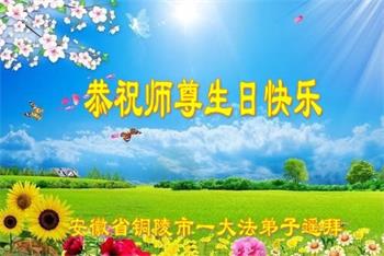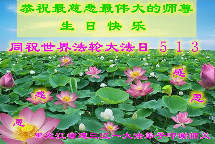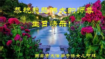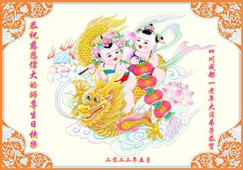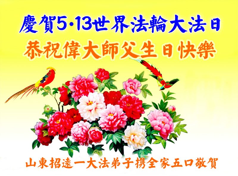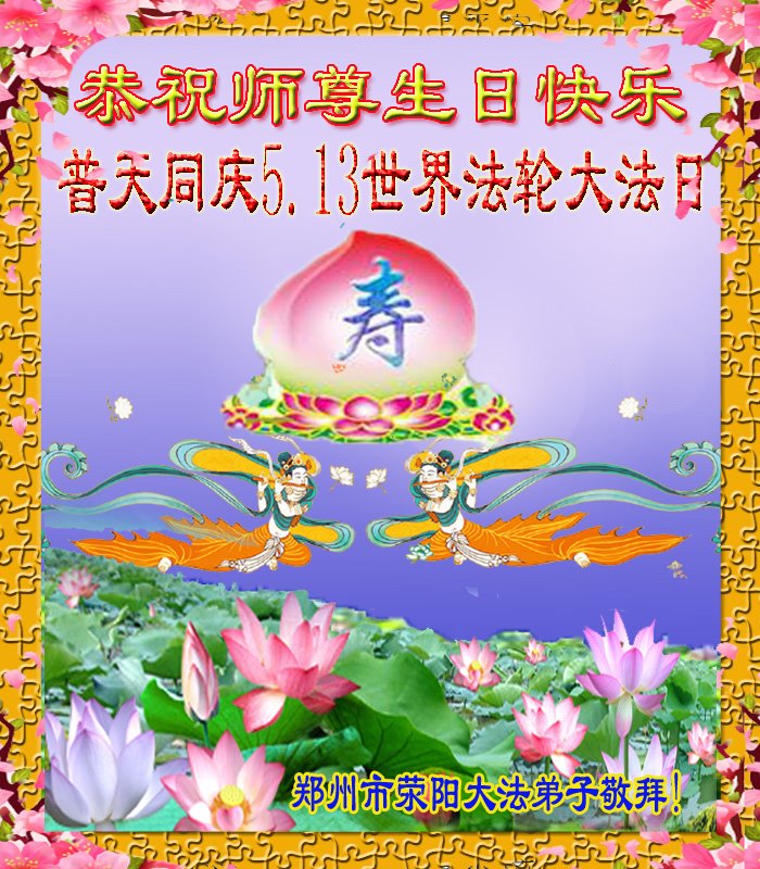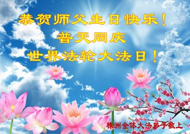 至此世界法轮大法日、法轮大法洪传三十周年、师尊华诞这普天同庆震撼寰宇最伟大而殊胜的日子里,大法弟子全家恭祝慈悲伟大的师尊生日快乐!感恩师尊慈悲救度!师尊辛苦了!弟子全家叩拜师尊!
