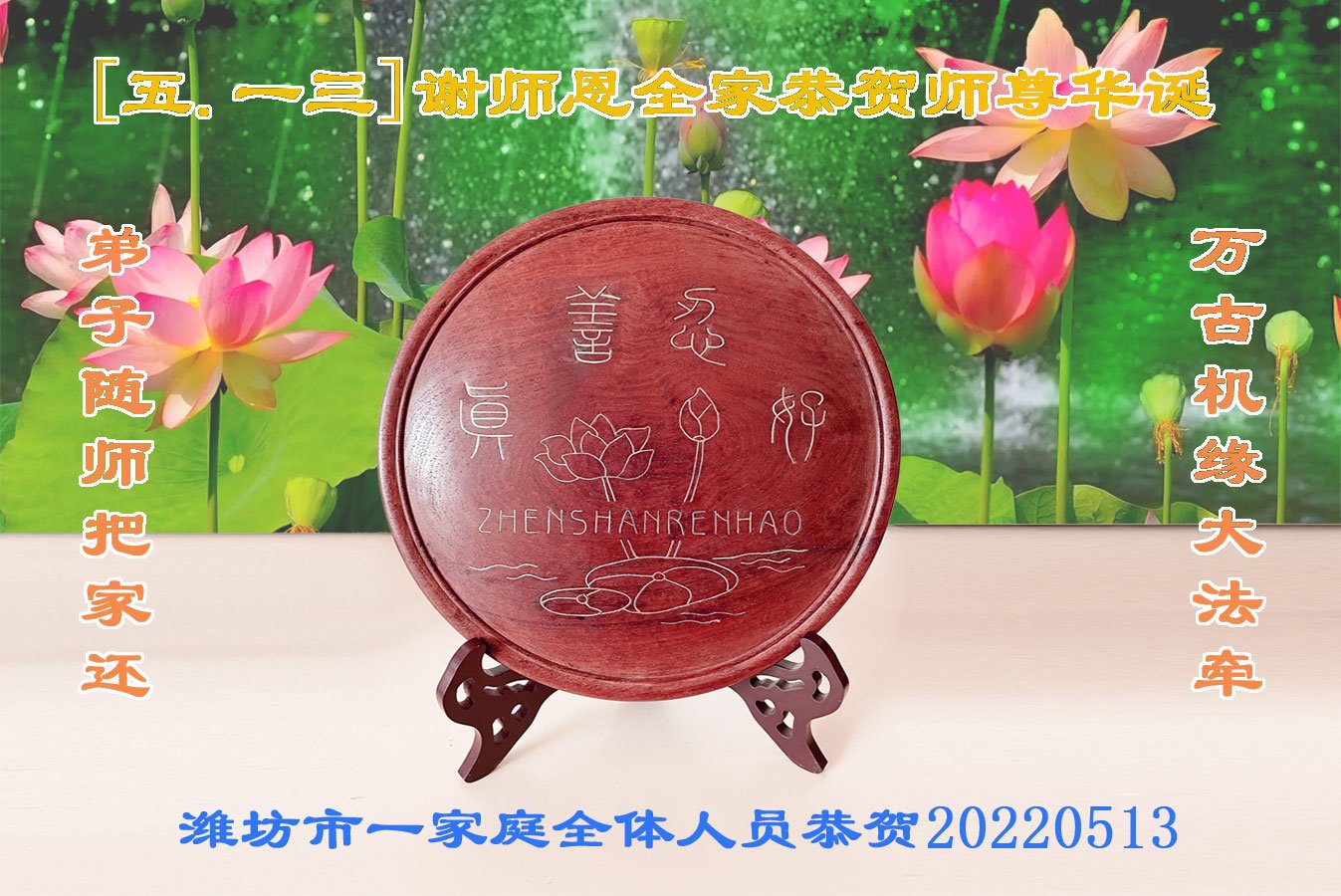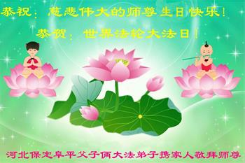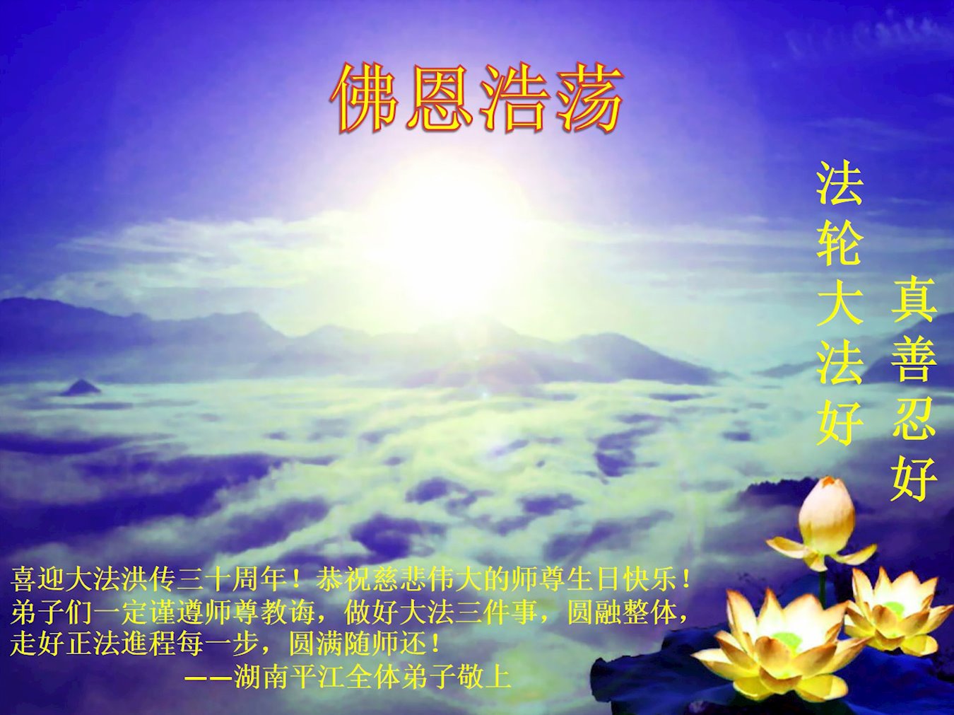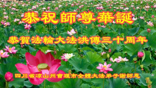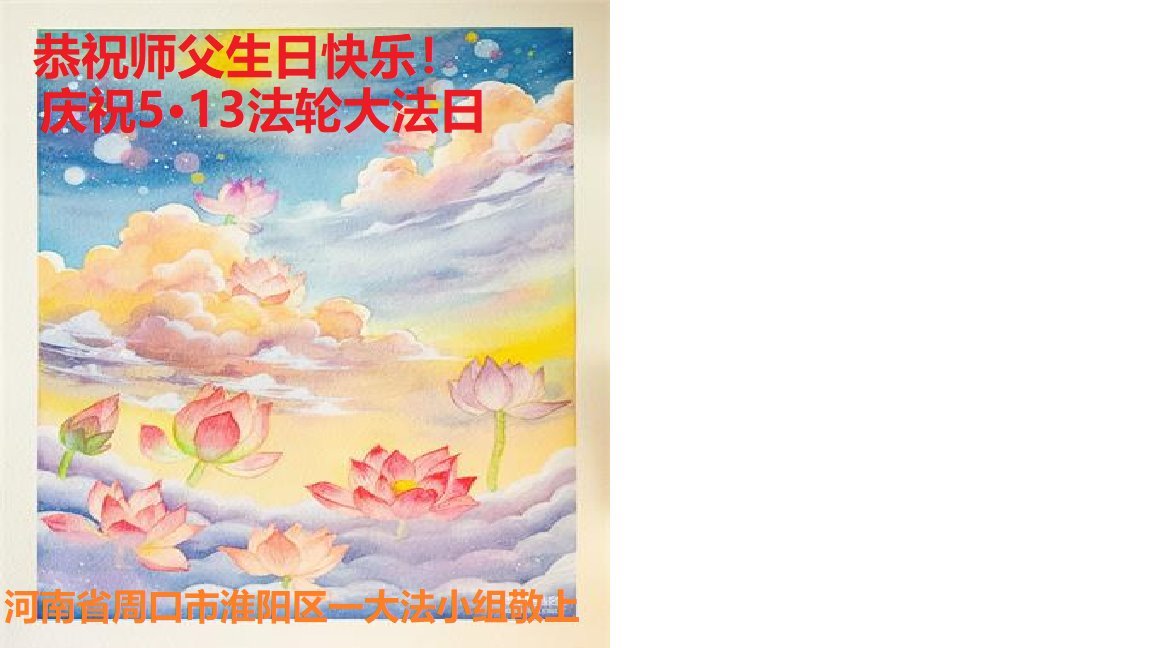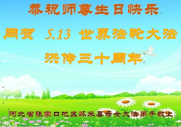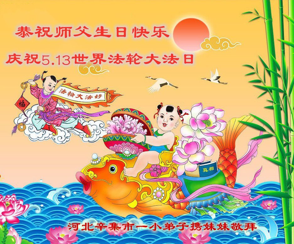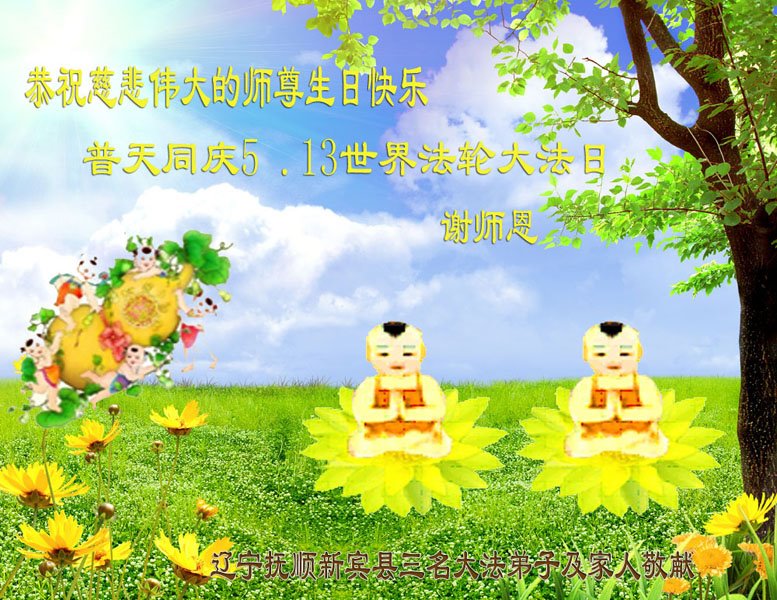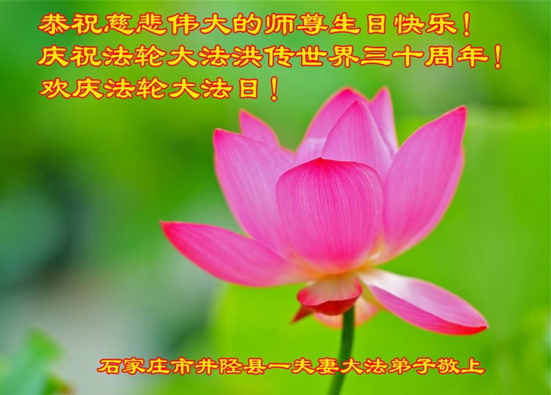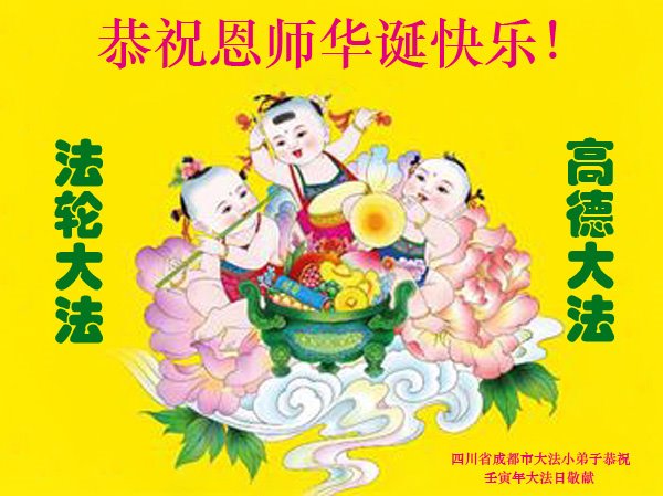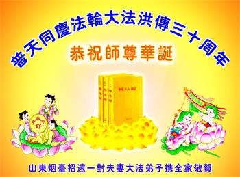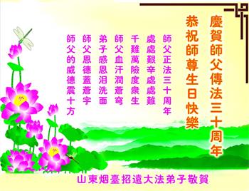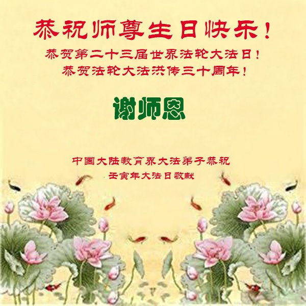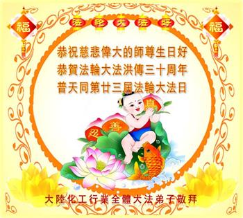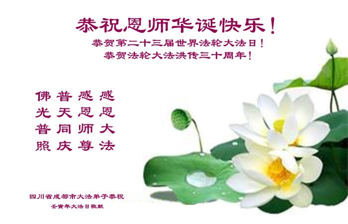 至此世界法轮大法日、法轮大法洪传三十周年、师尊华诞这普天同庆震撼寰宇最伟大而殊胜的日子里,大法弟子全家恭祝慈悲伟大的师尊生日快乐!感恩师尊慈悲救度!师尊辛苦了!弟子全家叩拜师尊!
