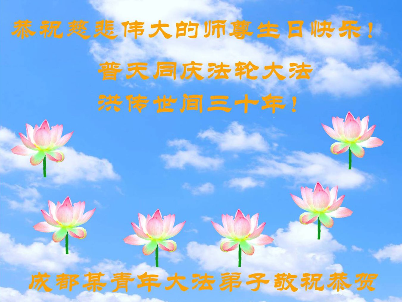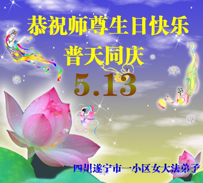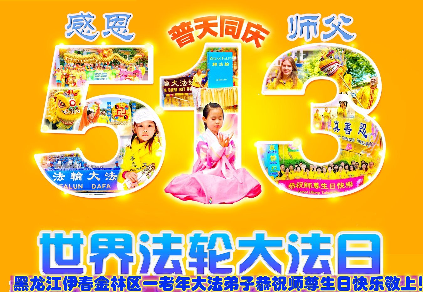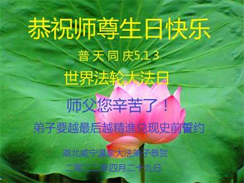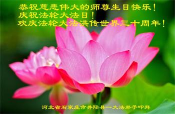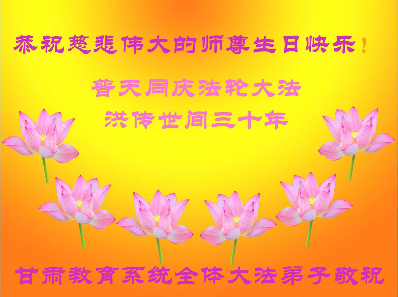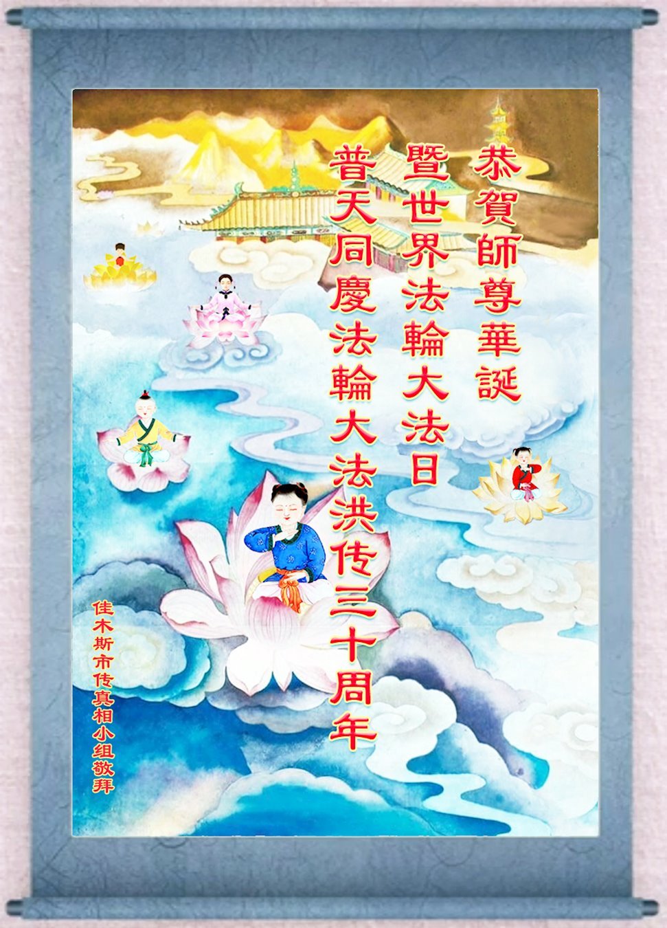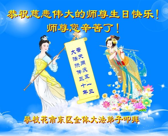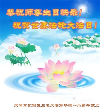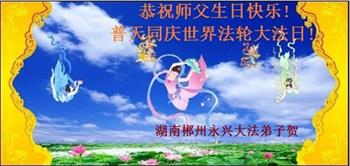 至此世界法轮大法日、法轮大法洪传三十周年、师尊华诞这普天同庆震撼寰宇最伟大而殊胜的日子里,大法弟子全家恭祝慈悲伟大的师尊生日快乐!感恩师尊慈悲救度!师尊辛苦了!弟子全家叩拜师尊!