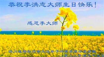萨姆还在法轮大法创始人李洪志先生的生日之际献上他的祝福:“您显然是个伟大的人。我祝愿你拥有更幸福和繁荣的一年!”