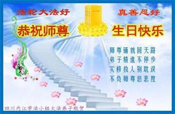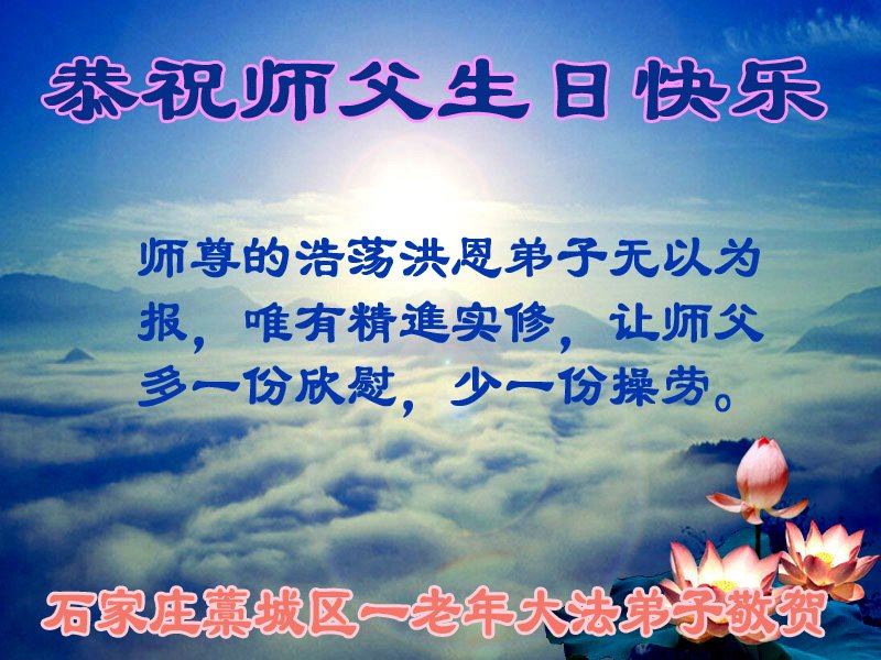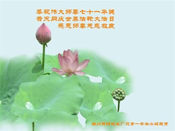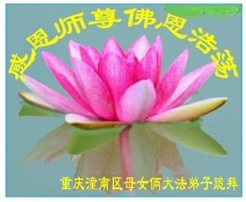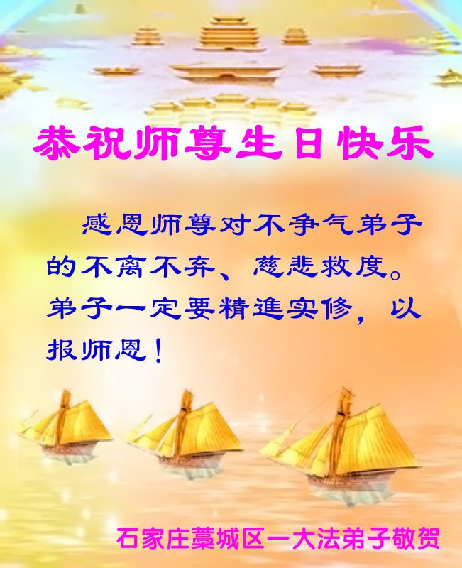 感谢师父对我每一步的看护、付出,救了所有千千万万个象我这样的家庭。我无法报答,只能精進,精進,多学法,多救人,做一个合格的大法弟子。